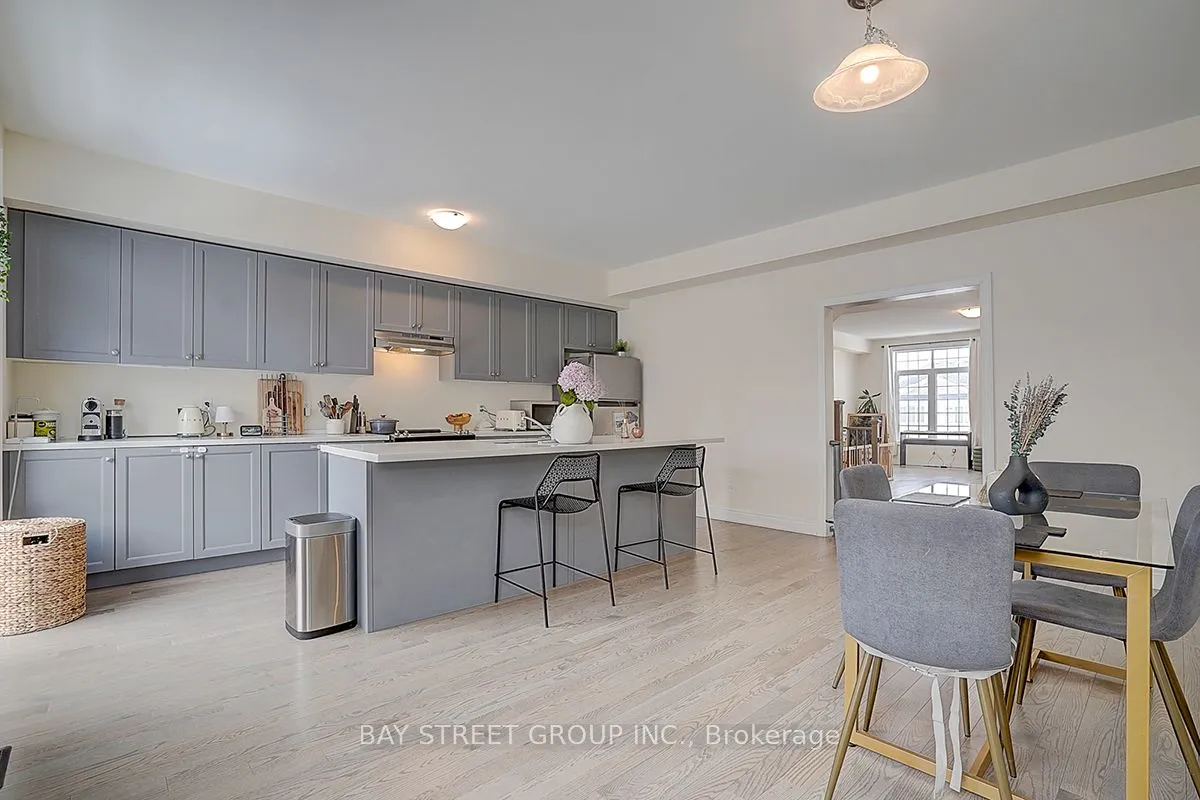Welcome to this stunning 3-year-old double garage townhome offering approximately 2,300 sq ft of stylish living space. Featuring 9 ft ceilings on the ground and second floors, this home showcases a modern design with hardwood flooring throughout all levels and an elegant oak staircase with iron pickets.The open-concept kitchen is equipped with quartz countertops and a centre island, perfect for everyday living and entertaining. Walk out from the kitchen to a private terrace, ideal for outdoor enjoyment.The spacious primary bedroom boasts a walk-in closet, a luxurious 5-piece ensuite, and a walk-out balcony. Convenient third-floor laundry room provides easy access to all bedrooms.Prime location close to Costco, supermarkets, Home Depot, parks, and with quick access to Hwy 407. A perfect blend of modern comfort and unbeatable convenience – don’t miss this exceptional home!