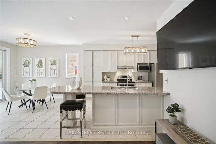 Welcome to 38 Carriage House – a rare Tribute Communities end-unit on a quiet cul-de-sac in prestigious Jefferson, surrounded by top-rated schools. Linked only at the garage, this sun-filled home offers 3 spacious bedrooms, 4 bathrooms, and a fully finished basement that provides exceptional flexibility for extended family, work-from-home or additional family space. Backing onto a tranquil conservation area, the private landscaped yard creates a beautiful setting for unwinding, entertaining, and enjoying the outdoors. Inside, newer hardwood flooring, fresh paint, high ceilings, and pot lights create a warm, inviting atmosphere. As an end-unit, the home enjoys exceptional natural light throughout, including an open-concept living/dining area with a CN Tower view. The family room – complete with a cozy gas fireplace – flows seamlessly into the kitchen featuring granite counters, generous storage, and a walkout to the backyard. Upstairs, the primary suite offers a peaceful retreat with a 5-piece ensuite and walk-in closet. Two additional bedrooms feature crown moulding, wainscoting, and abundant natural light. The fully finished basement expands the home’s versatility with new laminate flooring, a large recreation room with a built-in electric fireplace, a 3-piece bathroom, and a flexible room with a closet and windows. With direct access from the 2-car garage, this level is ideal for extended family, guest stays or work-from-home needs. This is a rare opportunity to enjoy luxury and privacy in one of Richmond Hill’s most sought-after neighbourhoods.