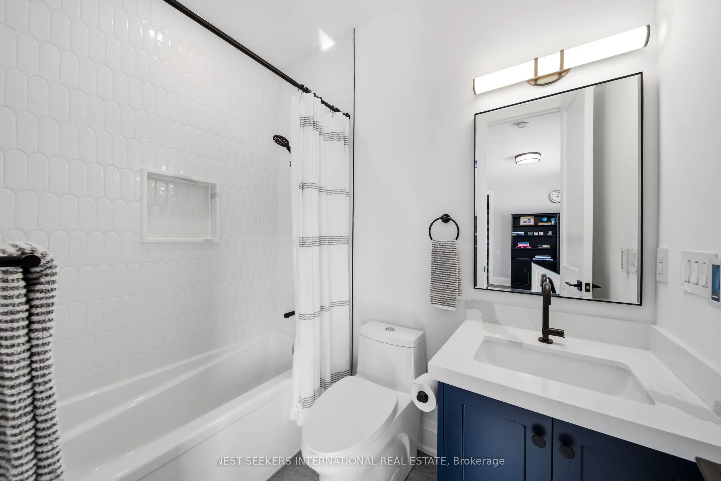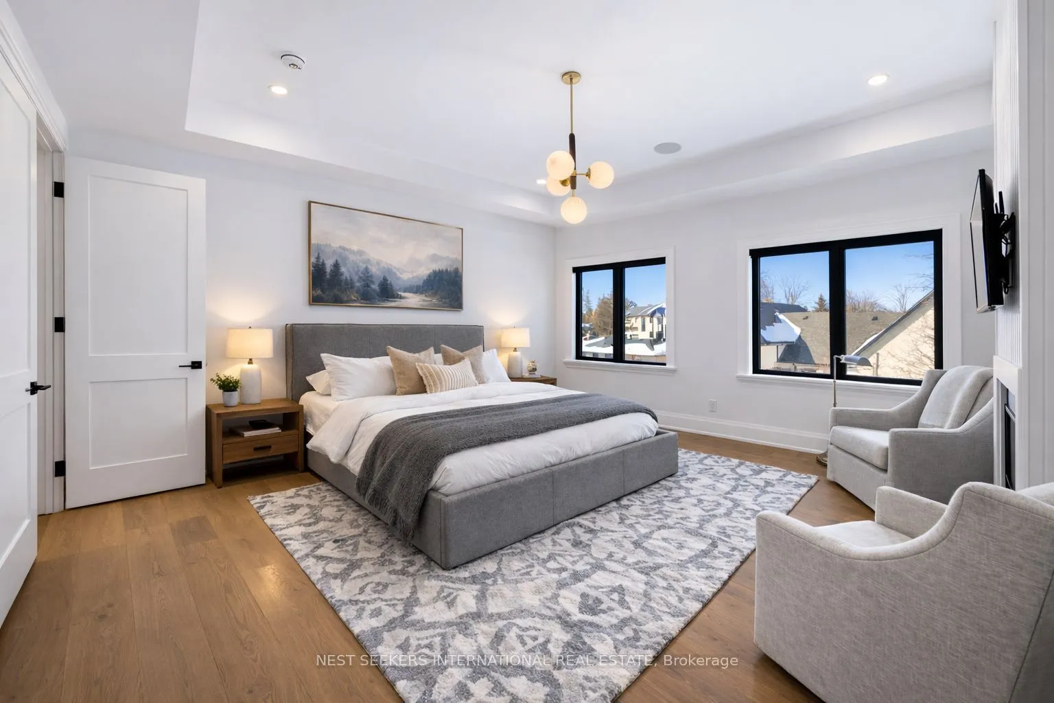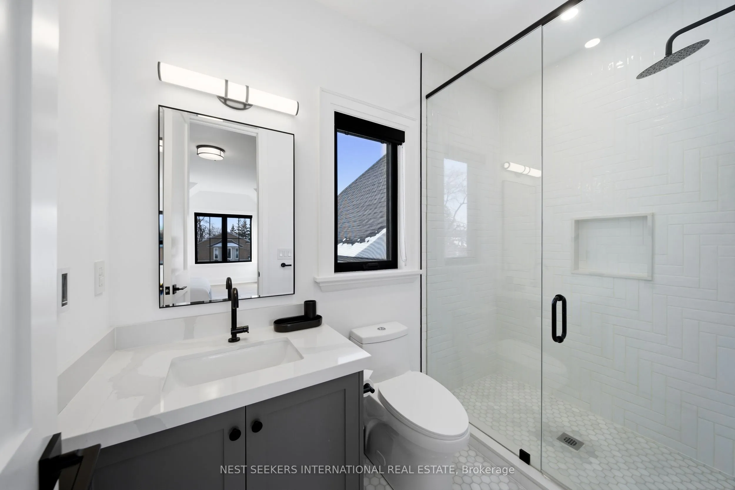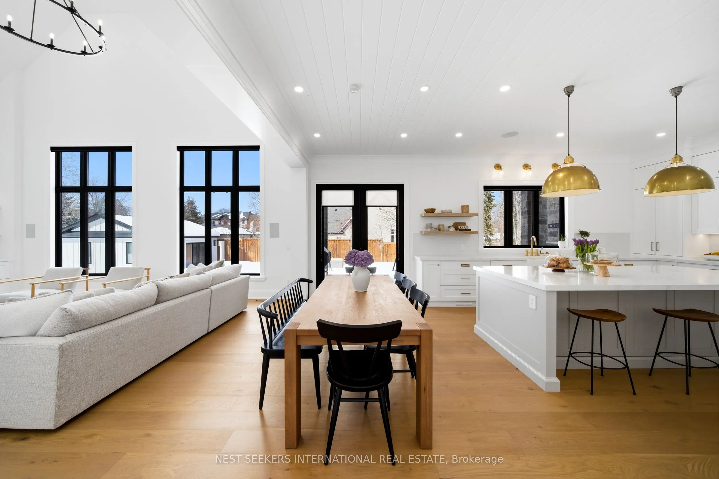 On a premium 150 ft x 148 ft lot, crafted by Fulton Homes & designed by Dero Building Designs, this custom modern farmhouse offers approx 6,500 sq ft of total finished living space, plus a finished lower level. Designed as a 4 bdrm home with option for nanny/in-law suite below. Soaring 10′ ceilings on main, 9′ on 2nd, dramatic 20′ family rm & 9.5′ lower level create exceptional volume & natural light t/o. Custom kitchen by Villa Kitchen & Cabinets features quartz counters, Thermador appls, bespoke built-ins & millwork carried into vanities & closets. Heated flrs in all washrooms, Riobel & Vogt fixtures & Vovo smart toilet in primary suite. Family rm anchored by 46″ Majestic gas f/p w custom mantel, motorized chandelier & Control4 automation. Primary retreat offers 42″ Valor linear f/p, custom paneling & motorized blinds. Control4 lighting & speakers, CAT6 t/o, dual Wi Fi incl cabana, Nest thermostats, central vac & 6-cam security w Rogers monitoring. Heated 3-car garage w 12.5′ ceilings, epoxy flrs & 9,000 lb car lift. Lower level w gym, wet bar (rough-in kitchenette/dw) & tiled cold cellar. Rear 10’x25′ covered loggia w 42″ Kingman gas f/p, TV mount & glass railings. Ext by Land Design Canada, executed by LA Landscaping, incl Hunter irrigation & Leafguard. Resort-style yard w pool by Artscape Construction Pools & 18’x18′ cabana w 3-pc bath & outdoor Kitchen Aid BBQ. Finished in Arctic White James Hardie Board w Visual Comfort lighting t/o. Exceptional design, tech & craftsmanship.