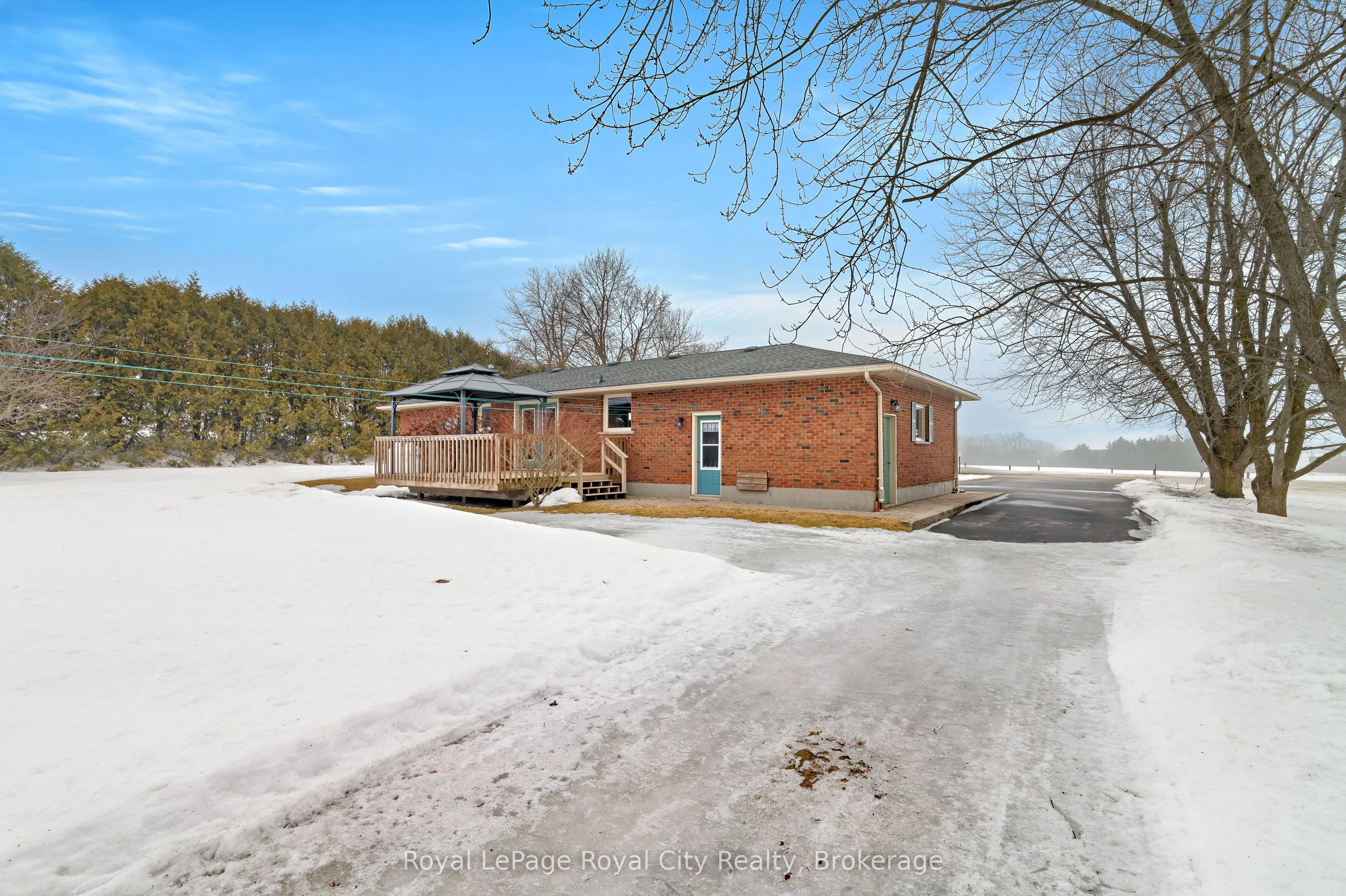 Set on a rare 3+ acre property just minutes from Elora, this lovingly maintained one-owner bungalow offers rural tranquility with the potential for lot severance (buyer to verify with the appropriate government body). Surrounded by a private yard with mature trees and boasting a 24′ x 52′ insulated workshop/barn equipped with hydro and water, the property provides incredible versatility for hobbyists, small business use, or hobby farmers. Inside, the well-maintained interior features a bright living room that welcomes natural light and creates a warm, comfortable space for everyday living. The functional eat-in kitchen offers ample cupboard and pantry space, making meal preparation and storage both convenient and efficient. From the dinette area, sliding doors lead to a 17′ x 14′ deck complete with a gazebo, an ideal spot for relaxing, entertaining, or enjoying the peaceful views of the surrounding country-side. The main level includes three bedrooms and a 4-piece bathroom, offering a practical layout for families or those seeking convenient one-level living. Downstairs, the partially finished basement expands the living space with a 4th bedroom, laundry area, and an unfinished recreation room ready for your personal finishing touches. The home also features an attached one-car garage and plenty of parking space in the driveway. This is a fantastic opportunity to enjoy country living while being only minutes from the boutique shops, restaurants, and charm of Elora.