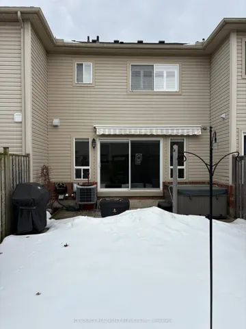 Well maintained 2-storey freehold townhome in family friendly neighbourhood close to schools, parks, shopping, Go Station, highways, etc. Single car attached garage with opener and storage in attic space. Main floor features a powder room, kitchen with fridge, stove, dishwasher and microwave that is open to the living/dining room combo that has an electric fireplace. Windows and an oversized sliding patio door open onto a cozy quiet fenced in backyard with room for children, pets and adults to enjoy that includes a patio, two person hot tub and powered awning. Upper level has a master with ensuite & walk in closet with organizer plus two other well-proportioned bedrooms and another bathroom. Basement level includes laundry with washer/dryer, utility room with furnace and humidifier and the opportunity to customize further. Roof replaced in 2020. Programmable thermostat. LED lights throughout. Shutters on upper level, roller blinds on lower level. Central air.*For Additional Property Details Click The Brochure Icon Below*
