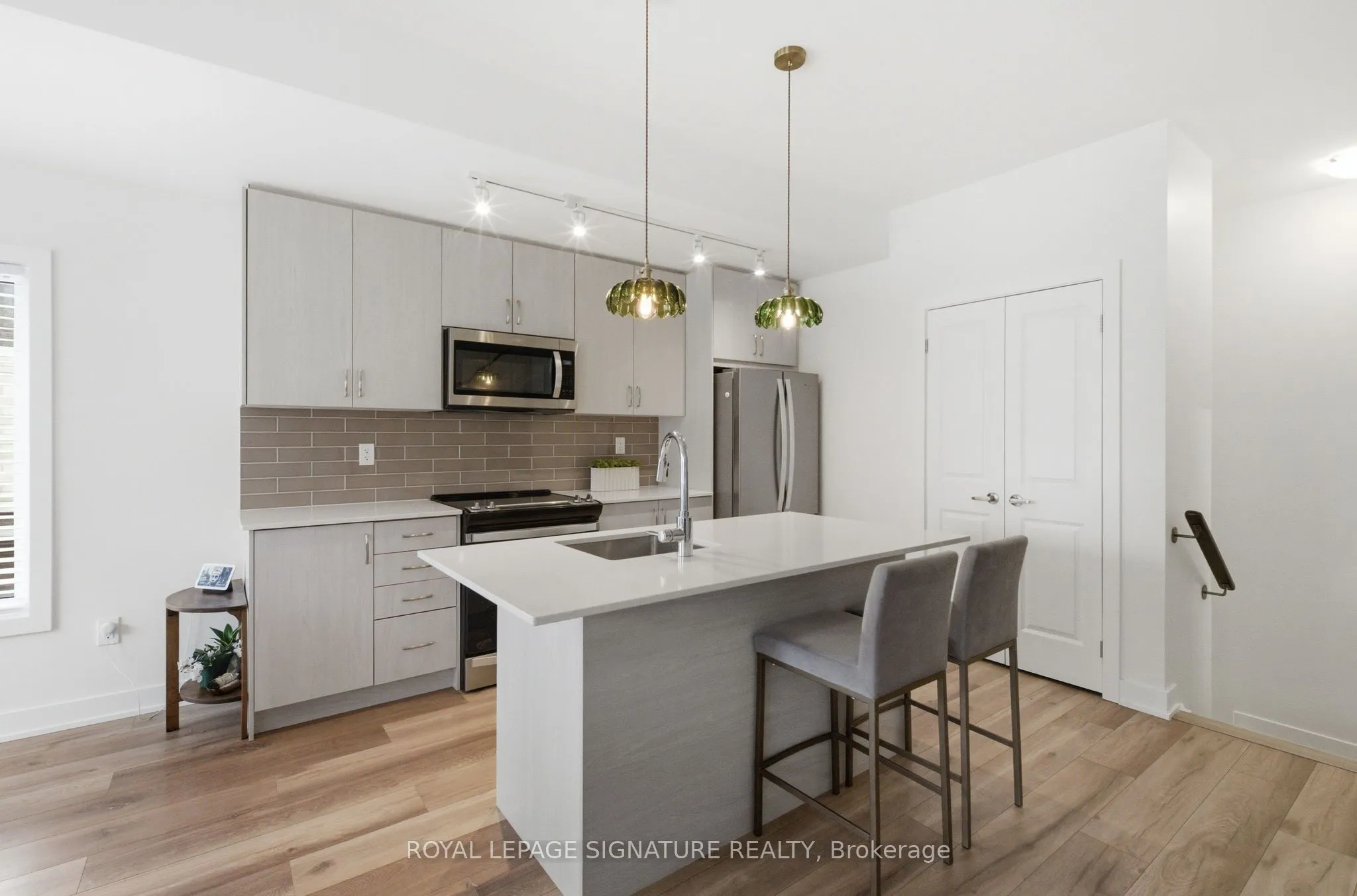 Welcome to 29 Canton Lane, a newly built (2024) end-unit townhome designed for the way modern life actually unfolds, offering all the convenience of condo living without the compromises. No elevators, no crowded hallways, no shared walls on both sides – just your own private entrance, multiple levels of bright living space, and the freedom that comes with it. For those ready to moveup from a condo, or skip it entirely, this home delivers the perfect balance of independence and low-maintenance living. From the moment you step inside, natural light pours through oversized windows, highlighting the clean lines, upgraded finishes, and airy feel that make the home both calming and quietly impressive. With two spacious bedrooms and three bathrooms, the thoughtful multi-level layout offers privacy, functionality, and flexibility that typical condo floor plans simply cannot match. Warm upgraded hardwood floors flow through the open-concept space, anchored by a sleek kitchen featuring quartz countertops, stainless steel appliances, a generous island for gathering, and a pantry to keep everything organized and within reach. Whether it’s slow Sunday mornings, weeknight dinners, or entertaining friends, the space adapts effortlessly. Just beyond, a private balcony offers fresh air and apeaceful spot for morning coffee or evening unwinding. Above, your private rooftop terrace becomes a true extension of the home, complete with a gas BBQ hookup and sweeping open views. Here, summer evenings linger, sunsets become routine, and on clear nights you can even catch a glimpse of the distant CN Tower. It’s outdoor living most condo owners only wish they had. Set in the vibrant heart of Stouffville, you’re steps to GO Transit, parks, schools, shops, restaurants, and daily essentials including Metro and Tim Hortons. Move-in ready and beautifully finished, offering more space, more privacy, and a lifestyle that that feels effortlessly elevated.