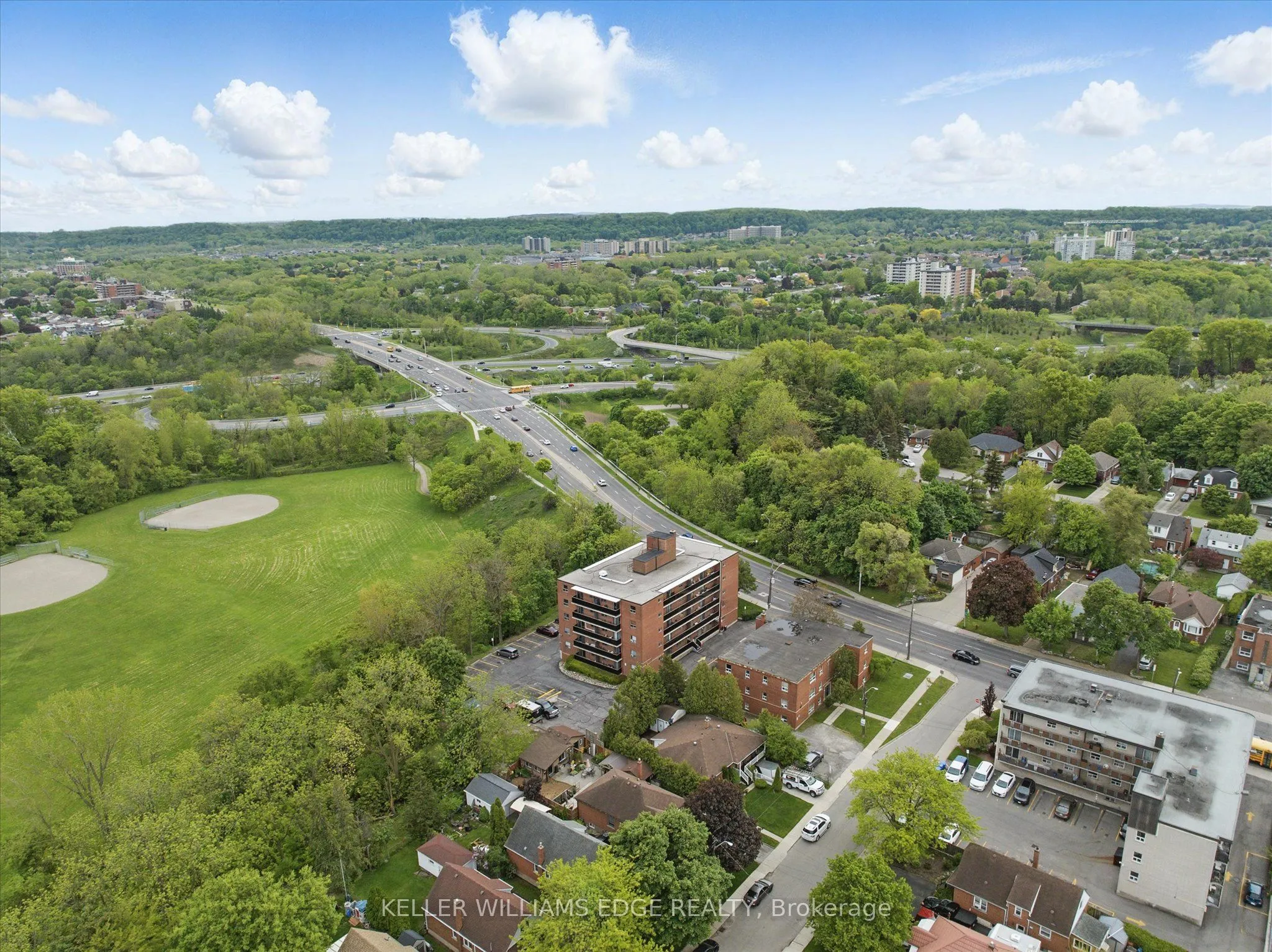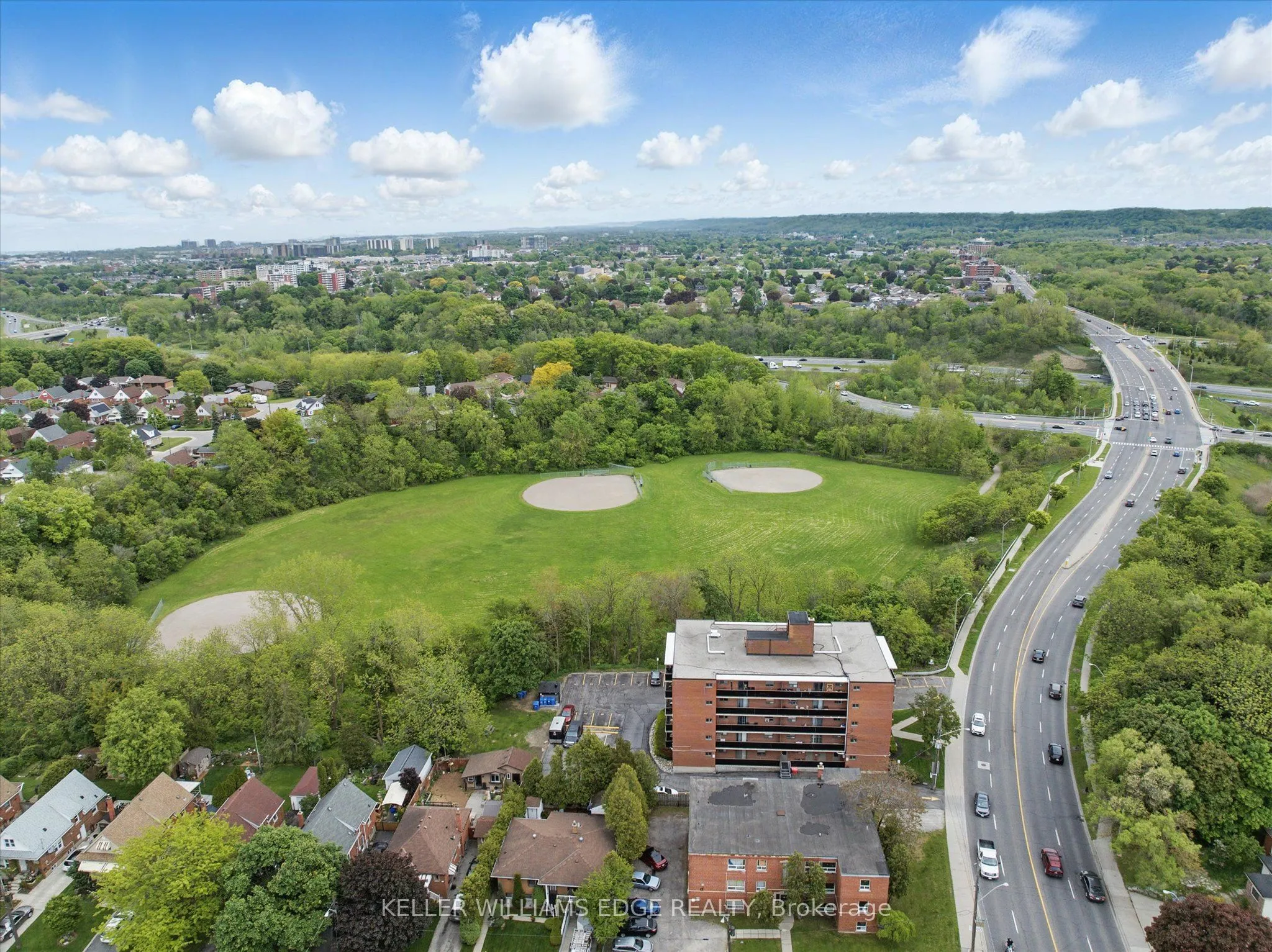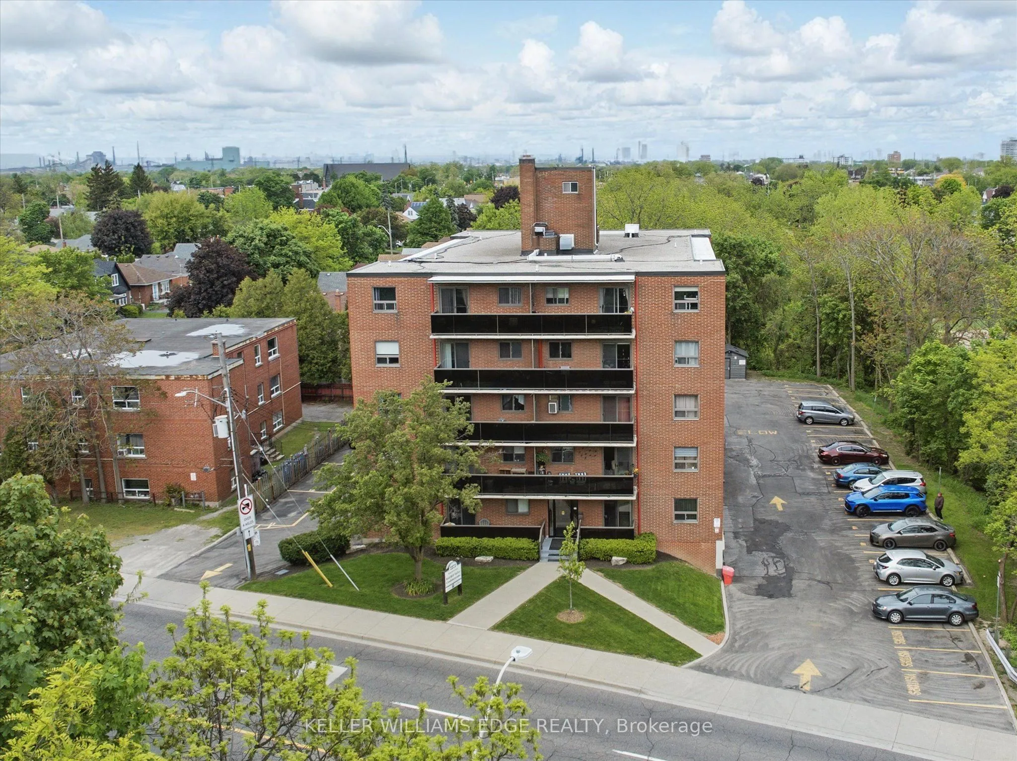 Welcome to this bright and stylish 1-bedroom, 1-bathroom condo offering 618 square feet of comfortable, well-designed living space on the forth floor of a quiet and well-maintained building in East Hamilton. The modern kitchen features quartz countertops, a double undermount sink, and a convenient breakfast bar, seamlessly opening into the living area. From here, step out onto your private balcony-an ideal spot to enjoy your morning coffee or unwind while taking in the evening sunset. The generously sized bedroom and windows provide an abundance of natural light throughout. Additional features include secure building entry, elevator access, low monthly condo fees, a clean and well-kept on-site laundry room, one dedicated parking space, and a storage locker conveniently located just steps from the unit. The building is surrounded by mature trees and green space, with plenty of visitor parking available. Located just minutes from the Red Hill Valley Parkway, the Lincoln Alexander Parkway, and the QEW, this location is ideal for commuters. Outdoor enthusiasts will appreciate the close proximity to Red Hill Bowl Park and direct access to the Red Hill Valley Trail, providing easy opportunities to enjoy nature close to home. A fantastic opportunity for first-time buyers, downsizers, or anyone seeking move-in-ready, low-maintenance living in a connected and welcoming neighbourhood.