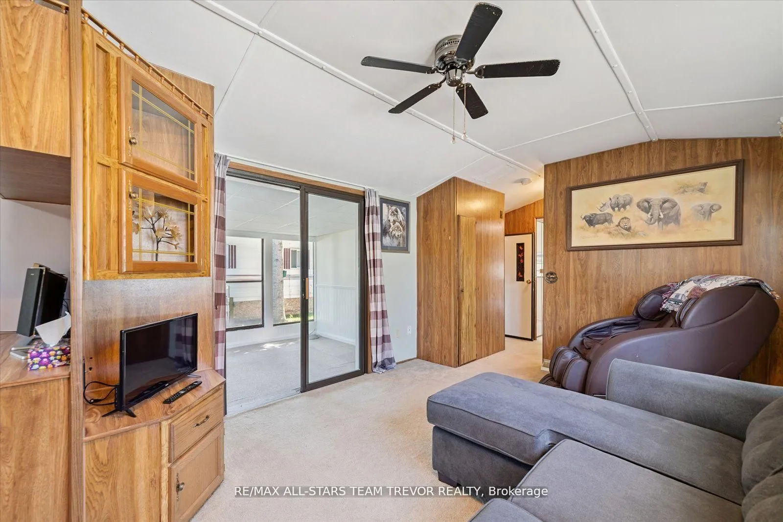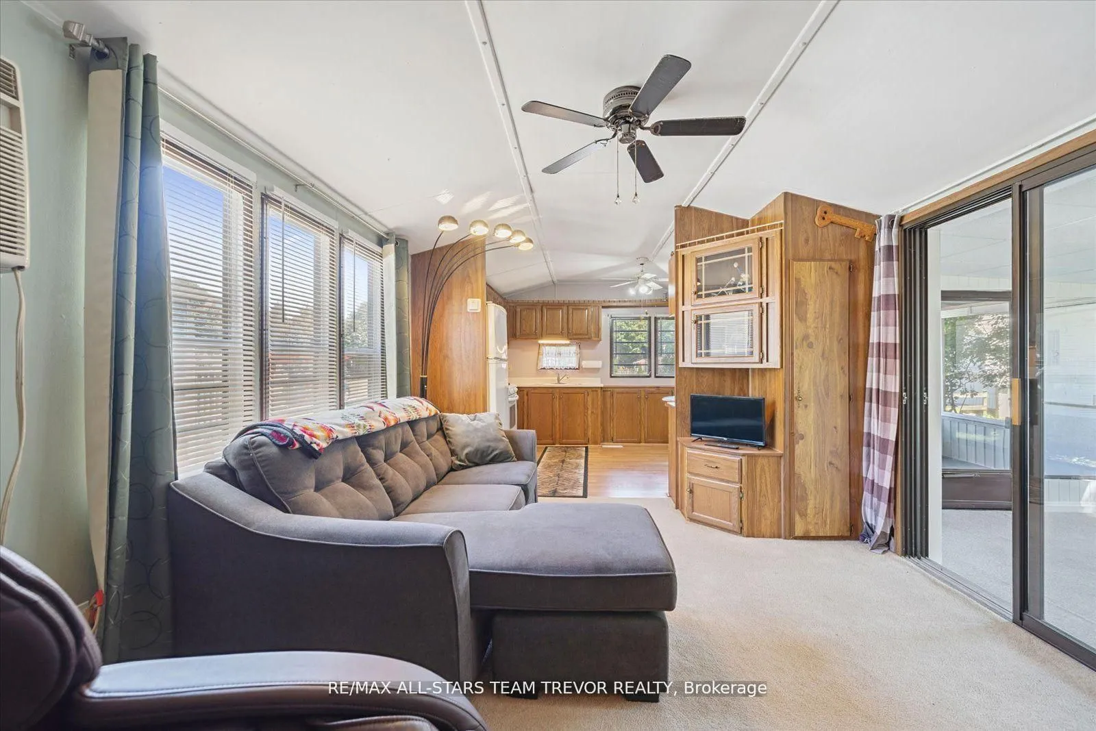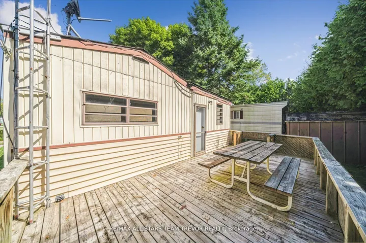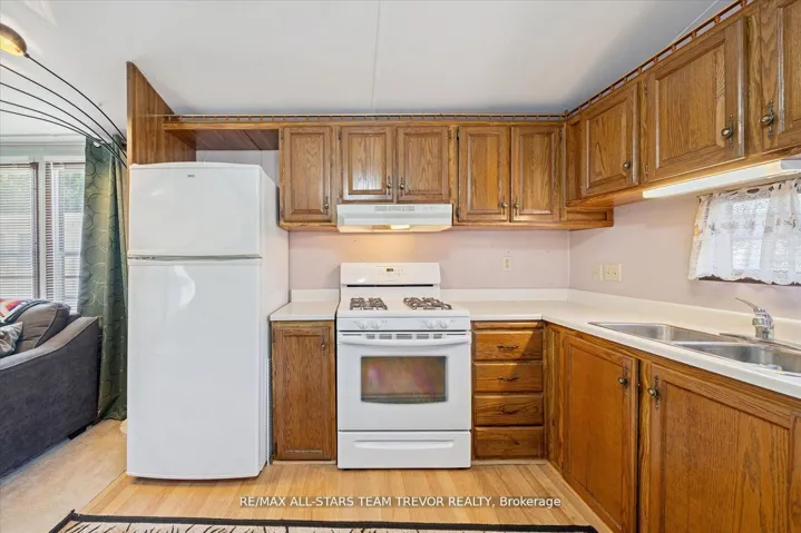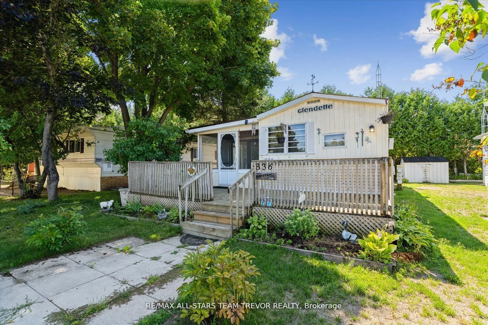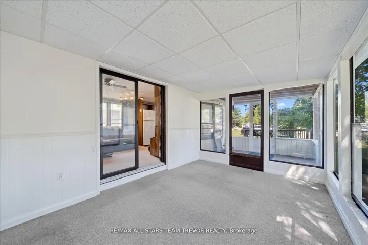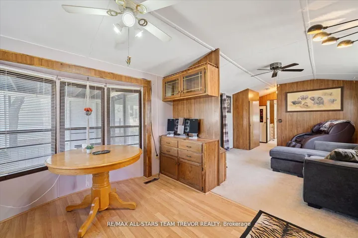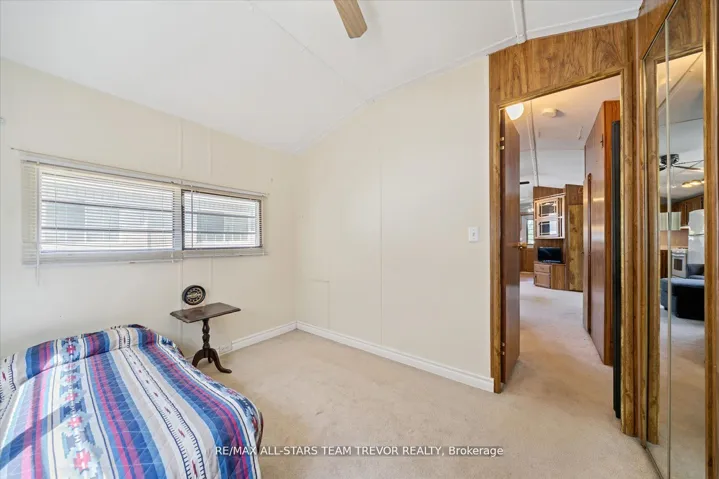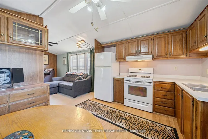 Enjoy year round living at Lyndhurst Park & Golf course, a 55+ Adult Community, offering a social setting with an opportunity for affordable living, & private, serene surroundings. This two bedroom, one bathroom home backs on to the Black River & offers ample outdoor areas for relaxing, BBQing, entertaining or gardening with a shed to store all of your equipment, tools & toys. The bright open living room boasts multiple windows and a walk out to the sunroom. The open concept kitchen / dining room offers plenty of counter cupboard space & includes a full size stove & fridge and full size bay windows in the dining area making this space a perfect balance. Extra storage is offered with built-ins, perfect for a pantry and broom closet. The primary bedroom has a wall to wall closet & multiple closets. The second bedroom has his/her closets & built in drawers for lots of storage space.. The 3 season sunroom has multiple windows to enjoy the outdoors while you’re still indoors. Enjoy Access To Park Amenities, Including An 18-Hole Golf Course, Outdoor Pool, Dog Park, Trails and access to the Black River along with access to the Clubhouse With Social Activities. This home is move in ready! Monthly Landlease Rental Includes Rd Maintenance, Water & Septic. Buyer’s subject to Lyndhurst Land lease transfer fee of of 5% of purchase price. 2025 fees were $3575 +hst for 6 Months from April to October. This unit gives you the option to extend past the 6 months at per day rate.