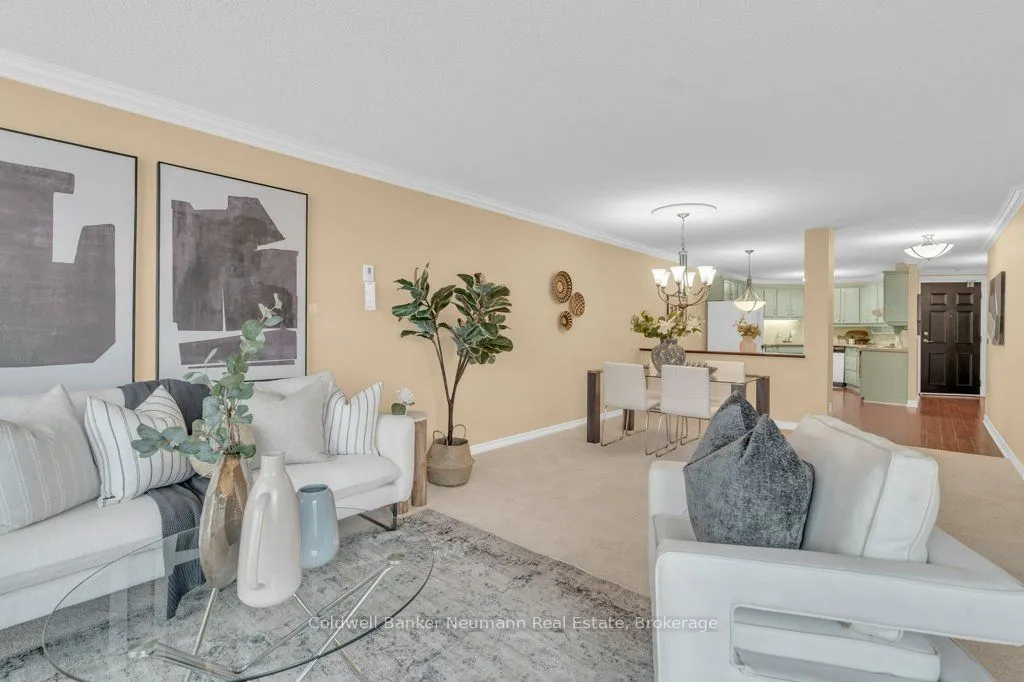 Bright, spacious and inviting, this 2-bedroom condo + den offers 1,545 sq. ft. of comfortable living in a friendly, welcoming building. Floor-to-ceiling windows fill the space with natural light and frame peaceful views of Riverside Park, with leafy summer privacy and open winter vistas. On Canada Day, you can even enjoy the fireworks from your living room! The open-concept living and dining areas flow effortlessly into the kitchen, creating a warm space for family meals, relaxing evenings, or entertaining friends. The primary bedroom includes a 2-piece ensuite, and a main 3-piece bath serves the other bedrooms. The generous sized bedrooms offer a nice place to not only sleep but, relax and unwind in while the den can easily serve as an additional 3rd bedroom or home office. Everyday conveniences include in-suite laundry, a storage locker, and underground parking. Beyond your door, you’ll find walking trails, a senior centre, and the beauty of Riverside Park plus shopping, restaurants, golf and more just minutes away. This inviting unit with its scenic outlook, is ready for you to call it home.
