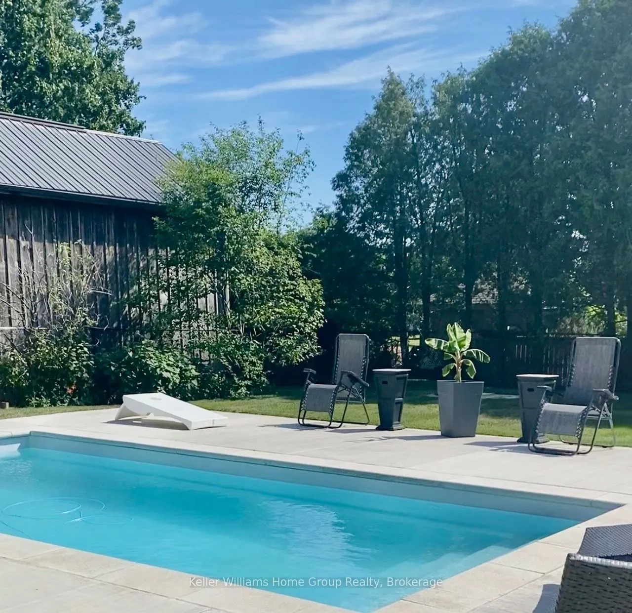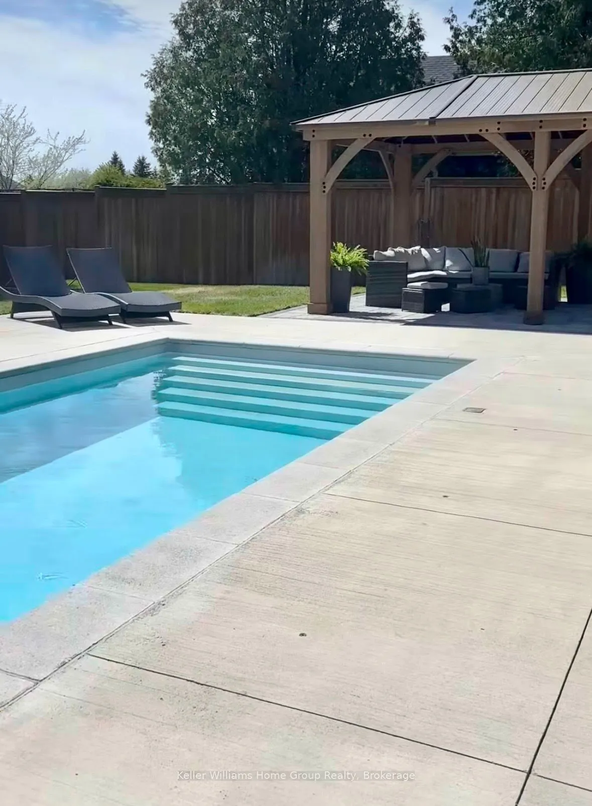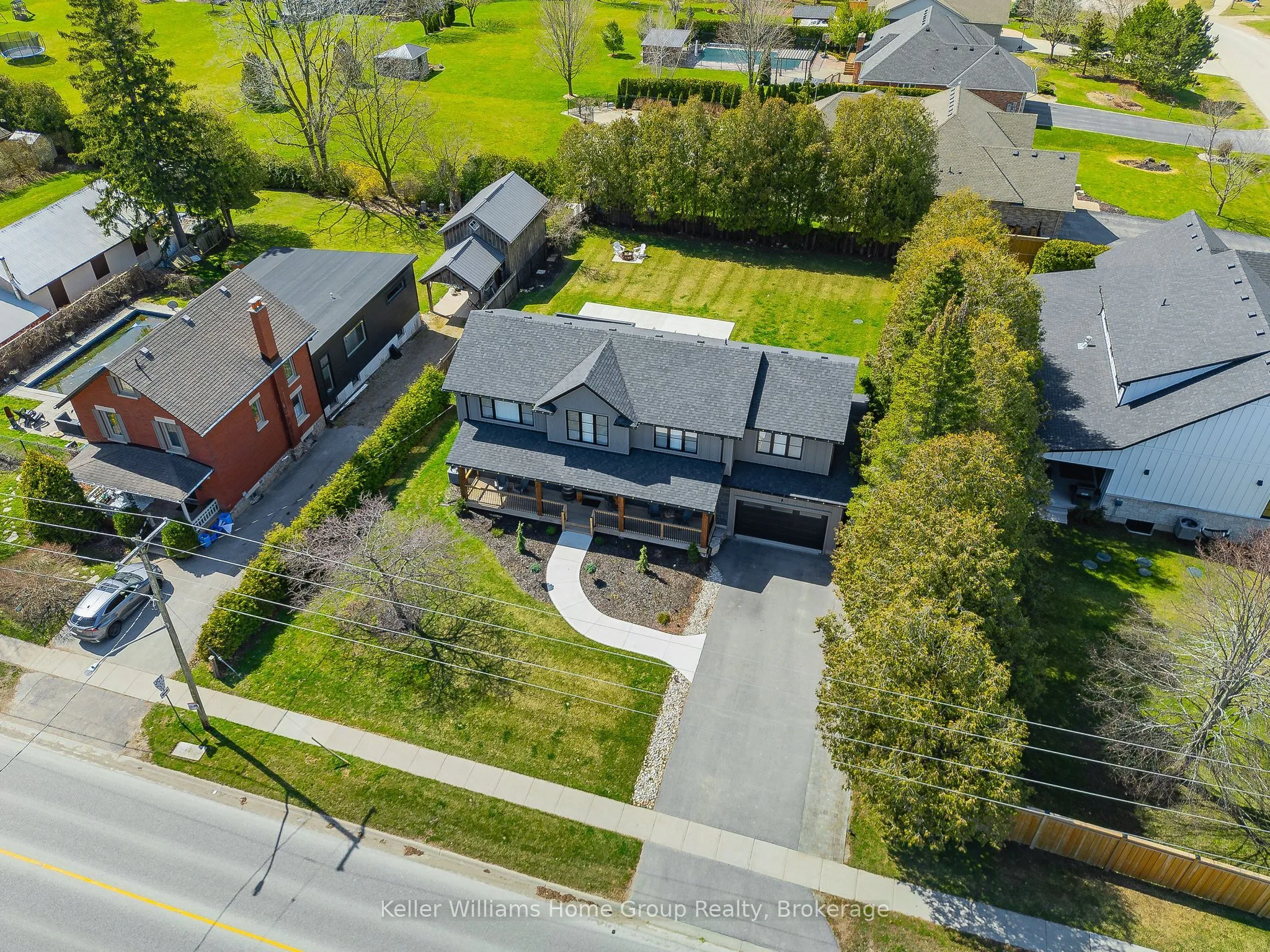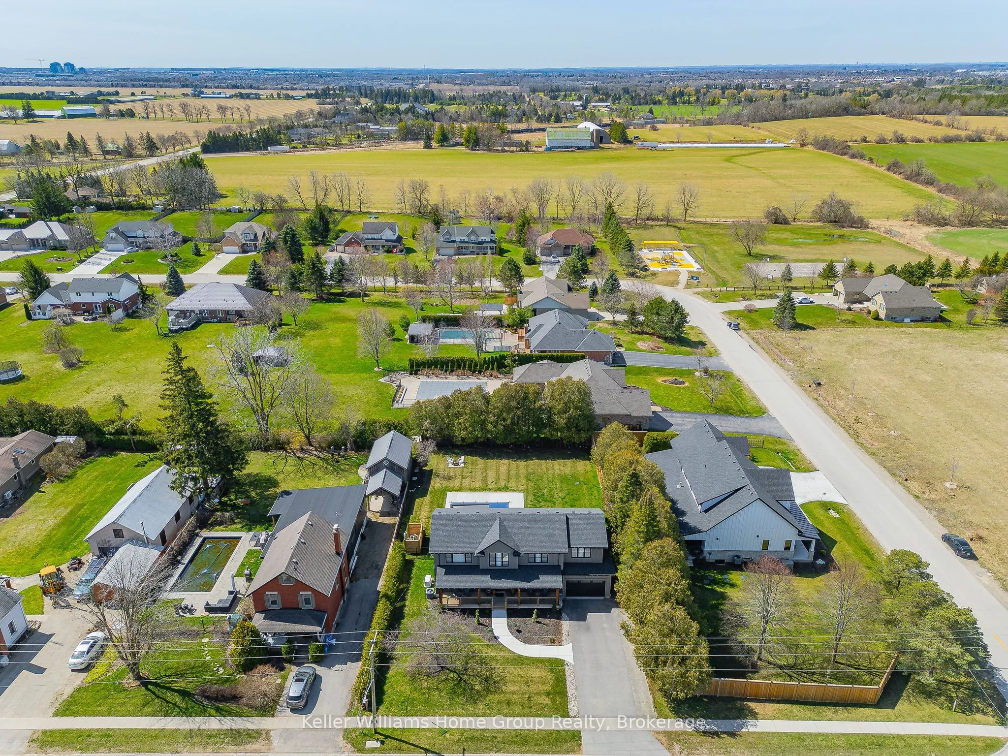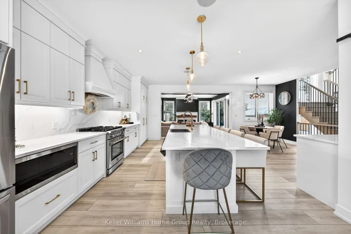 Rare Arkell opportunity offering luxury country living with city convenience – homes in this sought after community rarely come available. Set on a large private lot with a resort-style backyard, this four year old custom home delivers refined modern living designed for both entertaining and everyday comfort. Enjoy summer days by the sparkling saltwater pool, unwind beneath the elegant pergola and appreciate manicured landscaping with in ground sprinkler system, your own private outdoor retreat. Inside, open concept living unfolds beautifully. Just off the gourmet kitchen is a stunning, light filled family room, a true showpiece of this home, featuring a sleek linear fireplace with custom wood mantel, statement lighting and walls of windows that create an almost sunroom like atmosphere. Flooded with natural light and overlooking the backyard, this inviting space is perfect for morning coffee, family gatherings or cozy evenings by the fire. The chef’s kitchen impresses with quartz countertops, premium appliances, sleek cabinetry and an oversized island with breakfast bar seating, thoughtfully designed for hosting and daily living. A dramatic staircase becomes an architectural focal point, highlighted by a skylight above and striking staked windows that fill the home with natural light and create an airy, elevated feel from the moment you enter. Upstairs, the primary suite offers a serene retreat with spa inspired ensuite including soaking tub, walk-in glass shower, and double vanity. Three additional bedrooms and a beautifully finished main bath private exceptional comfort for family and guests. The fully finished basement expands your living pace with an additional family area, two bedrooms and a full bathroom, ideal for guests teens or a home office. Located minutes to shopping, schools and parks this rare Arkell property delivers modern luxury, seamless indoor-outdoor living and the peace of country living with city access.