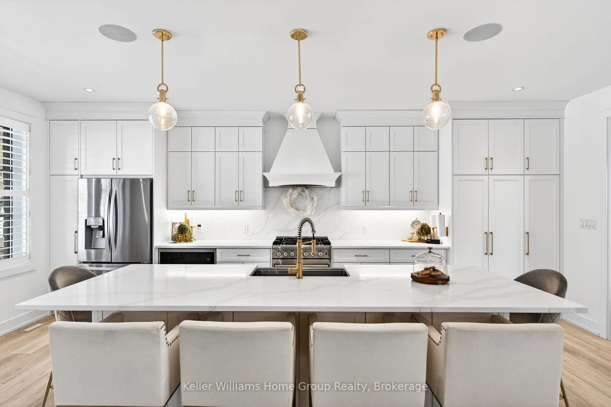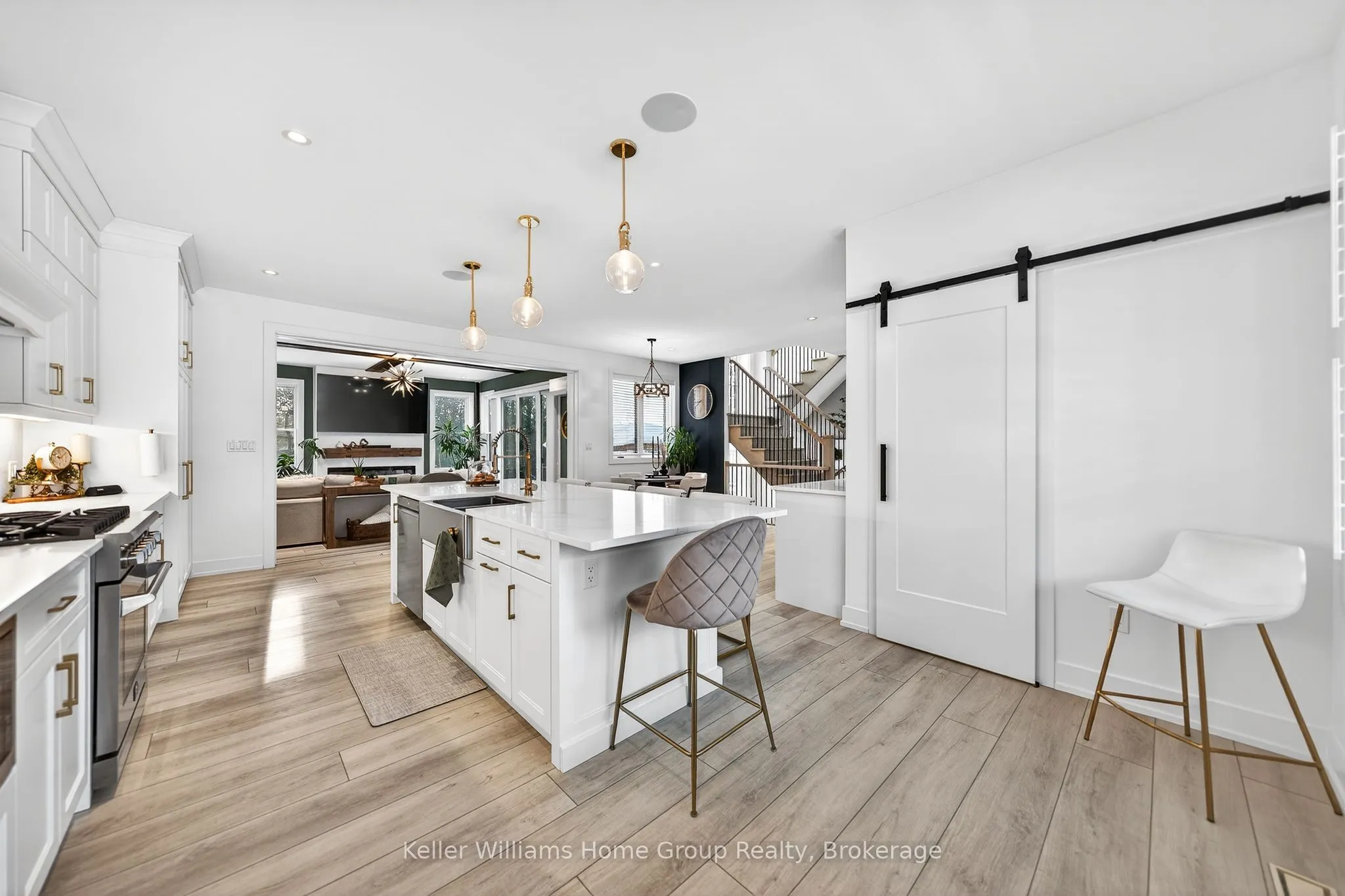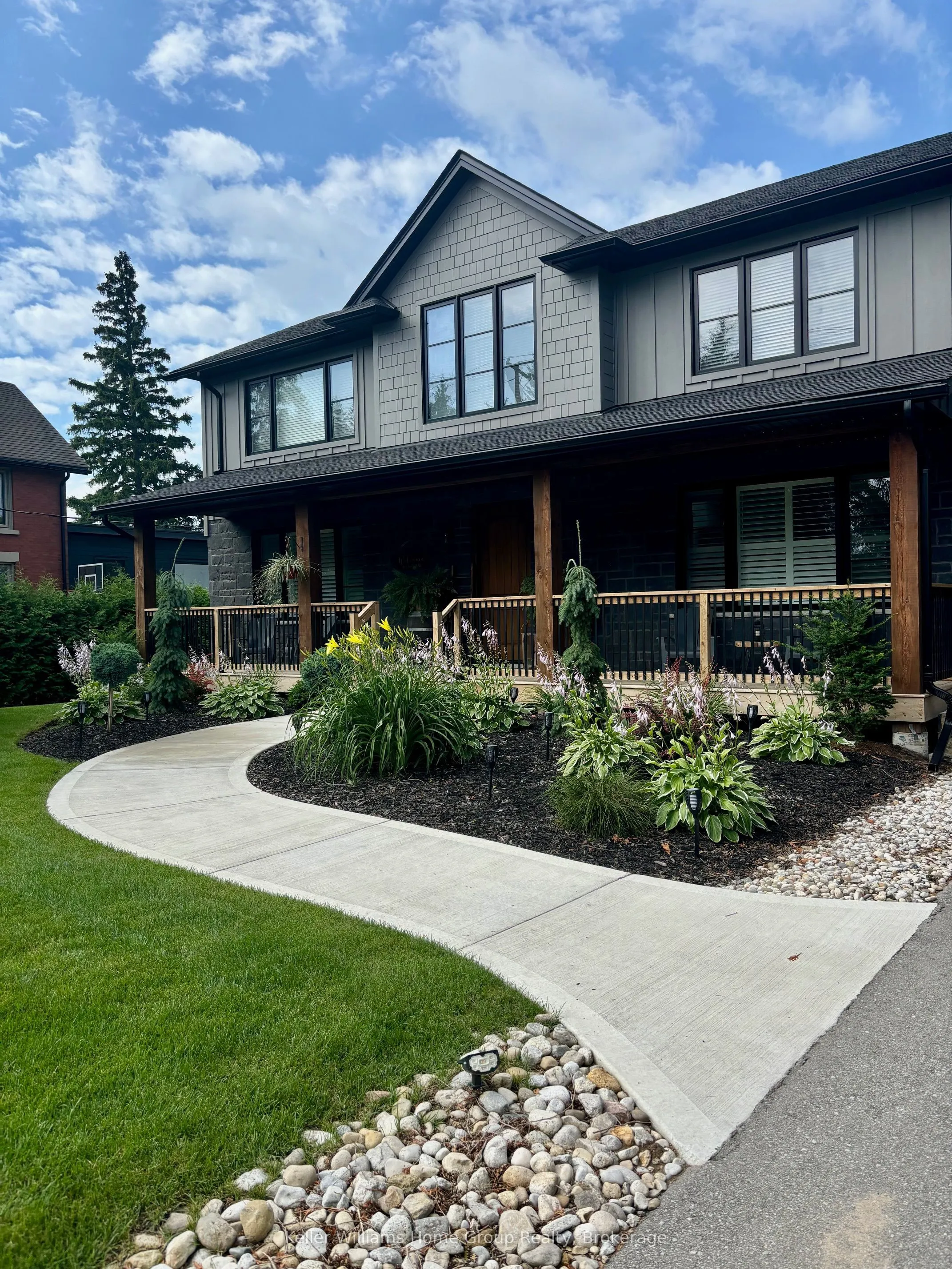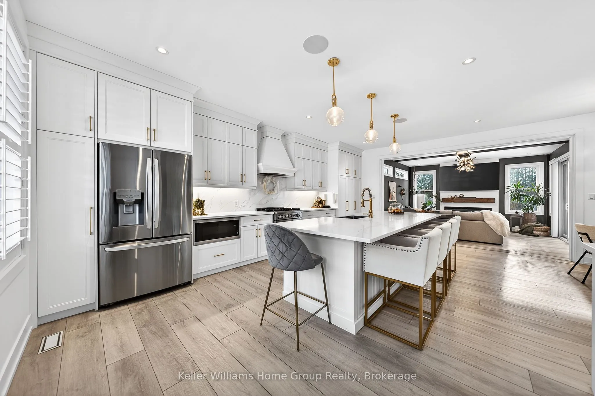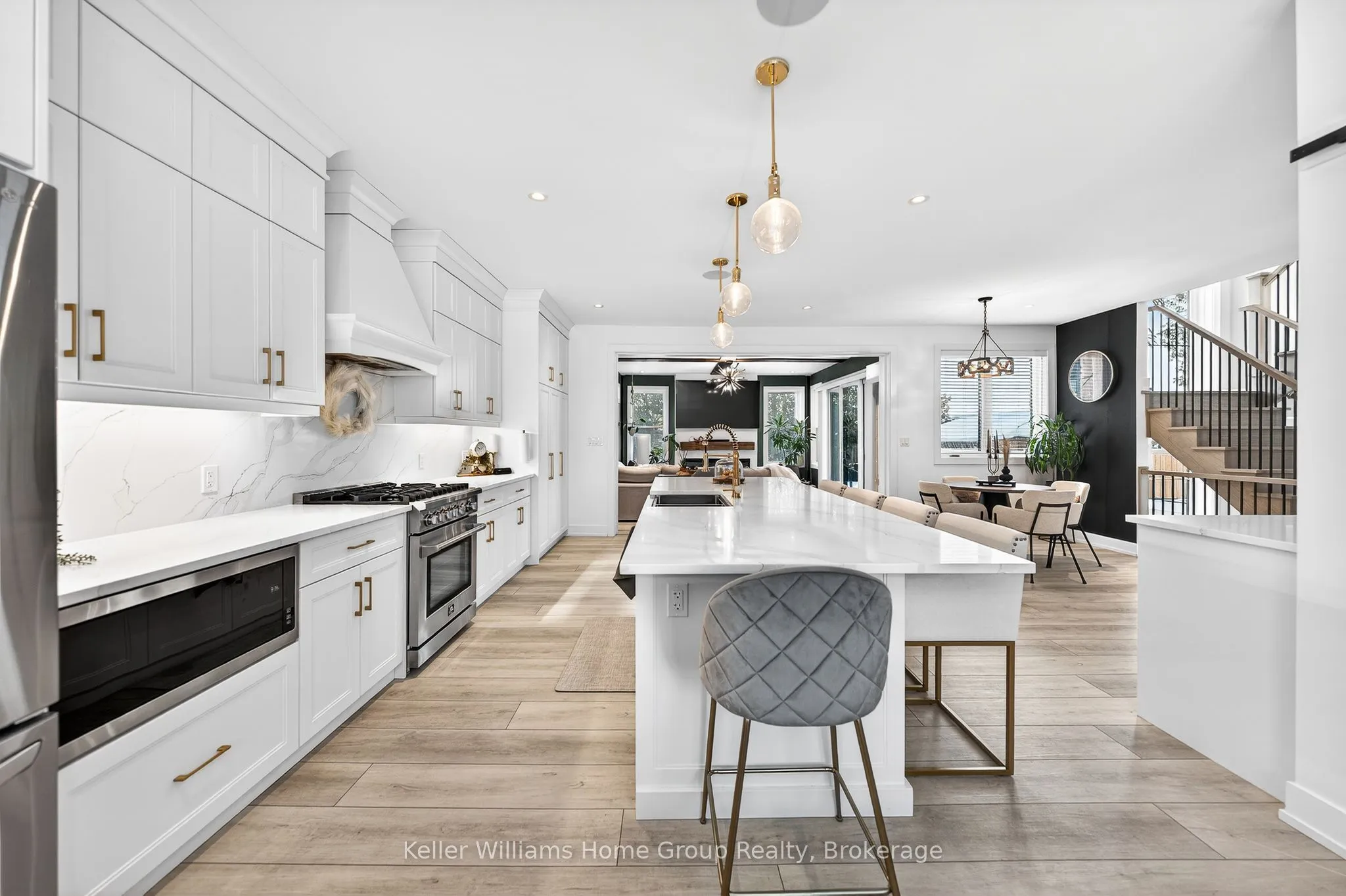 Rare Arkell opportunity offering luxury country living with city convenience – homes in this sought after community rarely come available. Set on a large private lot with a resort-style backyard, this four year old custom home delivers refined modern living designed for both entertaining and everyday comfort. Enjoy summer days by the sparkling saltwater pool, unwind beneath the elegant pergola and appreciate manicured landscaping with in ground sprinkler system, your own private outdoor retreat. Inside, open concept living unfolds beautifully. Just off the gourmet kitchen is a stunning, light filled family room, a true showpiece of this home, featuring a sleek linear fireplace with custom wood mantel, statement lighting and walls of windows that create an almost sunroom like atmosphere. Flooded with natural light and overlooking the backyard, this inviting space is perfect for morning coffee, family gatherings or cozy evenings by the fire. The chef’s kitchen impresses with quartz countertops, premium appliances, sleek cabinetry and an oversized island with breakfast bar seating, thoughtfully designed for hosting and daily living. A dramatic staircase becomes an architectural focal point, highlighted by a skylight above and striking staked windows that fill the home with natural light and create an airy, elevated feel from the moment you enter. Upstairs, the primary suite offers a serene retreat with spa inspired ensuite including soaking tub, walk-in glass shower, and double vanity. Three additional bedrooms and a beautifully finished main bath private exceptional comfort for family and guests. The fully finished basement expands your living pace with an additional family area, two bedrooms and a full bathroom, ideal for guests teens or a home office. Located minutes to shopping, schools and parks this rare Arkell property delivers modern luxury, seamless indoor-outdoor living and the peace of country living with city access.