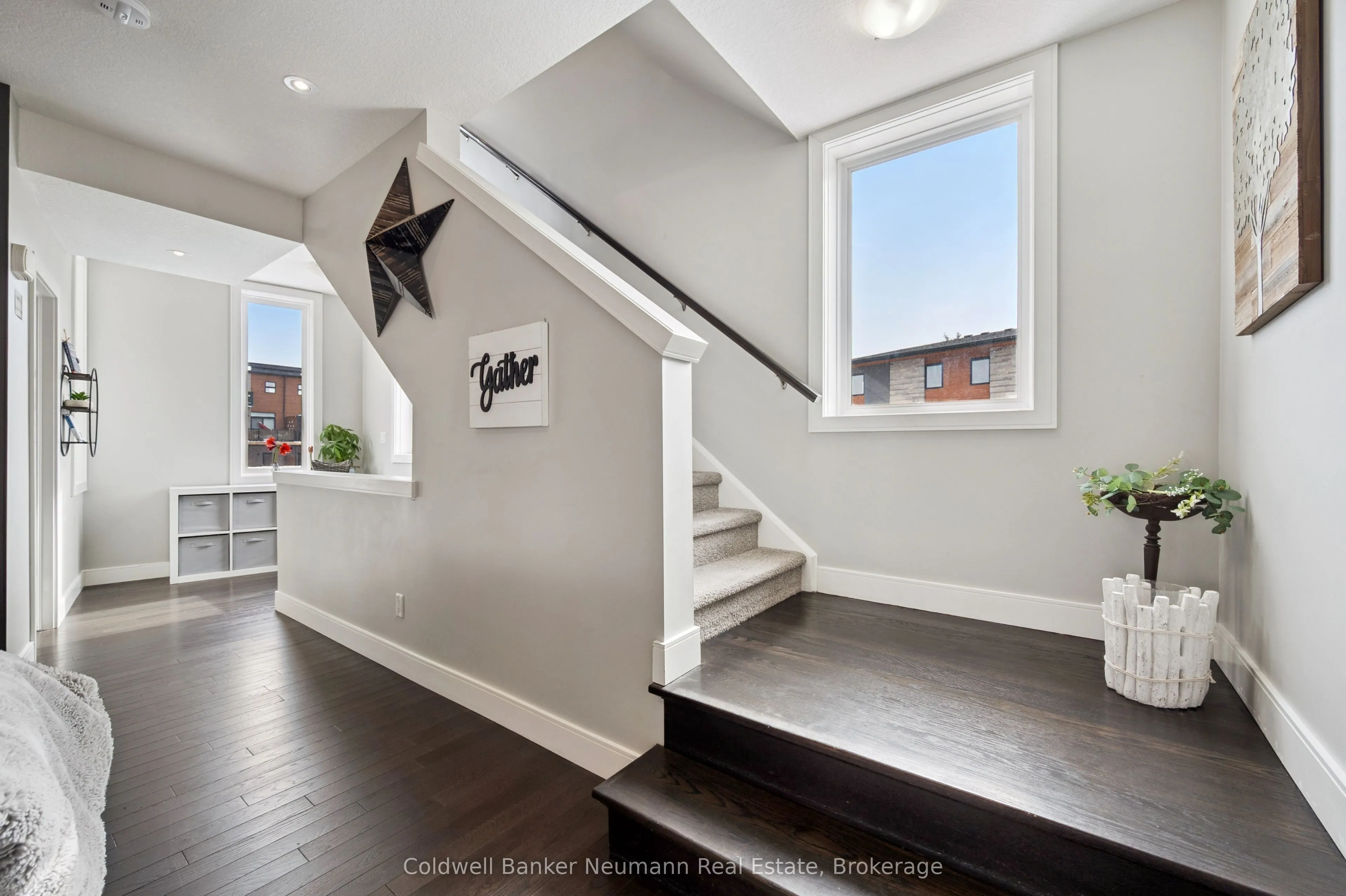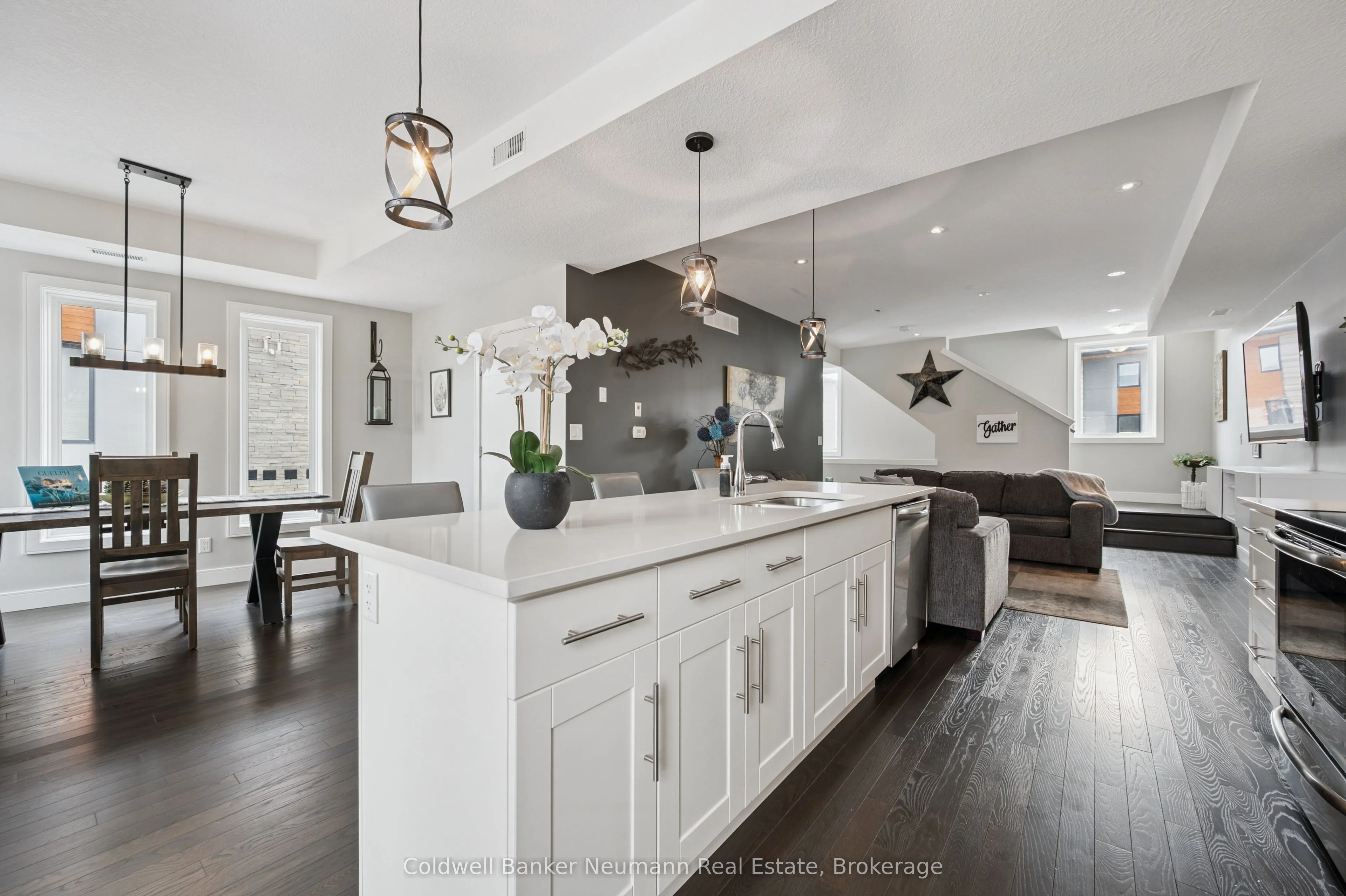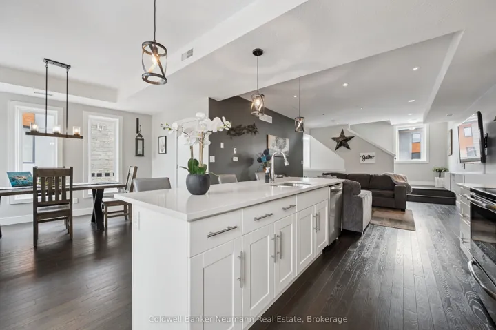 Welcome to this beautifully maintained 3-bedroom, 3-bathroom corner unit stacked townhouse located in the highly sought-after south end of Guelph. Offering a perfect blend of comfort, style, and convenience, this bright and spacious home is ideal for professionals, downsizers, or growing families alike.This desirable corner unit is filled with natural light thanks to its abundance of windows, creating a warm and inviting atmosphere throughout. The main floor features upgraded hardwood flooring, adding both elegance and durability to the living space. Enjoy the added convenience of two parking spaces located directly in front of the unit.You’ll have easy access to a wide range of shopping, dining, banking, and fitness options. Nature lovers will appreciate the nearby trails, perfect for walking, running, or simply unwinding outdoors.Public transit is just steps away, and with quick access to Highway 401, commuting is effortless.This is a fantastic opportunity to live in a vibrant, well-connected community where everything you need is right at your doorstep!