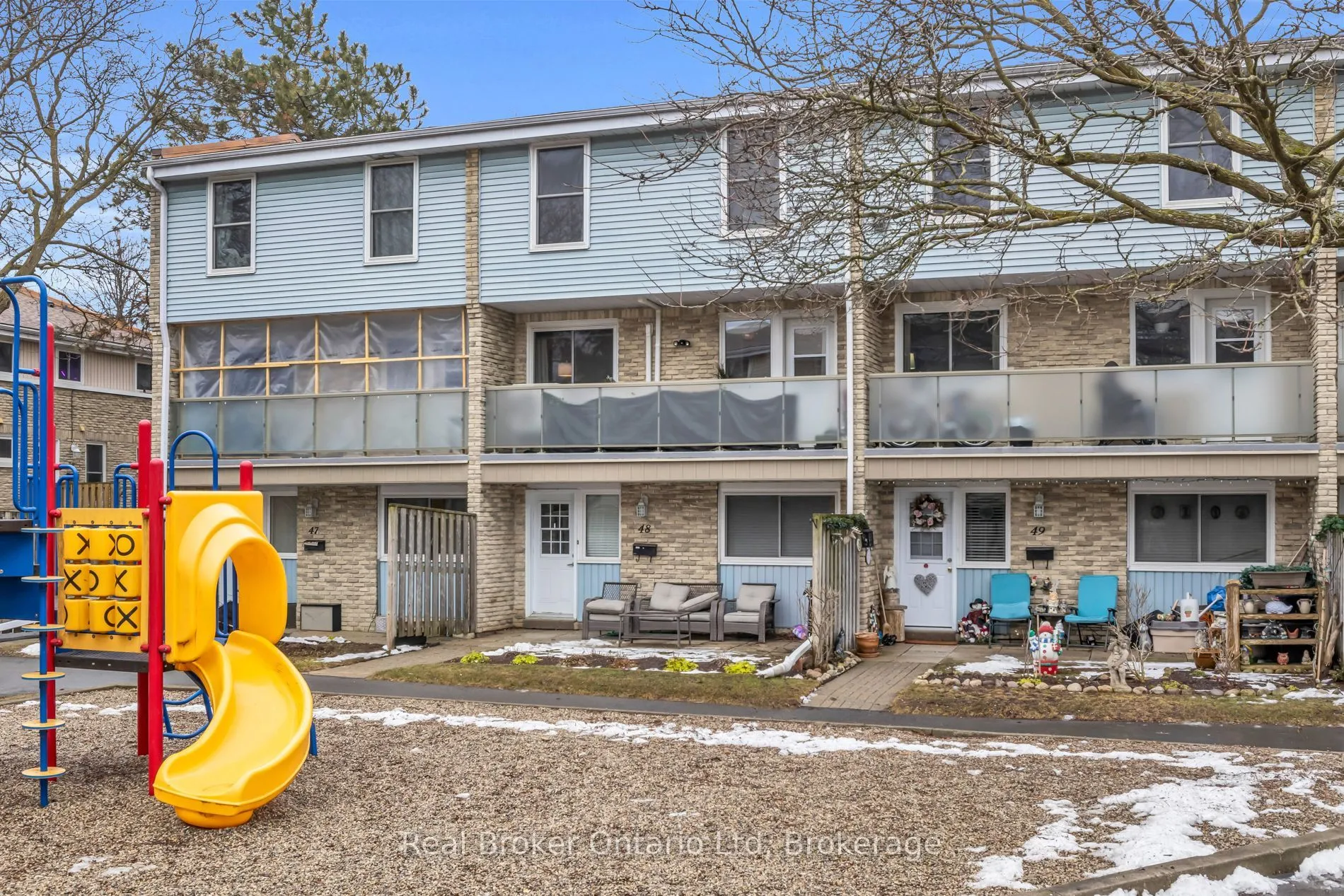 Tucked into a warm, active community in Kitchener, this beautifully updated 2-bedroom, 1-bathroom townhouse condo is where neighbours know each other’s names, kids race to the playground after school, and the smell of a community BBQ drifts through your patio on a summer evening. Inside, everything feels fresh and cared for -an updated kitchen with modern hardware and newer appliances, a spacious dining area and living room. One of the only units with AC, you will be more than comfortable here. Upstairs, you’ll find two generous bedrooms, a full 4PC bathroom and huge storage closet. The unfinished basement gives you a blank slate. With in-suite laundry plus an open flex space that works equally well as a home gym, play area, or extra storage. Step outside to your private patio: quiet, secluded, and perfect for gardening or relaxing in the evenings – or start your mornings on the private balcony with your coffee. Residents can register TWO PARKING SPACES. Walkable to schools, parks, and trails. Minutes to the Expressway, transit, and everyday amenities. Some condos just check boxes. This one builds a life around you. Book your showing today!