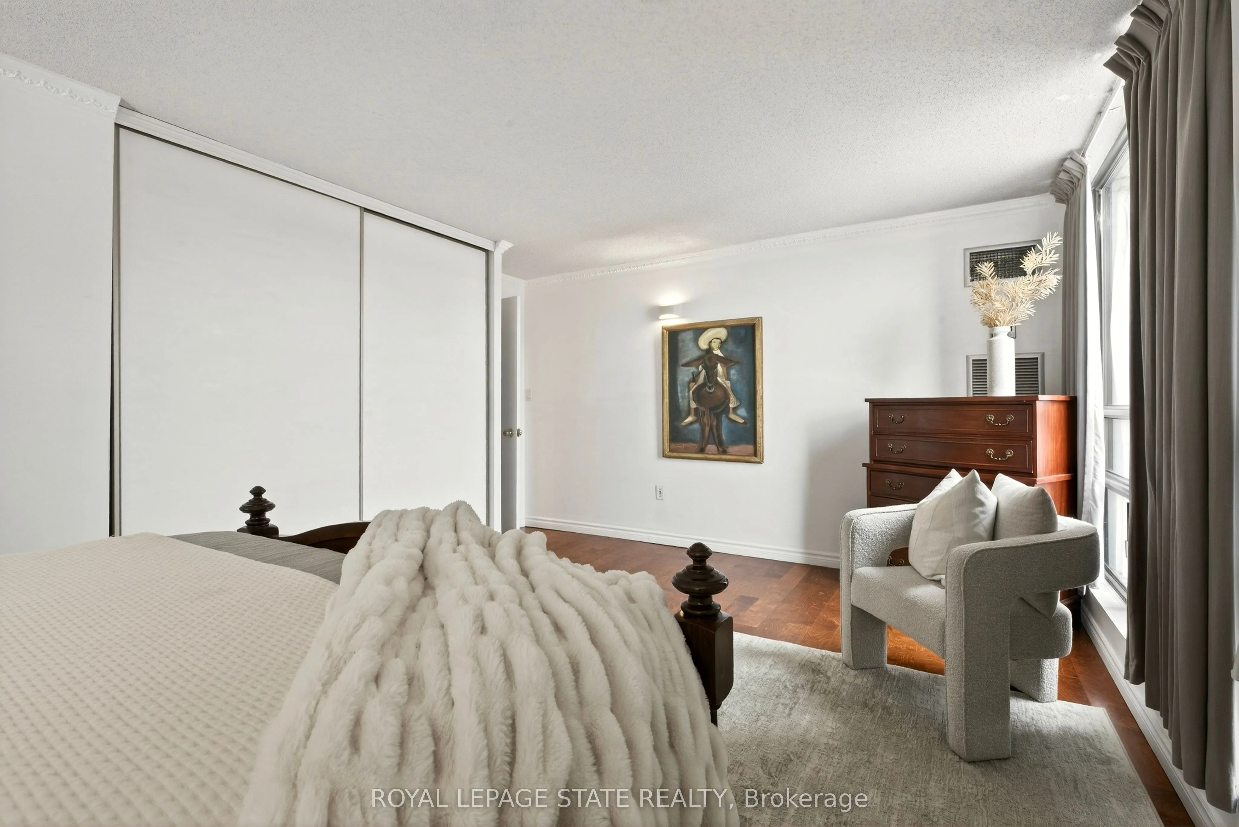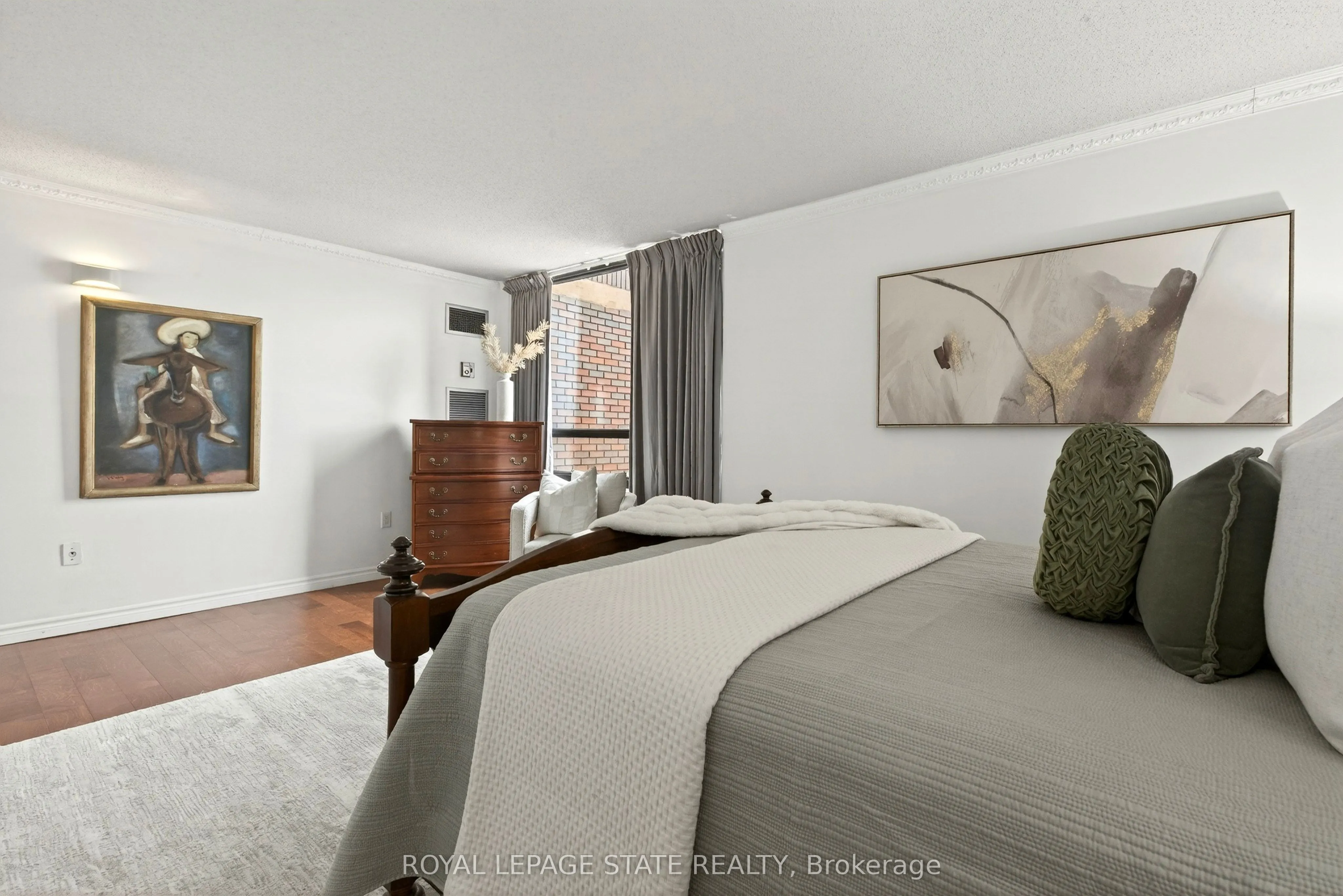 Elegantly perched on the 10th floor, this expansive corner suite provides approximately 1,350 sq. ft. of bright, flexible living space with panoramic southeast exposure. The layout easily adapts to your needs, functioning as either a spacious two-bedroom or a three-bedroom configuration with the dining area enclosed. The kitchen has been fully reimagined with stone counters, stainless steel appliances, a sleek tiled backsplash, and a pantry for added convenience. A generous second room is currently set up as a separate dining room, but transitions seamlessly into a bedroom. Both bathrooms have been modernized with updated finishes and clean, contemporary design. Throughout the suite, you’ll find a combination of engineered hardwood and tile, along with ample in-unit storage. Step outside to a covered balcony, the ideal spot to unwind while taking in the elevated views. The unit also includes underground parking and a dedicated storage locker. Residents enjoy access to a well-cared-for building with amenities including a penthouse-level lounge with encapsulating lake and city vistas, a fitness area, sauna, and convenient visitor parking. Set within the Village Hill Condominium in Durand, this location puts you within walking distance of Locke Street, Hess Village, local markets, cafés, dining, arts and culture, and everyday essentials. With close proximity to the Hamilton Convention Centre, TD Coliseum, hospitals, GO Transit, Highway 403, and a future LRT stop nearby, getting around is effortless.