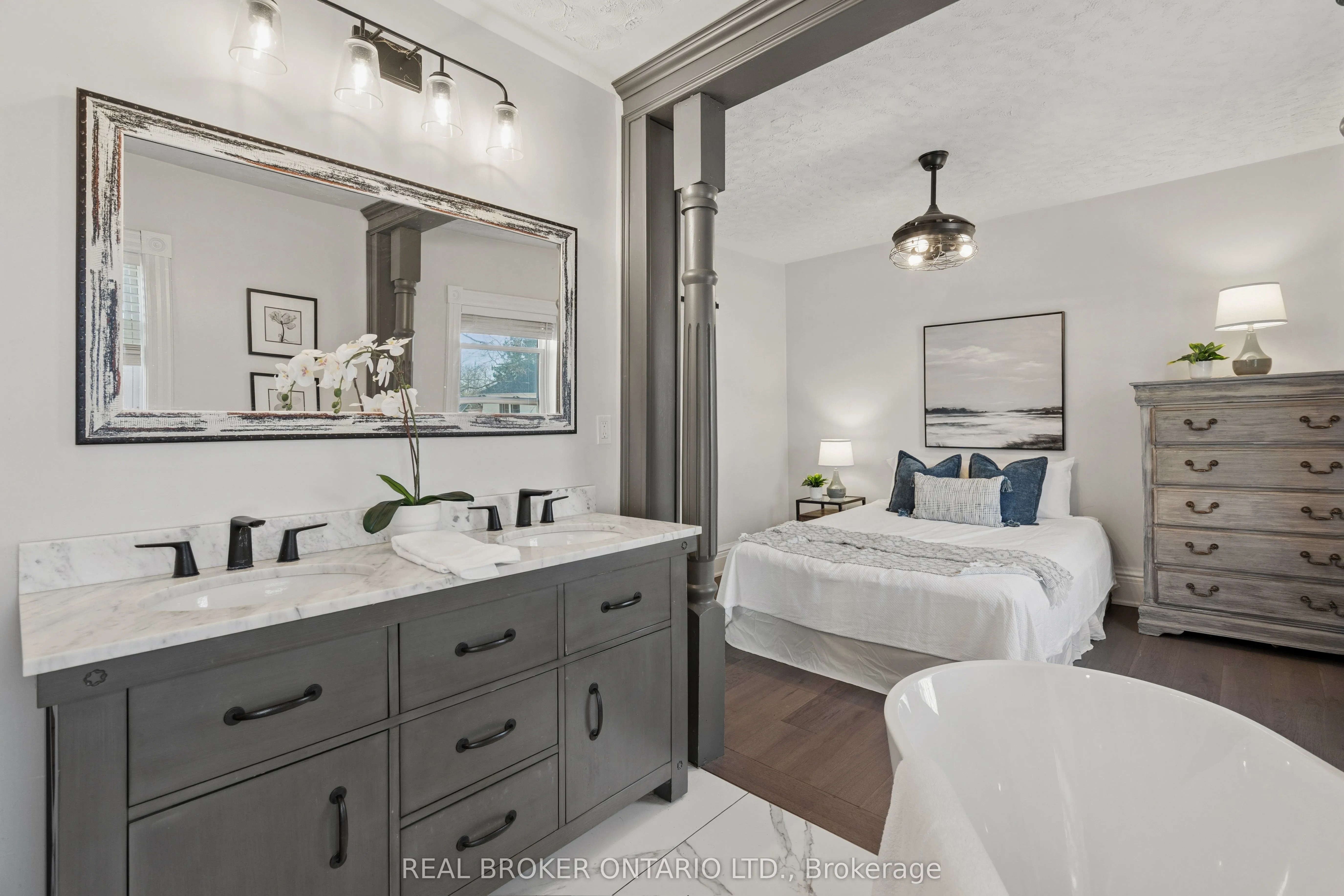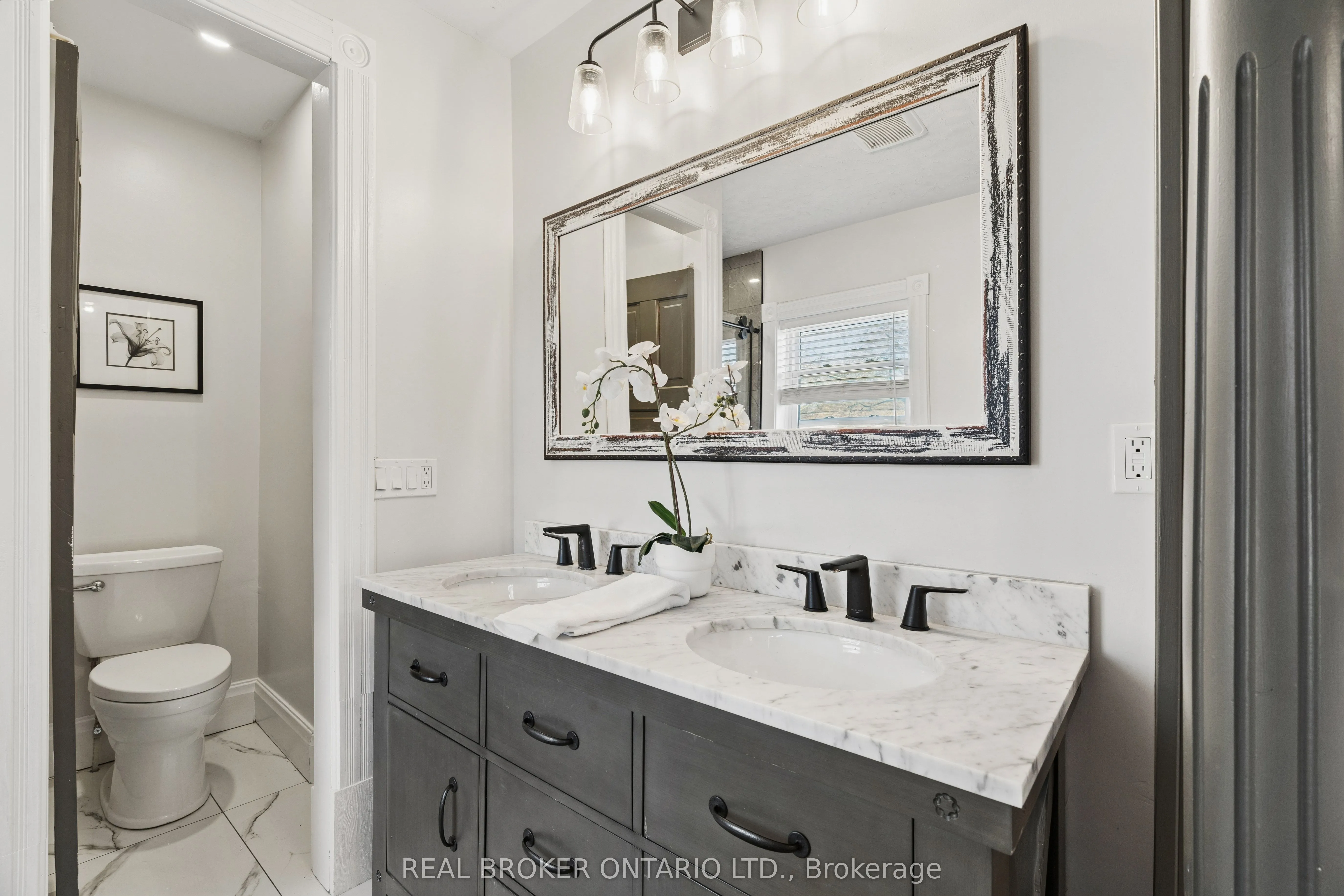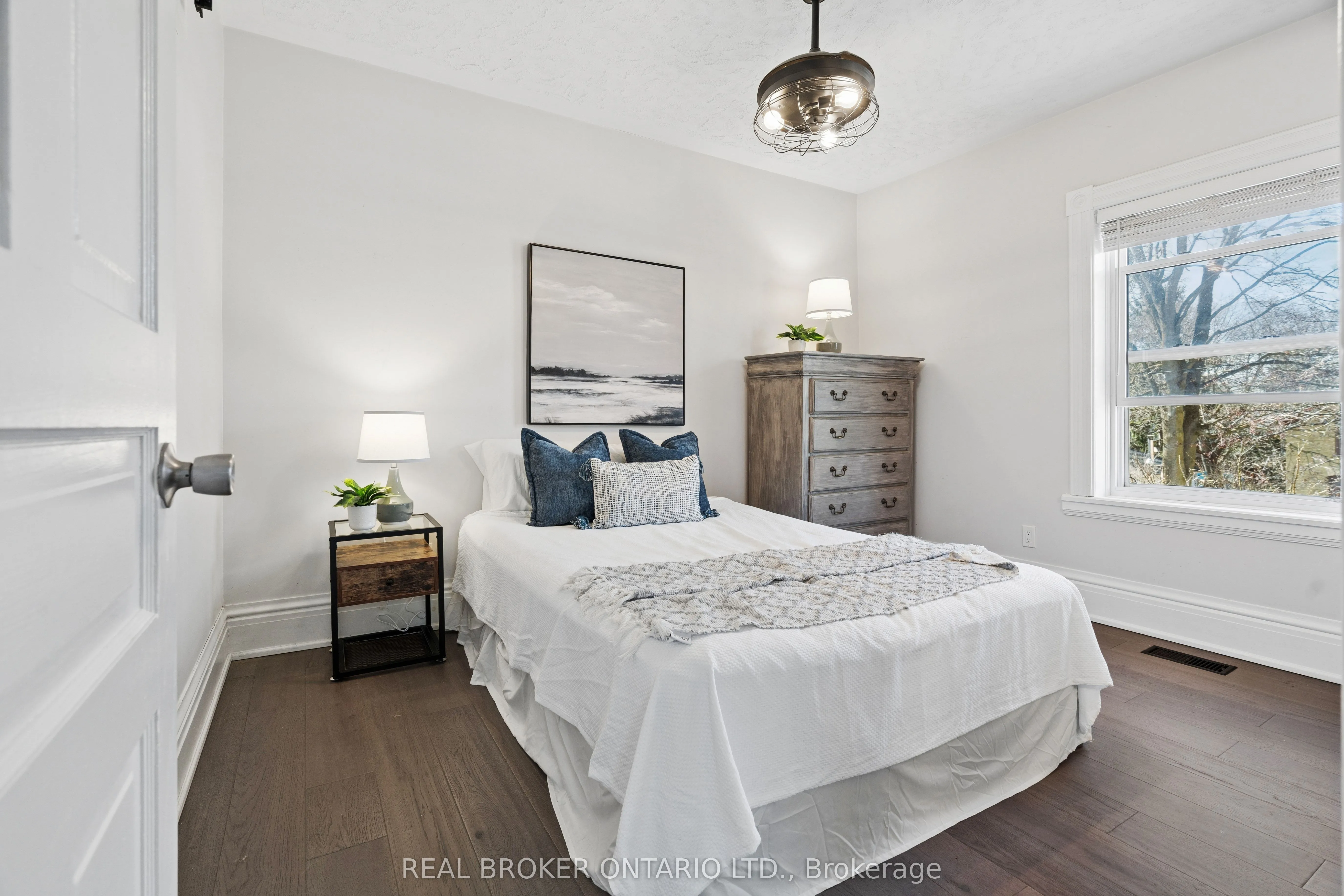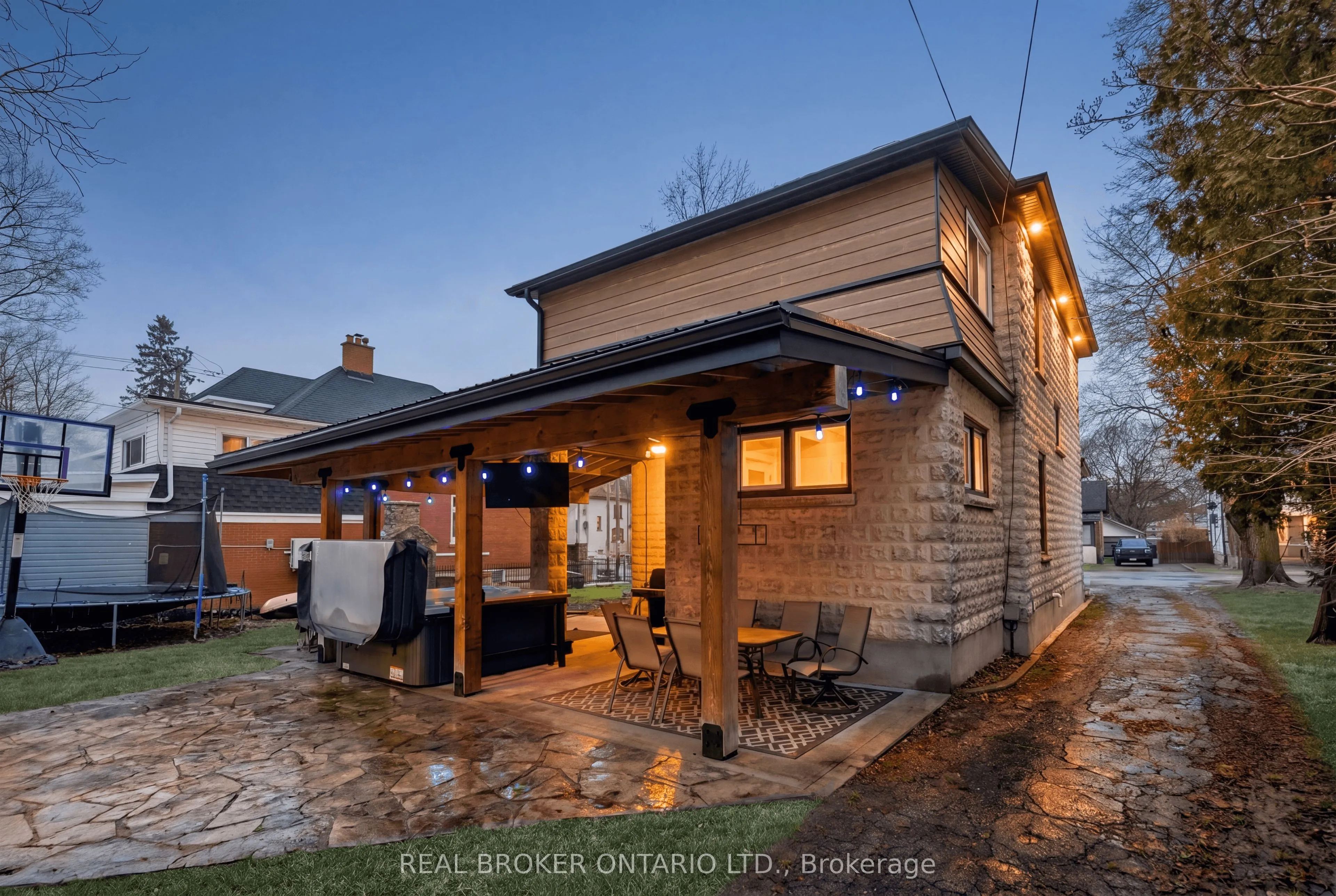Welcome to 855 Hamilton Street in Cambridge’s historic Preston neighbourhood, where timeless character meets modern family living. This beautifully updated 1,300 sq ft detached century home sits on a generous 55 x 110 ft lot, offering the perfect balance of charm, comfort, and space for everyday living and entertaining. The main floor features engineered hardwood flooring, pot lights, and a warm, inviting living room centered around a cozy wood-burning fireplace. The renovated open-concept kitchen is the heart of the home, showcasing a massive quartz island with built-in gas range and statement hood vent, stainless steel appliances, pendant lighting, and plenty of space for family gatherings. The dining area flows seamlessly from the kitchen, creating an ideal layout for hosting and everyday meals. A 2-piece bathroom and walkout to the backyard complete the main level. Upstairs you’ll find three bedrooms with engineered hardwood throughout. The spacious primary suite features a walk-in closet and an open-concept 5-piece ensuite, while the additional bedrooms share a 5-piece semi-ensuite, providing convenience for family living. The backyard is designed for relaxing and entertaining, featuring a covered patio with electricity, hot tub, and built-in stone fireplace, creating the perfect setting for evenings with family and friends. A rare highlight is the detached three-car garage, currently set up with one bay as a games room or gym, along with parking for three vehicles in the driveway. Major updates completed between 2018-2019 include new wiring, plumbing, kitchen, bathrooms, and flooring, providing modern comfort while maintaining the charm of this beautiful century home. Located close to parks, schools, and amenities in the desirable Preston community, this home offers a fantastic opportunity for families looking for character, space, and thoughtful updates.
