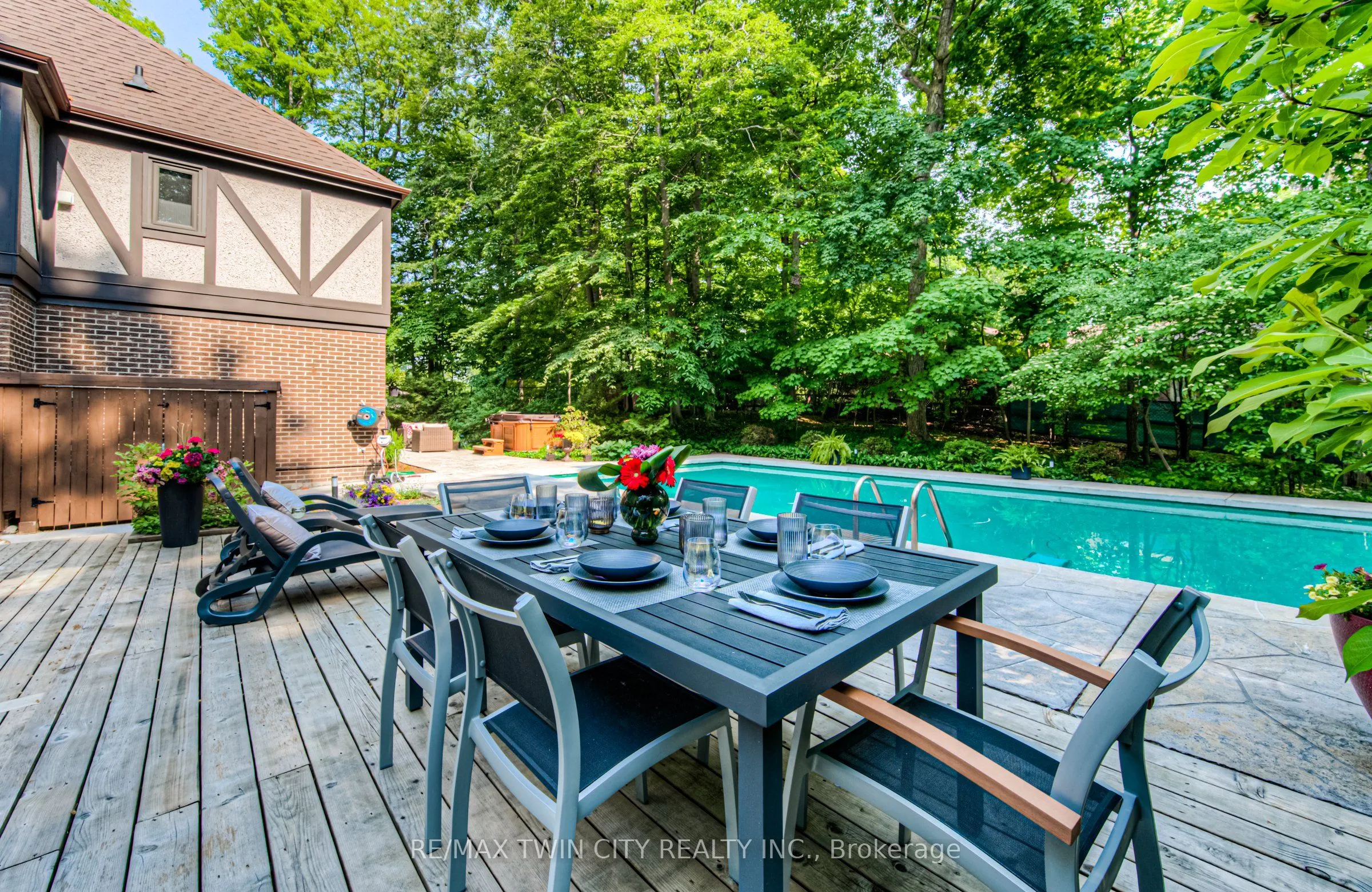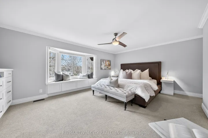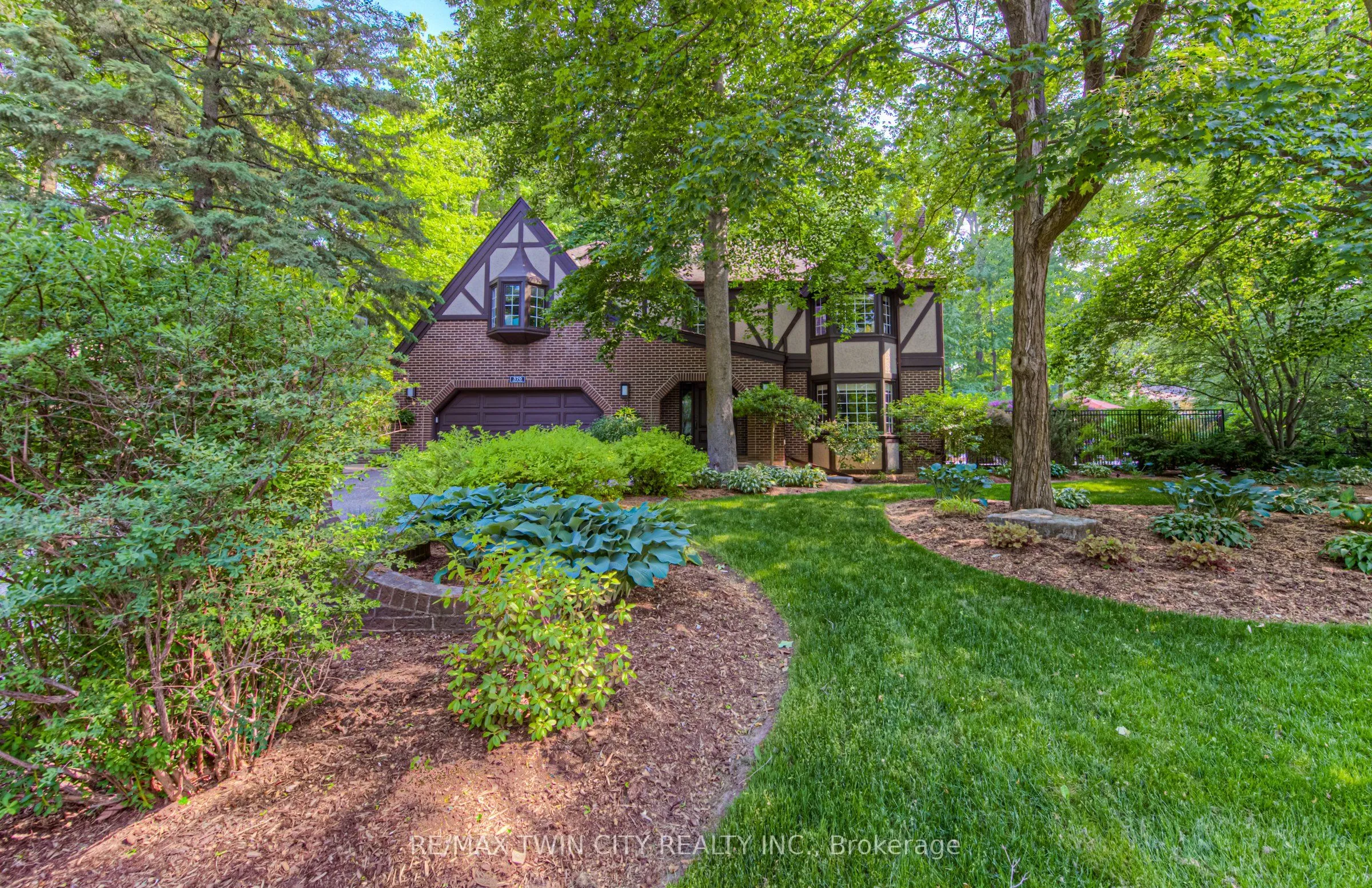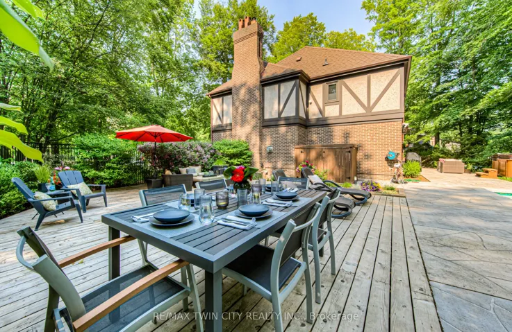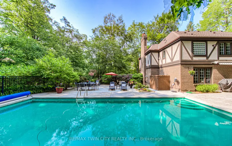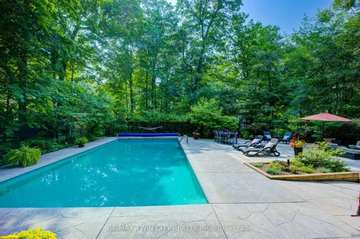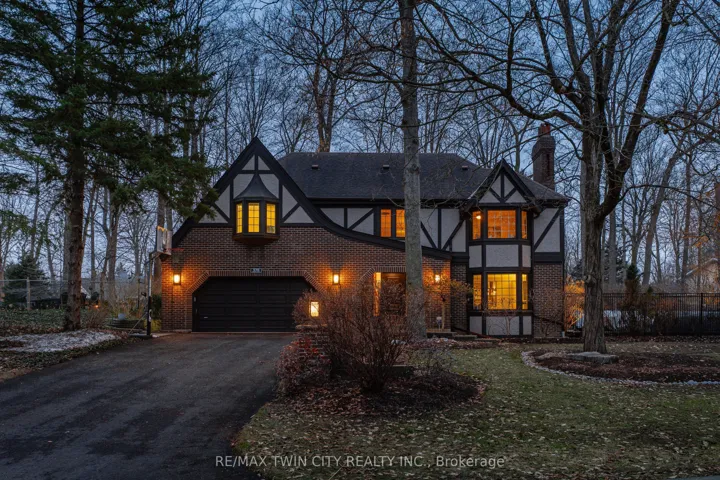 This is the home you have been waiting for. A rare & iconic offering in Old Colonial Acres, one of Waterloo’s most prestigious & established neighbourhoods. Set on an expansive, mature, tree-lined lot of approx. acre, this timeless Tudor-style home offers 4,300+ SF of beautifully finished living space with 5 bedrms, 4 bathrms, extensive updates, exceptional privacy, & a backyard that feels like a private resort. Tucked away on a quiet court & surrounded by mature trees, this home offers a level of tranquility rarely found-true cottage-style living in the city, just mins to universities, major employers, & everyday amenities. Designed for both entertaining & everyday living, the bright & spacious layout features a grand 2-storey foyer, impressive great rm with gas FP & bay window, & a formal dining rm. The updated Country Lane kitchen is the heart of the home, complete with heated slate flrs, premium appliances, & oversized island with seating for 6, with direct backyard access for seamless indoor-outdoor living. A functional mudrm with built-ins, garage access, & a well-placed powder rm with backyard entry add convenience. The upper level offers 5 generous bedrms, highlighted by a hotel-inspired primary retreat, with custom feature wall with electric FP, sitting area, walk-in dressing rm with built-ins & laundry area, & a beautifully updated spa-like ensuite with double floating vanities & oversized glass walk-in shower. 4 additional bedrms (3 with balcony access), an updated 5-pc main bath, & 361 SF attic complete the upper level. The finished lower level adds valuable additional living space complete with a rec rm with gas FP, exercise area, games rm, & 2-pc bathrm. Outdoors, the private backyard features an inground pool, expansive patio, covered seating area, & multiple outdoor living spaces-creating a true oasis. This home blends privacy, timeless architecture, & a resort-like lifestyle just mins to universities, Conestoga Mall, parks, trails, & major routes.