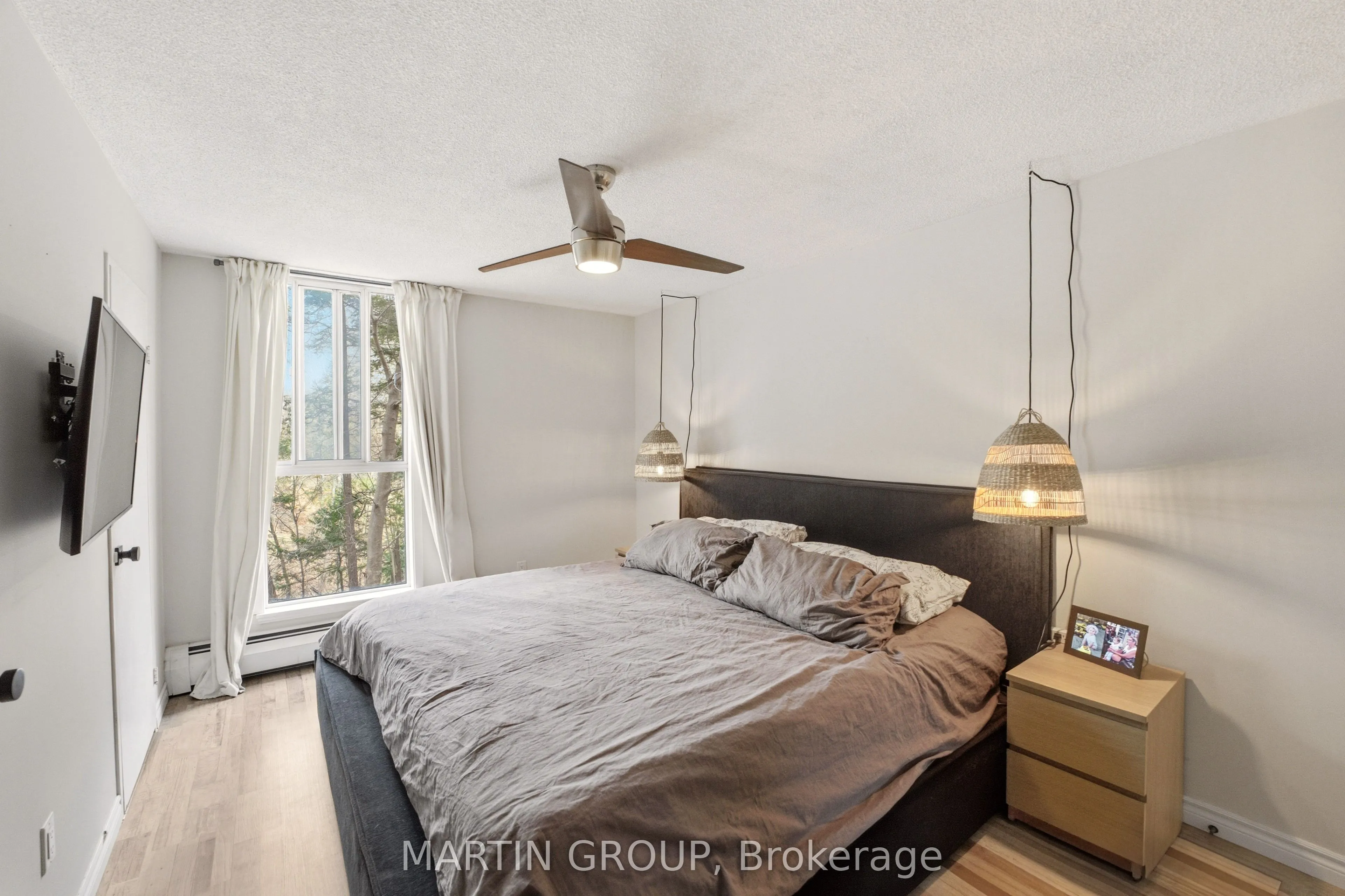 Experience the perfect harmony of urban convenience and serene natural beauty in this meticulously renovated West Hamilton gem. As soon as you open the door, you will be mesmerized by breathtaking, unobstructed ravine views of the protected conservation area, allowing you to appreciate the local wildlife and changing seasons right from your living room or private balcony. This move-in-ready home underwent extensive upgrades in 2020, featuring modern kitchen countertops, a stylish backsplash, and premium stainless steel appliances. The entire space is tied together with contemporary laminate flooring, updated trim, and a fresh, neutral palette. Both bathrooms have been completely transformed with easy-care ceramic tiling, offering a spa-like retreat. With oversized windows in every room, the home is flooded with natural light and offers peaceful ravine views from each bedroom. Practicality meets luxury with ample in-unit storage and a custom utility closet. Residents enjoy elite building amenities, including a heated indoor salt water pool, a fully equipped gym with sauna, guest suite, party room and craft room. Located just minutes from the charming hubs of Westdale, Ancaster, and Dundas, and within walking distance to Mc Master University, this property offers a turnkey lifestyle for first-time buyers, young professionals, or those looking to downsize without compromise. *Dining room photos virtually staged.