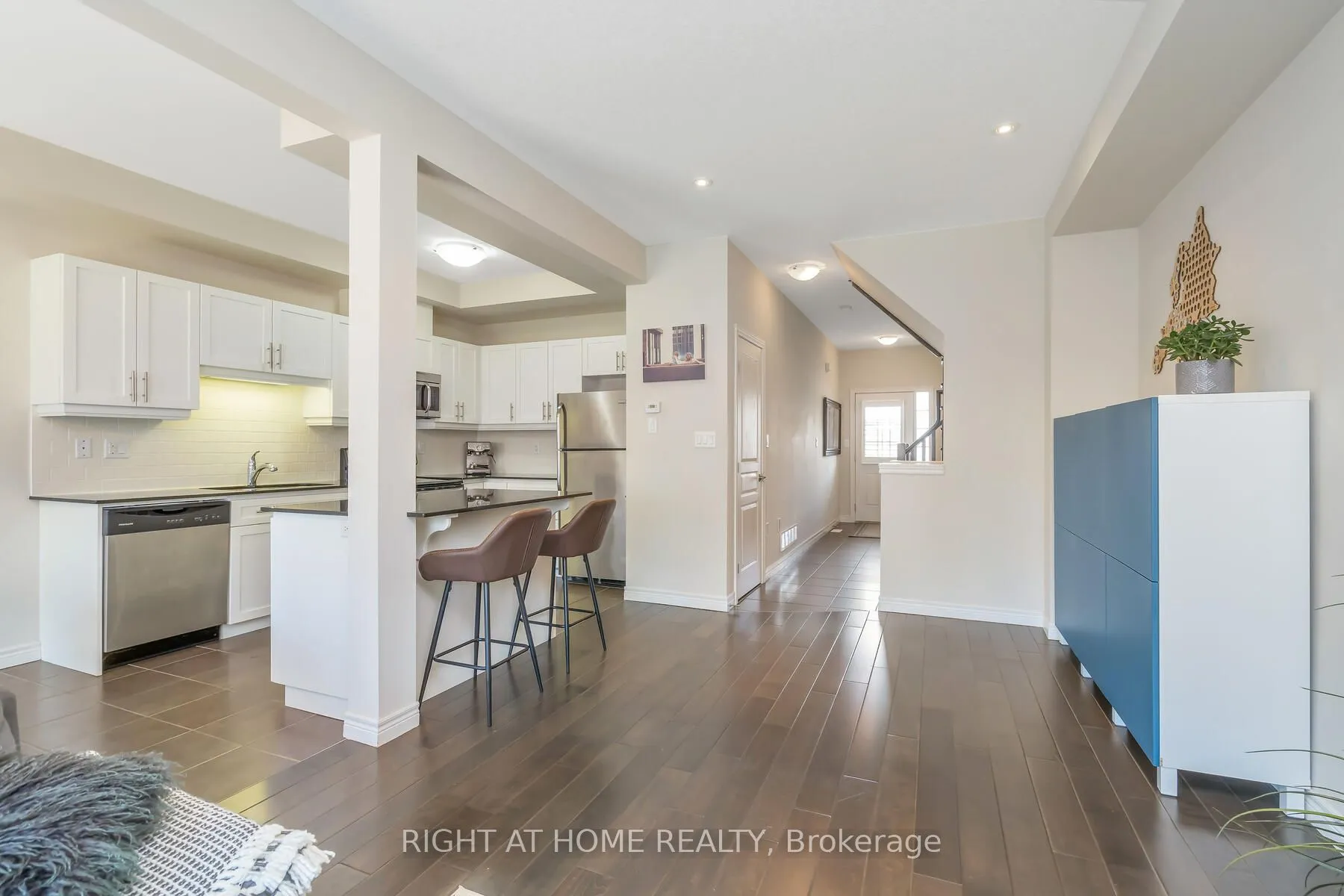 Arguably the best deal in Binbrook! Fully renovated freehold property on a quiet street. This 3 bed townhome offers an open concept main floor with 9″ ceilings, California shutters, pot lights. Main floor featuring ceramic tile & rich hardwood floors through the living room & eat-in kitchen. Modern white kitchen cabinets, 4 stainless steel appliances & granite counters. Large kitchen island includes a breakfast bar overlooking the living room & loads of storage. The upper level offers new laminate flooring throughout with a spacious master bedroom with walk-in closet, a 4-pc ensuite bath with separate shower. Two other good size bedrooms. Another 4-pc bath & laundry. The untouched basement is ready to be finished and includes a rough-in for a 3-pc bath. Fully fenced backyard is ready for your personalized landscaping. The growing community of Binbrook offers a relaxed lifestyle with easy access to parks, conservation & recreational facilities, as well as providing all the conveniences & amenities such as grocery, restaurants & more. Note some photos are computer-modified. No Road Fees.