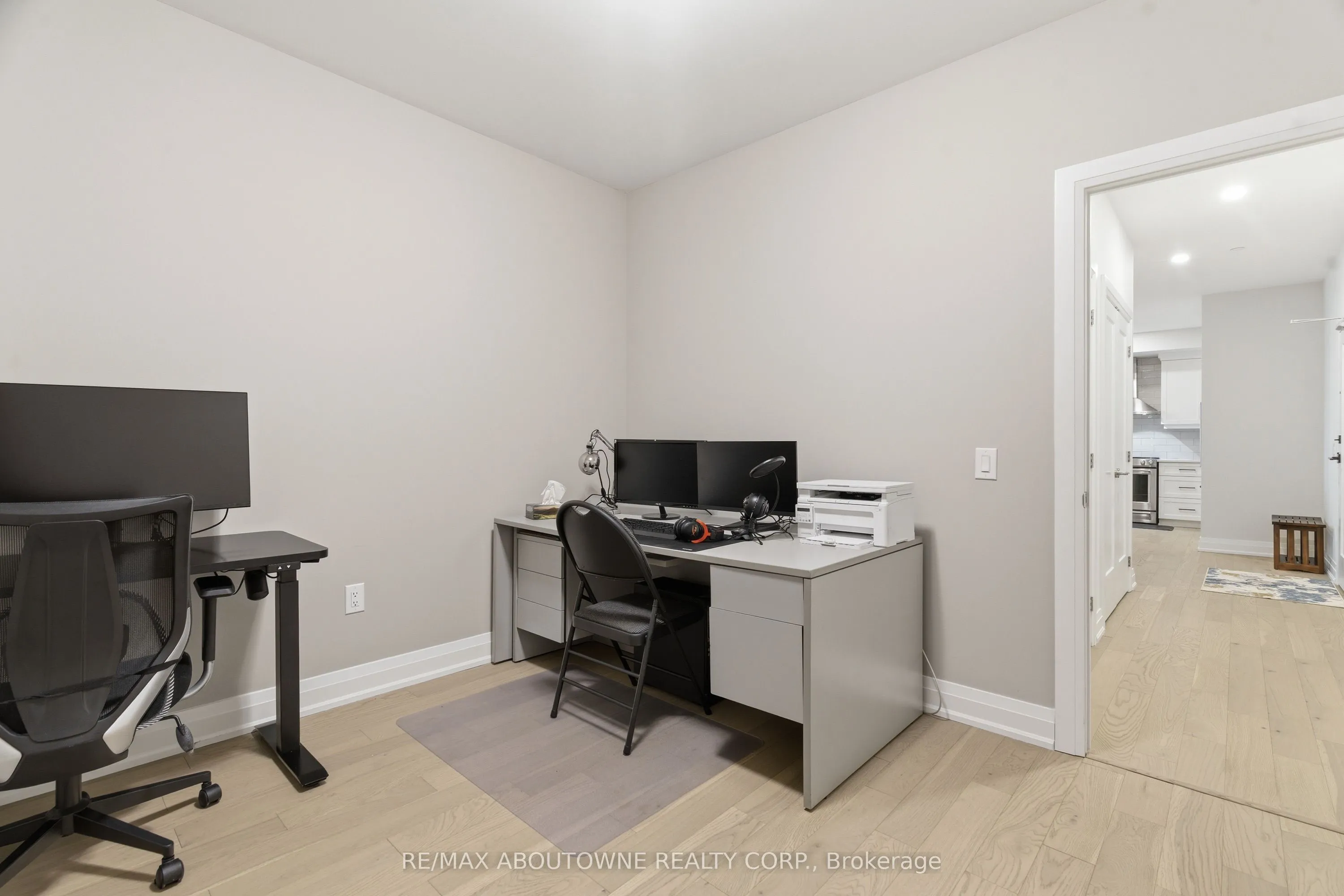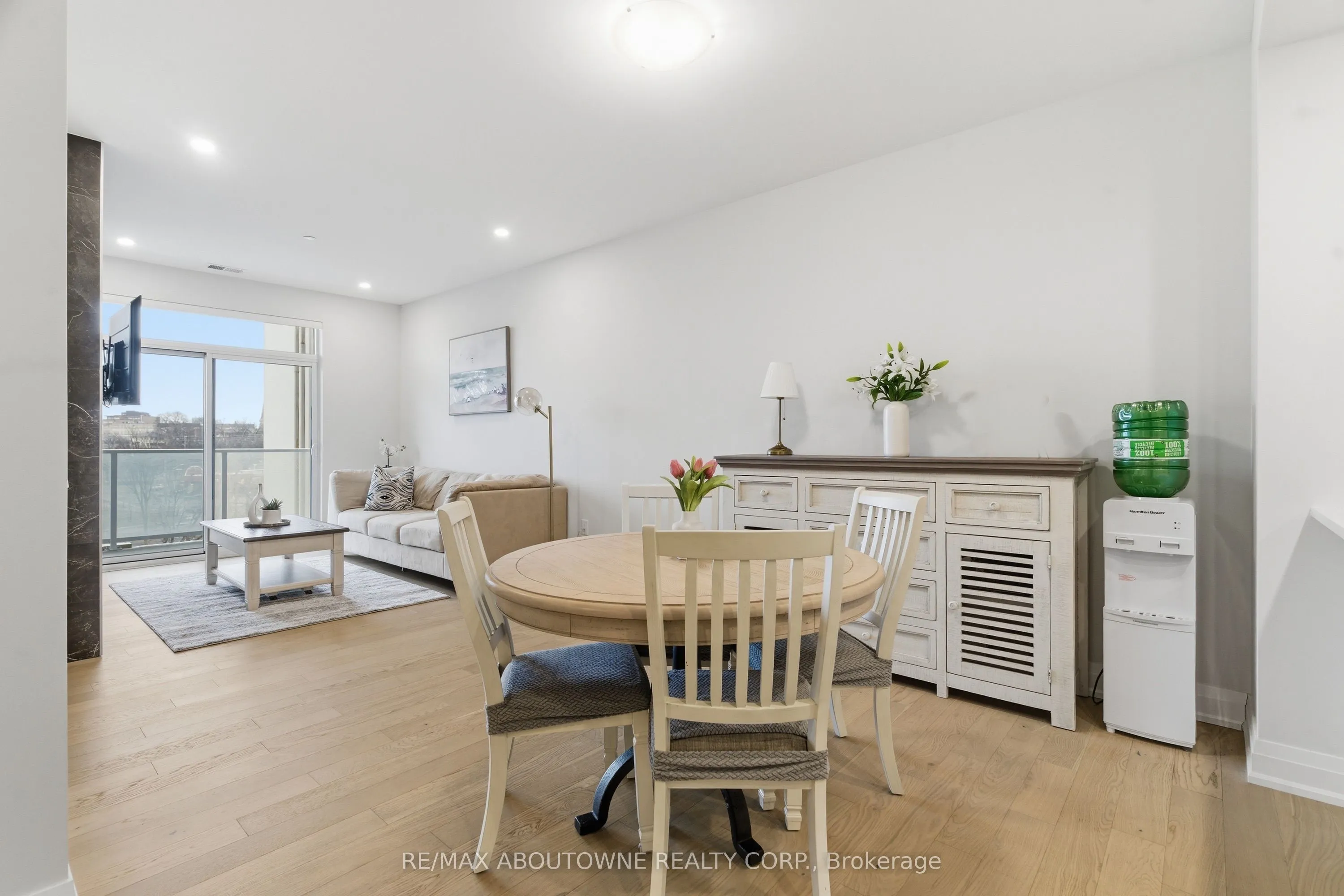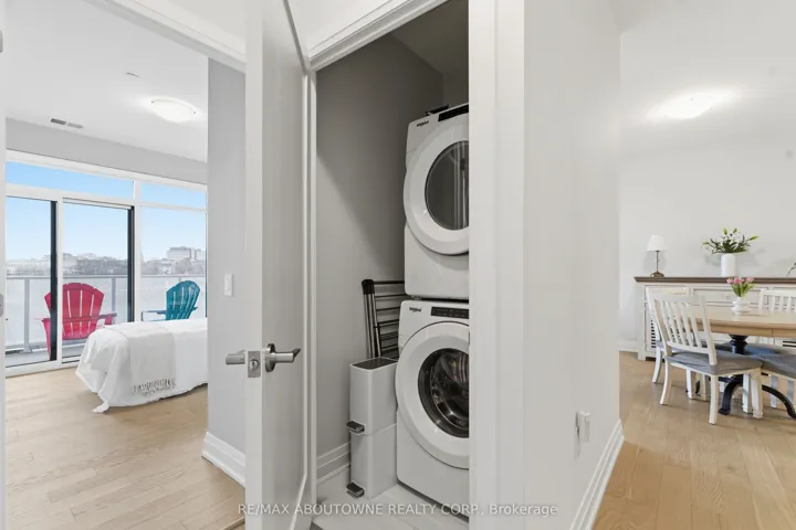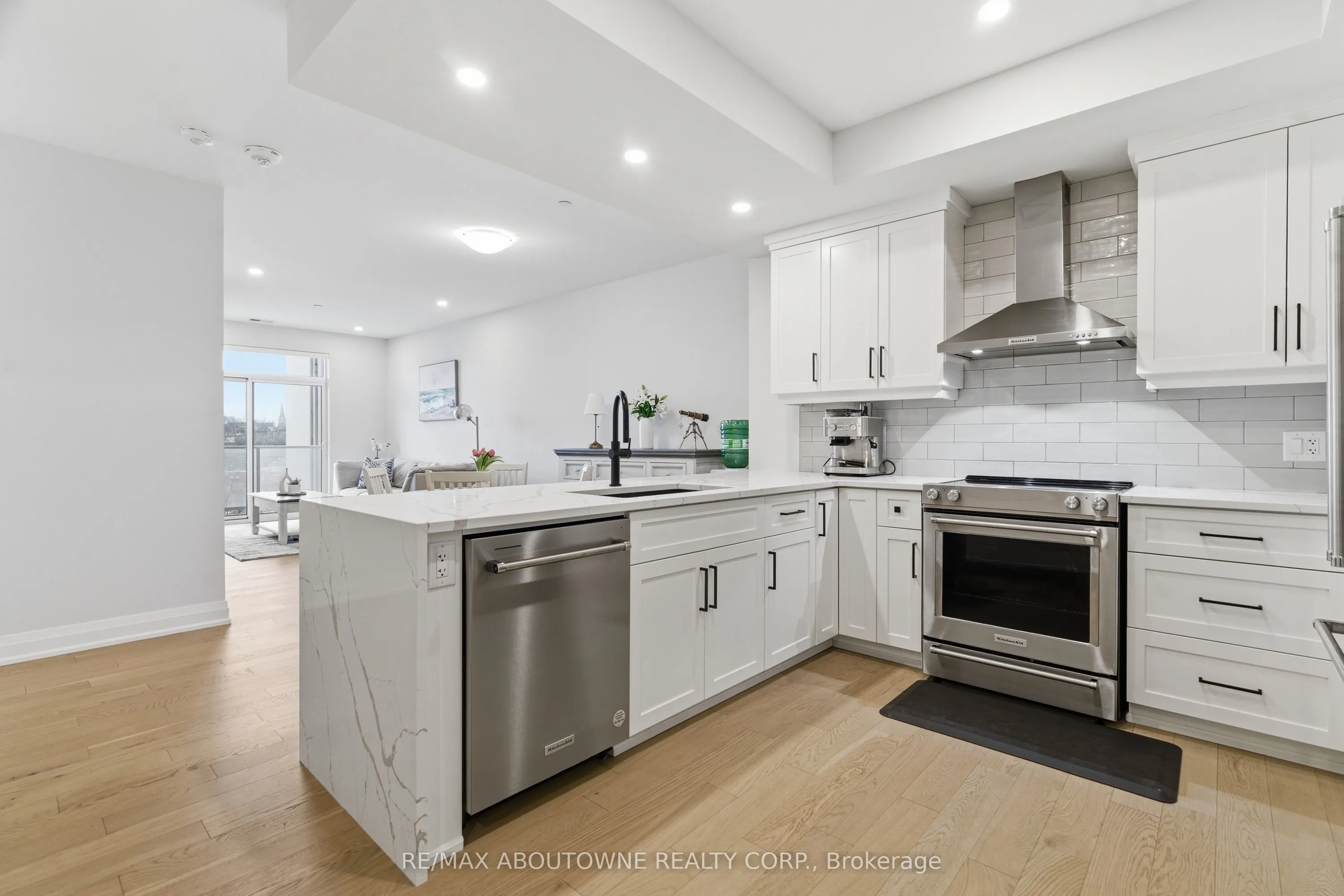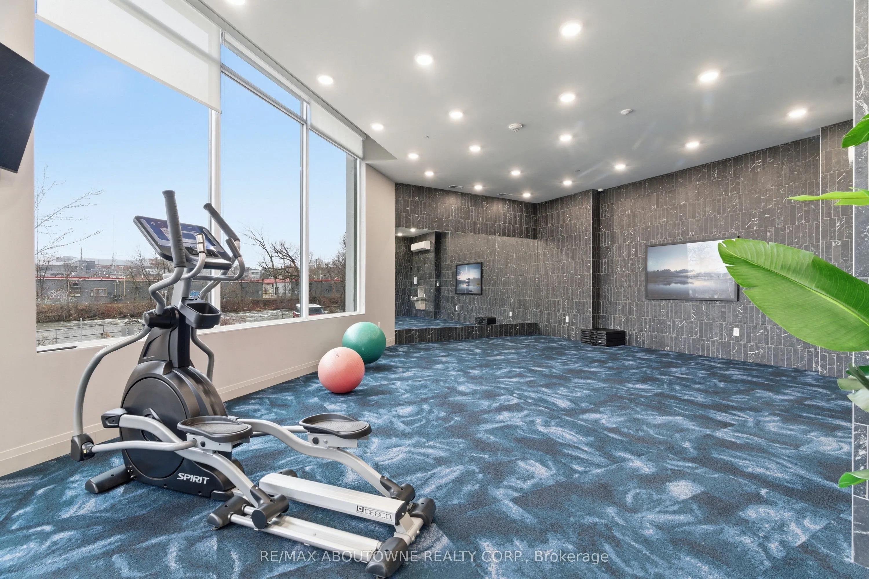 Welcome to Unit 506 at 71 Wyndham Street South – where refined living meets the vibrant heart of downtown Guelph. This exceptional 2-bedroom + den, two full bathroom suite with 9-ft ceilings offers 1,255 sq ft of thoughtfully designed living space, complemented by a full-length 170 sq ft balcony with stunning views of the Speed River and downtown skyline. Includes one underground parking space and one same-floor storage locker for added convenience. The L-shaped kitchen is both stylish and functional, featuring waterfall edge island, quartz countertops, abundant cabinetry, and contemporary finishes, seamlessly flowing into the main living space. A standout feature is the private den, tucked away from the main living area, offering the perfect work-from-home setup. The open-concept living and dining area is anchored by a floor-to-ceiling tiled fireplace and enhanced by a seamless walk-out to the balcony. Expansive windows fill the space with natural light, creating a bright and inviting atmosphere. The spacious primary bedroom includes a walk-in closet and a beautifully appointed ensuite with a glass-enclosed shower and double vanity. A second generously sized bedroom, a 4-piece full bathroom, and in-suite laundry complete the well-designed layout. Residents enjoy access to first-class amenities, including a library, fitness centre, elegant social lounges, a guest suite, golf simulator, outdoor terrace with BBQs, and secure bike storage. Located just steps from downtown dining, cafés, shops, the Farmer’s Market, GO/VIA transit, and scenic riverside trails, this is a rare opportunity to experience an elevated urban lifestyle in one of Guelph’s most sought-after locations.