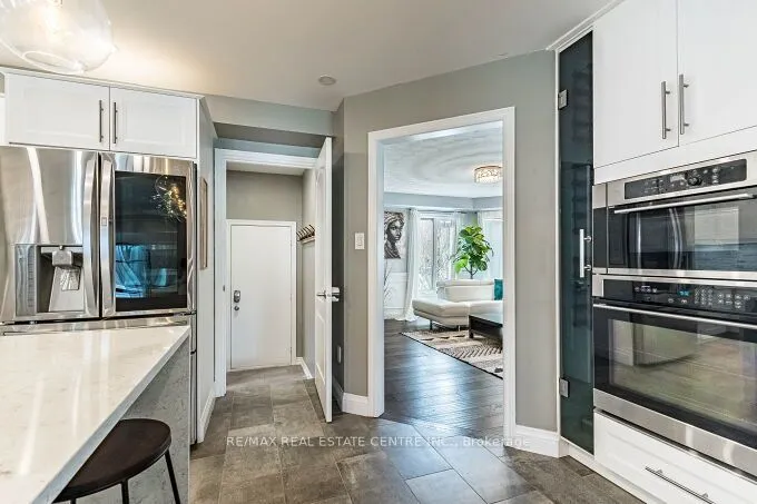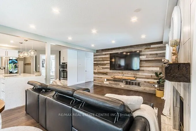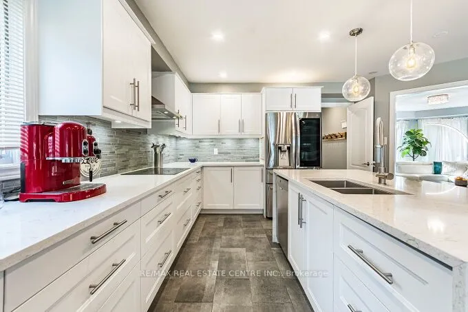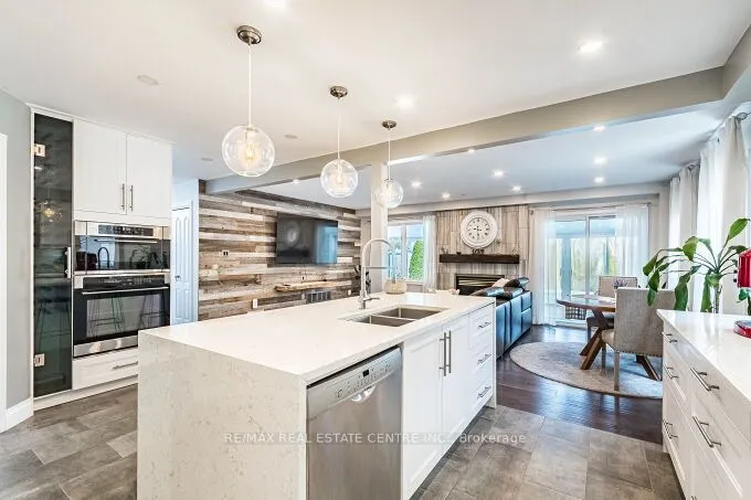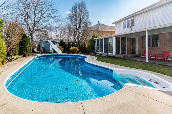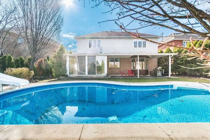 Stunning 3 bedrooms exec. double garage detached house 2566 sq. ft. (converted from 4 bedroom plan) on a premium 131′ deep pie-shaped lot that is 61′ wide across back of the house! Main floor has a bright & airy high ceiling foyer. New upgraded staircase and new wood flooring 2nd floor and landing areas (2026), upgraded wide-plank hardwood floors, formal liv. room with bay window, spacious dining room w/coffered ceiling & wainscotting, large family room w/rustic wood feature wall, gas fireplace w/porcelain tile surround & sliding door walk-out to sun room with skylight & walk-outs to back yard. Completely renovated designer kitchen w/custom white cabinetry, quartz counters, high-end built-in S/S appliances, large island with breakfast bar, open to family room. The professionally landscaped backyard oasis with covered interlock stone patio, BBQ area, lighting & inground heated saltwater pool w/newer liner (2019), new pool heater & pool pump (2025), great for time spend w/family and friends!