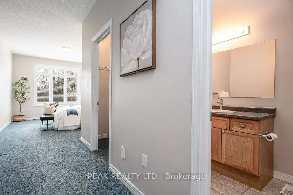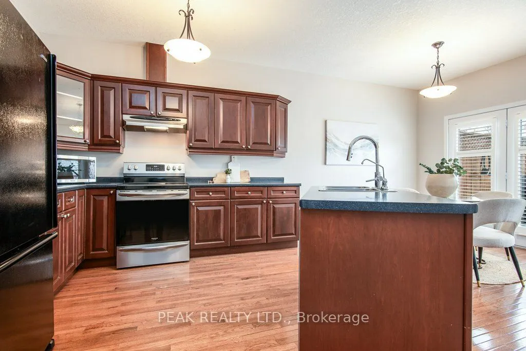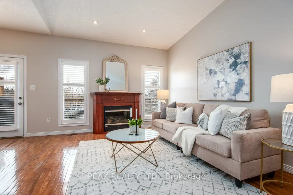 ATTENTION PROFESSIONALS & YOUNG RETIREES! Enjoy the lifestyle in this 2+1 bedroom Bungalow condo w/ double garage, backyard, 3 full baths, walkout basement, finished top to bottom! Before you even enter this bright bungalow, you’ll be greeted with the inviting front porch and updated front door, then comes the main floor featuring a front bedroom w/ access to a 4-pc bath (makes for a great guest bedroom or office). The primary bedroom suite has a huge window facing south west, updated carpet, large walk-in-closet w/ a mirrored door as well as a modern ensuite bath w/ an updated walk-in shower w/ glass doors, right next to the Primary bedroom on the main floor, there is the laundry closet, convenience at its best! The open concept Living area including the Living room, Dining room and kitchen has lots of windows overlooking the back of the house, always bathing in the afternoon sun due to the south west exposure, beautiful hardwood floors, vaulted ceilings & a gorgeous fireplace in the living room, garden doors off the dining room to the composite deck with awning, remote control operated. The open staircase next to the Living room will take you to the finished bright walkout basement, which really adds to this already spacious home. In the walkout basement, there is a large Rec room with updated sliding doors with built in blinds to a patio, a good size bedroom with a decent window and a large closet, a full 3 piece bath for your added convenience, an office/play area, in addition to a hobby room (Bonus room), a cold room, a storage room full or organizers (included with the house), right next to the utility room. This beautiful bungalow condo features California Stucco Ceilings & Custom shutters throughout. It also includes a backyard & 3 outdoor siting areas, loaded with updates, auto garage door opener, Furnace & AC (2021), Water Purification System, C/V, close to shopping, bus, parks, Hiway 401. Pride of ownership, move-in ready in a great location.