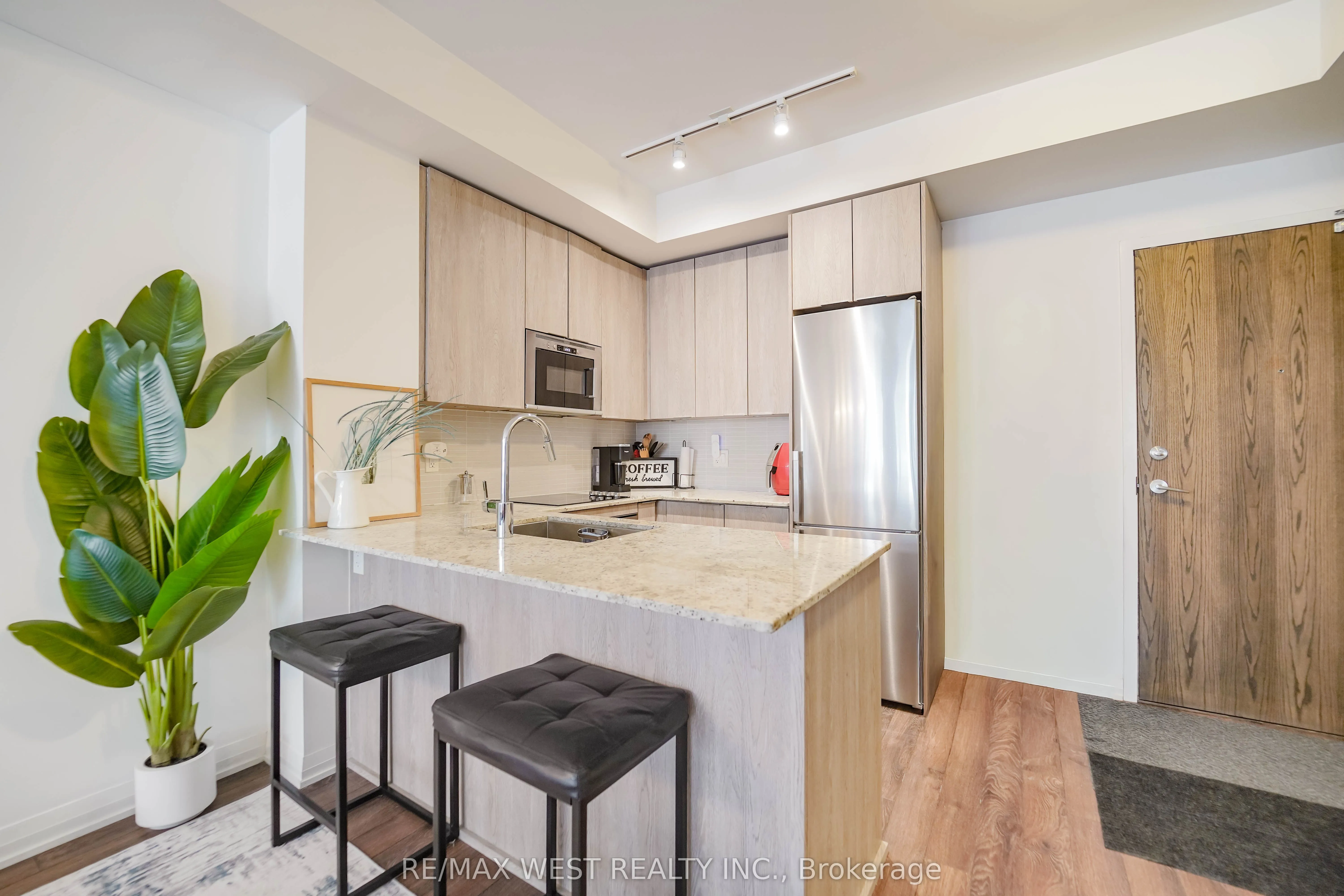 Amazing unit in the heart of Maple, steps to Maple GO Station! This bright and spacious suite features an open-concept layout with 9 ft ceilings and floor-to-ceiling windows providing abundant natural light. Modern kitchen with quartz countertops and stainless steel appliances. Combined living and dining area with walk-out to a covered balcony. Primary bedroom features large picture windows, ample storage, and space for a king-size bed. Building amenities include 24-hour concierge, fitness centre with hot tub, yoga studio, rooftop terrace with BBQs, party room, dog wash station, and visitor parking. Conveniently located near Cortellucci Vaughan Hospital and minutes to Highways 400 & 407, Vaughan Mills, restaurants, parks, and everyday amenities.