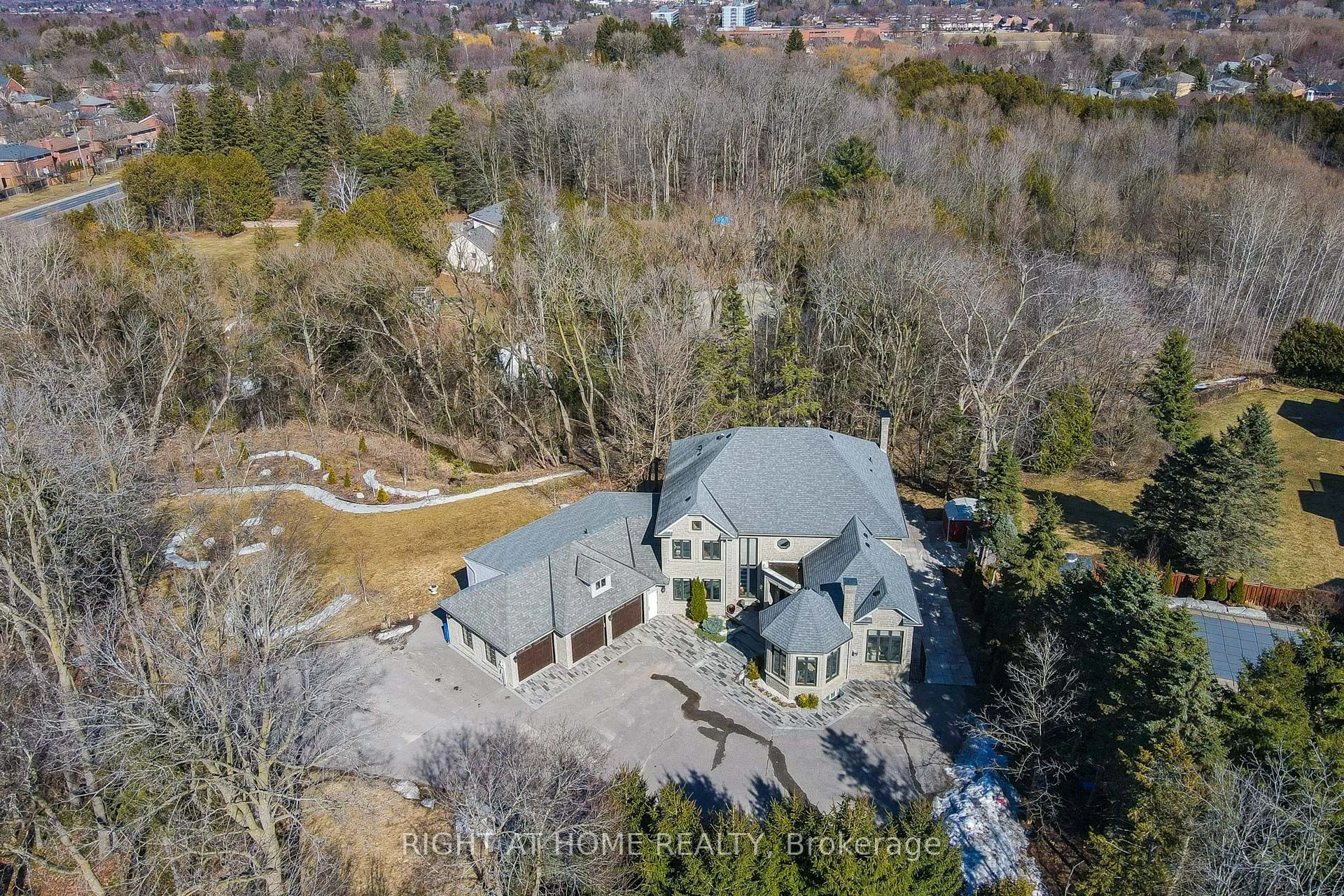 This is one of the rarest offerings in the heart of Aurora, featuring an expansive 2.31-acre lot. A gated front entrance and private driveway lead to an impressive 4,825 sq. ft. mansion. The home boasts soaring 9-20 ft. ceilings, hardwood strip flooring, and high-quality upgraded trim and baseboards throughout. Enjoy a spacious, separate living room designed for entertaining, complete with a marble-trimmed fireplace and a beautiful conservatory. The property also features upgraded light fixtures, built-in speakers, renovated washrooms, laundry chute from the second floor tolaundry room and many more upgrades throughout. A formal dining room with double French doors provides an elegant setting for gatherings. The upgraded kitchen showcases a massive ceramic centre island, granite countertops, luxury appliances, and a bright solarium-style breakfast area with a walkout to an oversized deck overlooking a scenic ravine. The backyard offers a private retreat, perfect for family gatherings or camping, with a dedicated space and a private walk-down staircase for easy access. **Also has electric vehicle panel(only) for electric car charger (not included). **Legal basement APT(661B).**