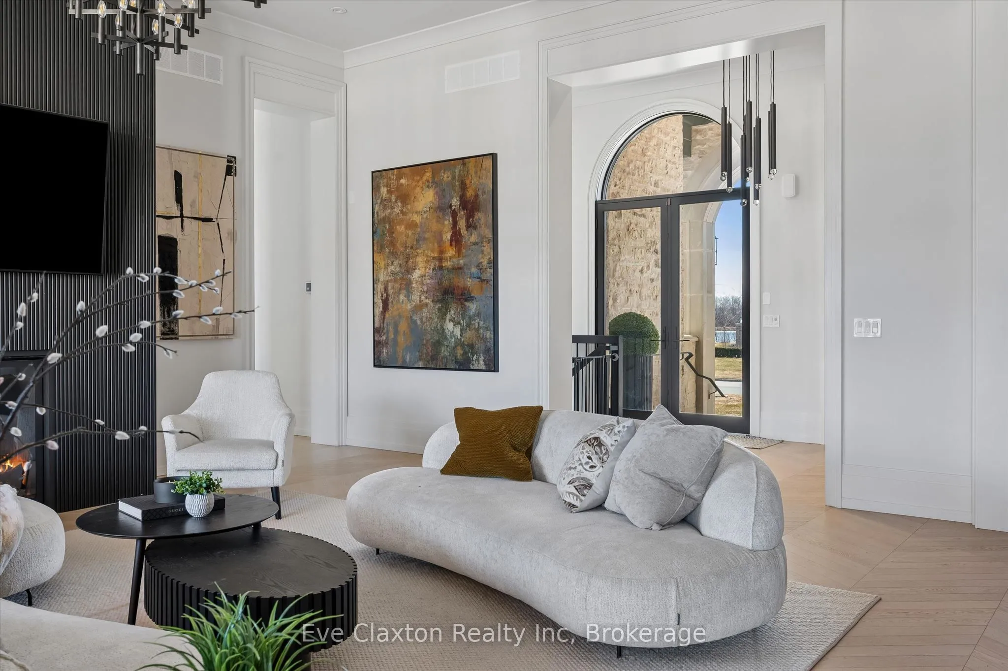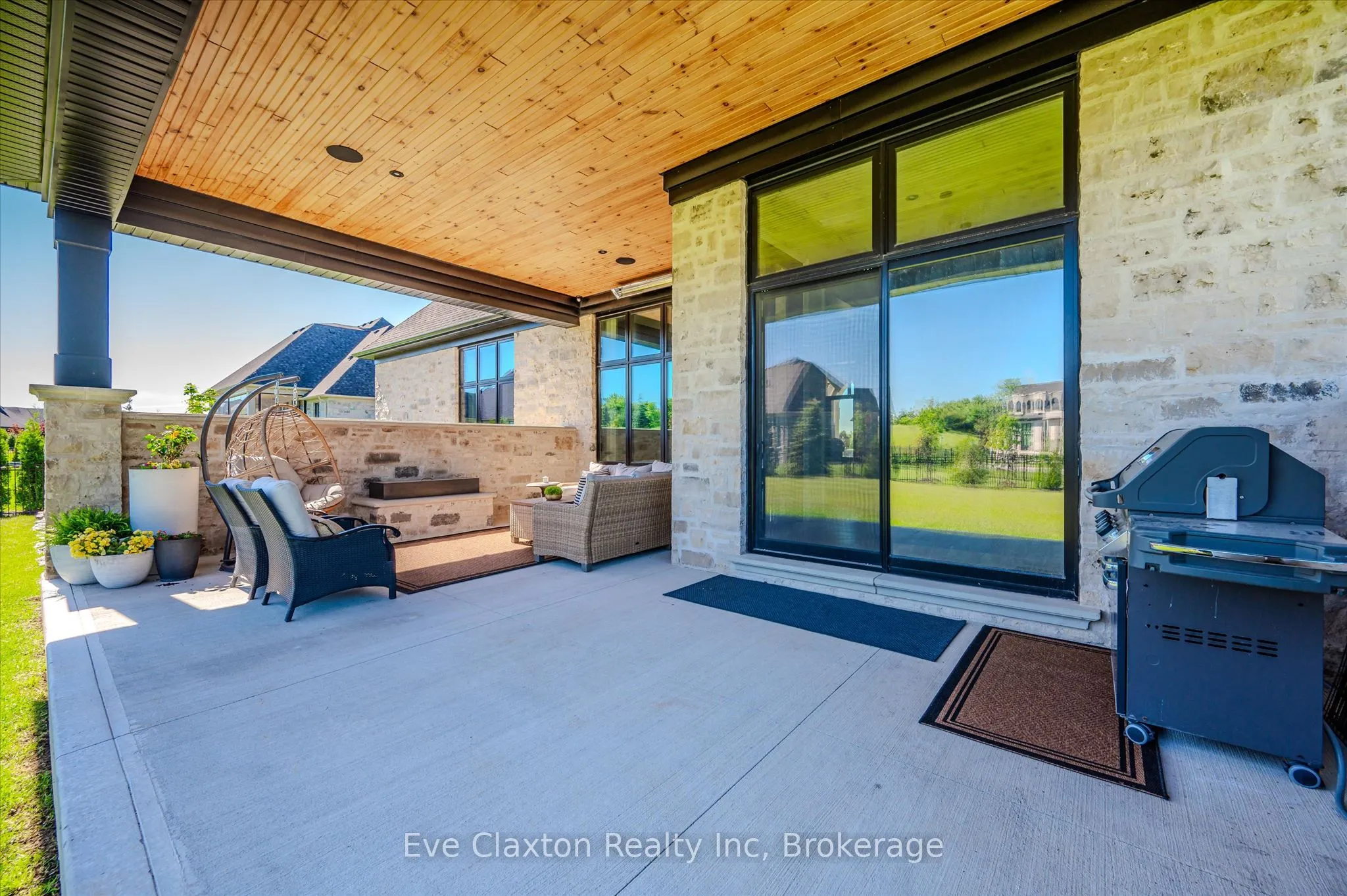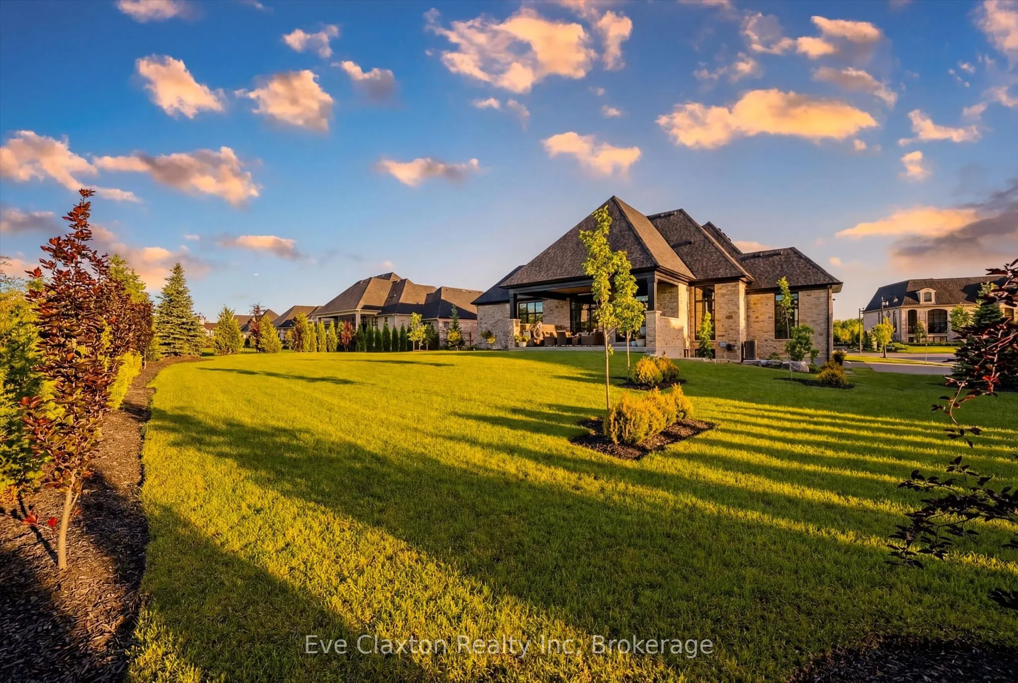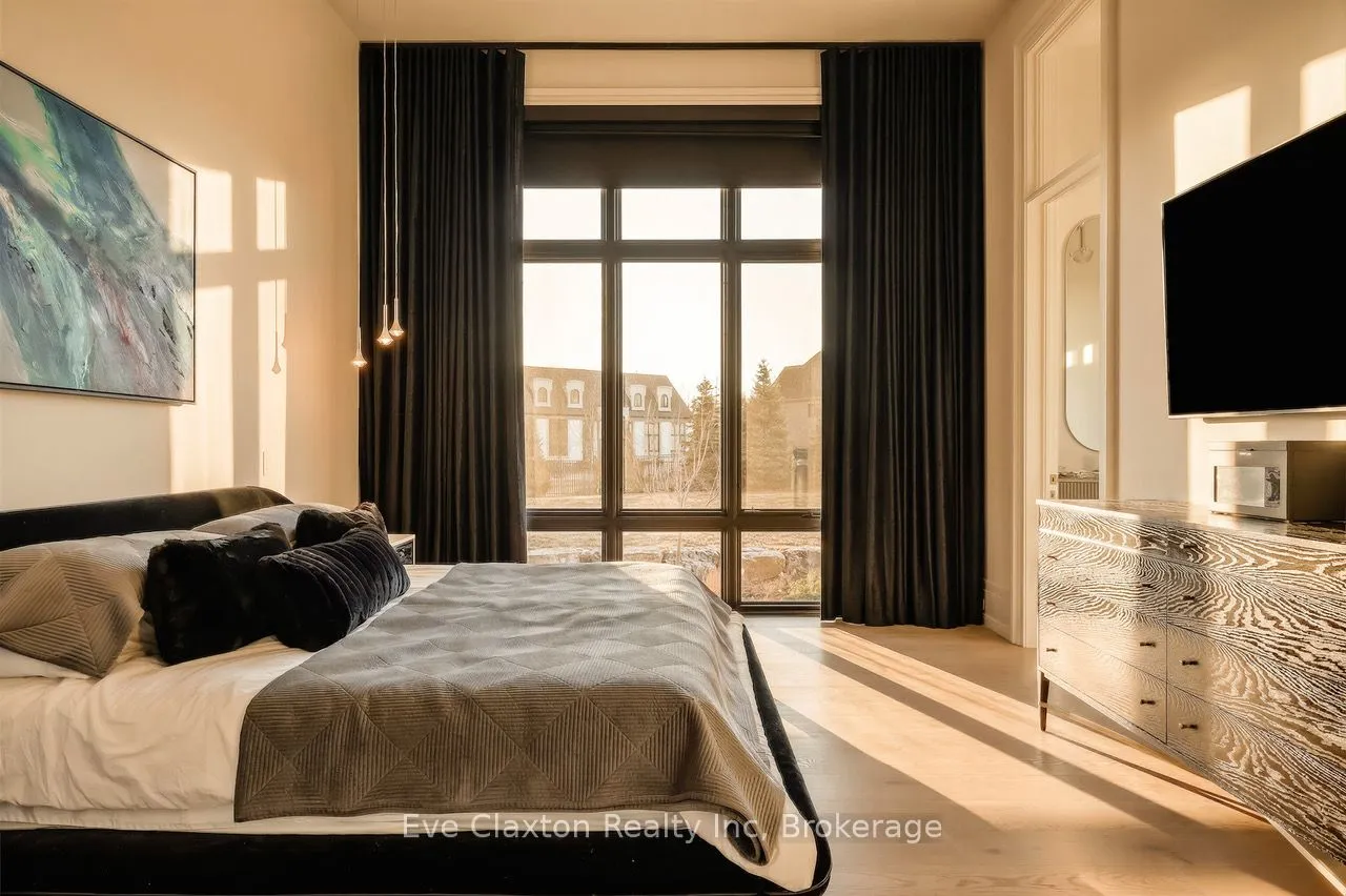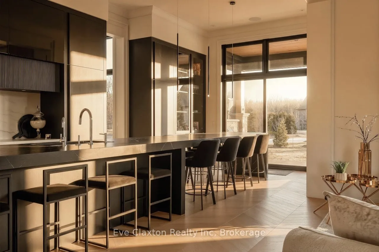Set within the exclusive gated community of Heritage Lake Estates, this extraordinary custom-built natural stone bungalow offers refined luxury on a private half-acre lot just steps from the lake. Perfectly positioned only minutes from Highway 401 and close to schools and amenities, this home delivers both privacy and exceptional convenience.From the moment you enter, the home impresses with 12-foot ceilings, striking chevron hardwood flooring, dramatic custom lighting, and a stunning fireplace feature wall. Expansive floor-to-ceiling windows flood the home with natural light, creating an atmosphere that is both sophisticated and welcoming. With over 4,200 square feet of impeccably designed living space, the home offers 4 spacious bedrooms and 5 luxurious bathrooms, along with heated floors and premium finishes throughout.At the heart of the home is a show-stopping chef’s kitchen designed for grand entertaining, featuring built-in appliances, a walk-in pantry, and an impressive 20-foot granite island with seating for up to 15 guests.The private primary retreat offers a serene escape with a spa-inspired luxury ensuite and a custom walk-in closet with built-in cabinetry.The fully finished lower level continues the home’s exceptional design with nearly 10-foot ceilings, oversized windows, radiant heated hardwood floors, and a cozy gas fireplace, creating the perfect space for entertaining, relaxing, or hosting guests.Outdoors, enjoy the beautifully landscaped grounds, complete with irrigation, an oversized covered patio for year-round outdoor living, and an expansive three-car garage with additional driveway parking for 6-8 vehicles.Net-zero ready and fully smart-wired with fibre optics and natural gas, this forward-thinking home blends timeless craftsmanship with modern technology.A rare offering where architectural elegance, thoughtful design, and premium craftsmanship come together to create a truly exceptional home.
