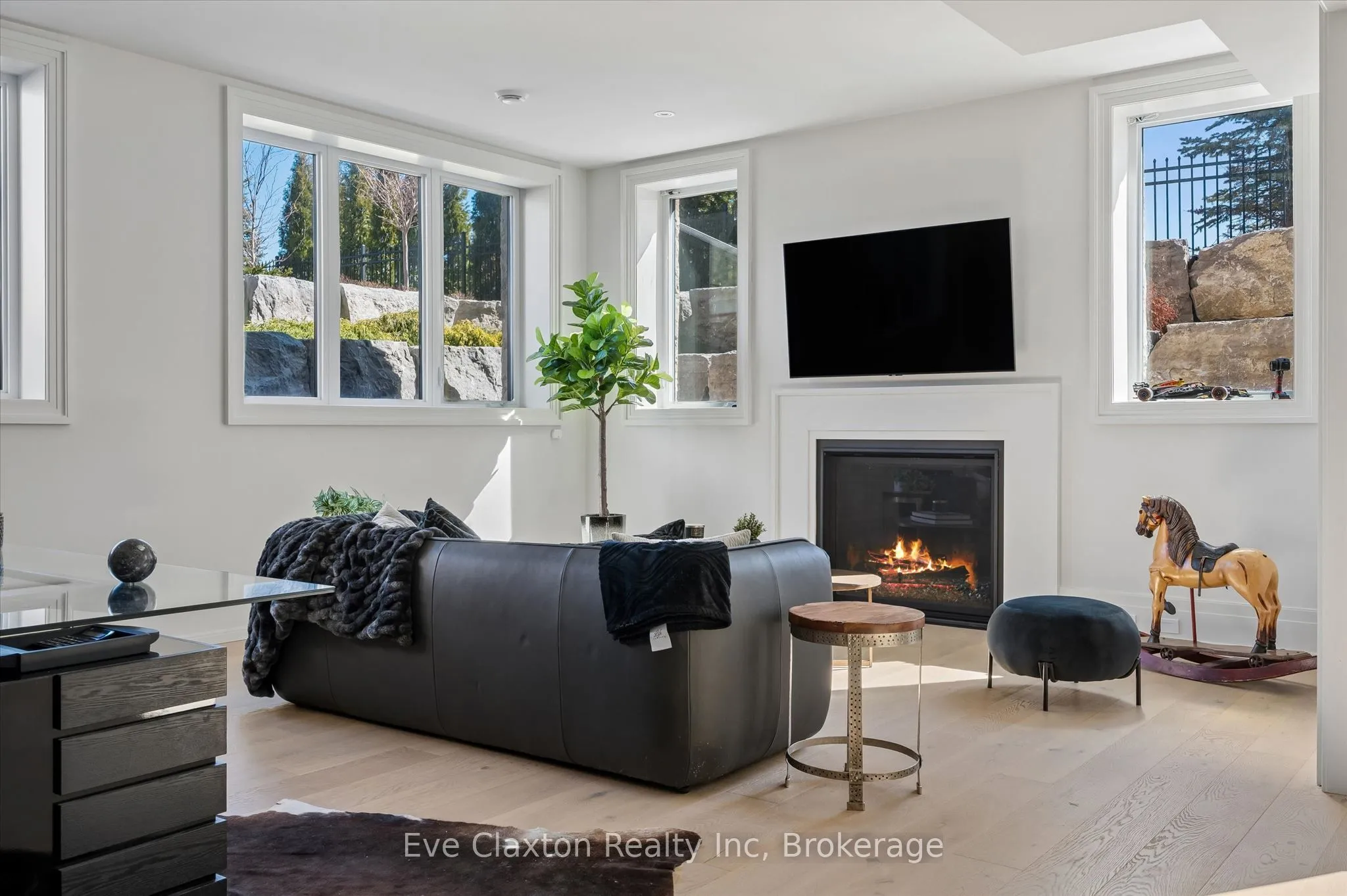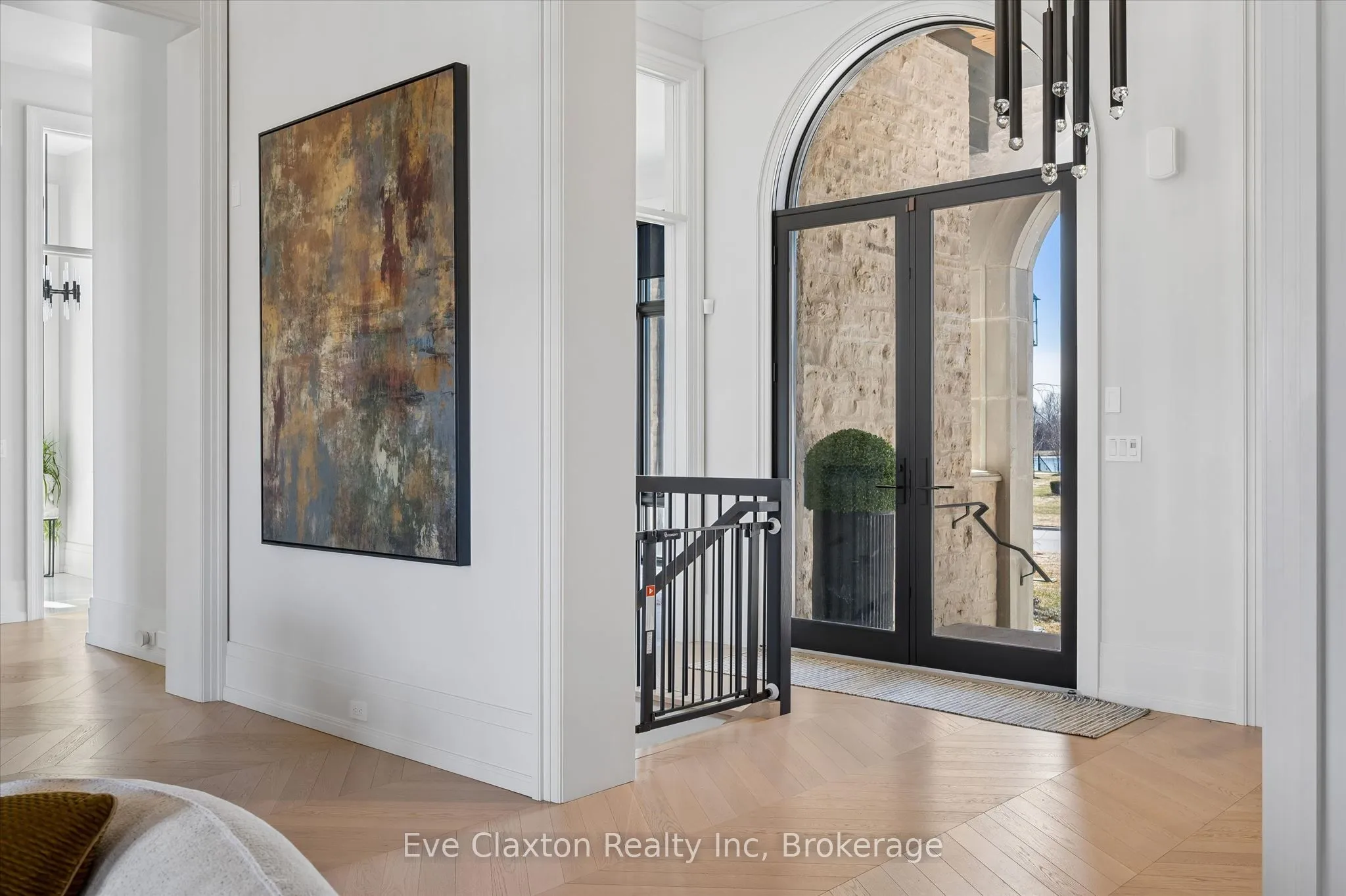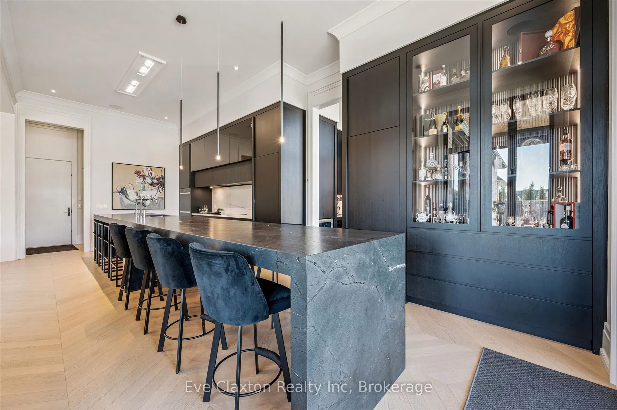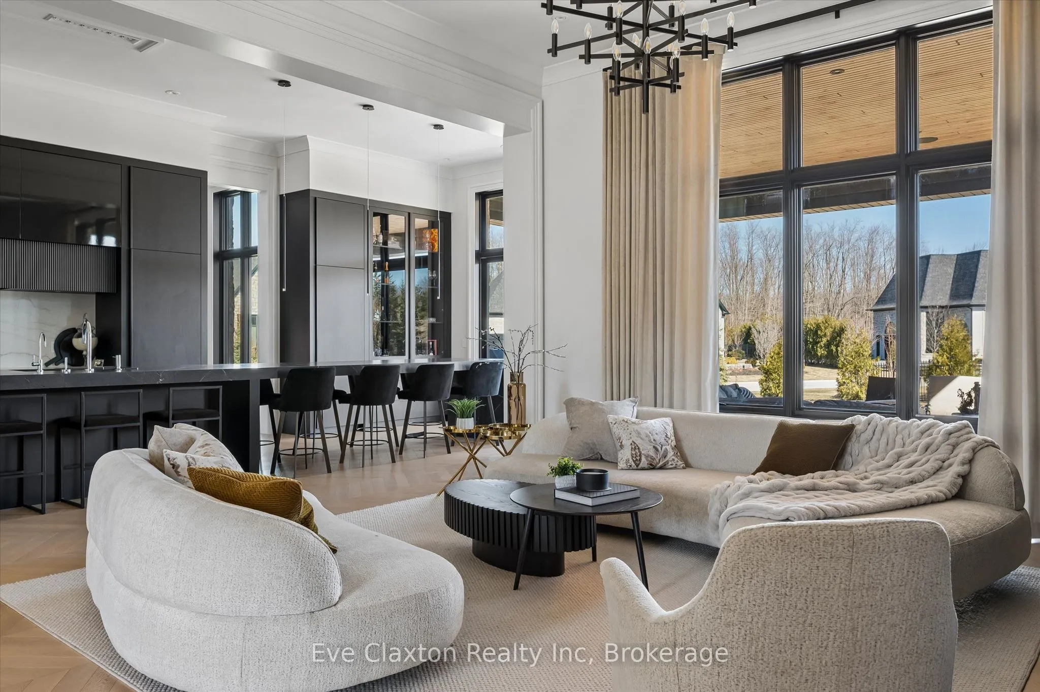 Set within the exclusive gated community of Heritage Lake Estates, this extraordinary custom-built natural stone bungalow offers refined luxury on a private half-acre lot just steps from the lake. Perfectly positioned only minutes from Highway 401 and close to schools and amenities, this home delivers both privacy and exceptional convenience.From the moment you enter, the home impresses with 12-foot ceilings, striking chevron hardwood flooring, dramatic custom lighting, and a stunning fireplace feature wall. Expansive floor-to-ceiling windows flood the home with natural light, creating an atmosphere that is both sophisticated and welcoming. With over 4,200 square feet of impeccably designed living space, the home offers 4 spacious bedrooms and 5 luxurious bathrooms, along with heated floors and premium finishes throughout.At the heart of the home is a show-stopping chef’s kitchen designed for grand entertaining, featuring built-in appliances, a walk-in pantry, and an impressive 20-foot granite island with seating for up to 15 guests.The private primary retreat offers a serene escape with a spa-inspired luxury ensuite and a custom walk-in closet with built-in cabinetry.The fully finished lower level continues the home’s exceptional design with nearly 10-foot ceilings, oversized windows, radiant heated hardwood floors, and a cozy gas fireplace, creating the perfect space for entertaining, relaxing, or hosting guests.Outdoors, enjoy the beautifully landscaped grounds, complete with irrigation, an oversized covered patio for year-round outdoor living, and an expansive three-car garage with additional driveway parking for 6-8 vehicles.Net-zero ready and fully smart-wired with fibre optics and natural gas, this forward-thinking home blends timeless craftsmanship with modern technology.A rare offering where architectural elegance, thoughtful design, and premium craftsmanship come together to create a truly exceptional home.