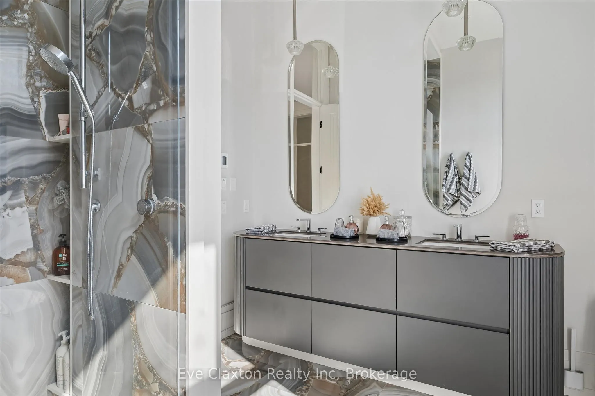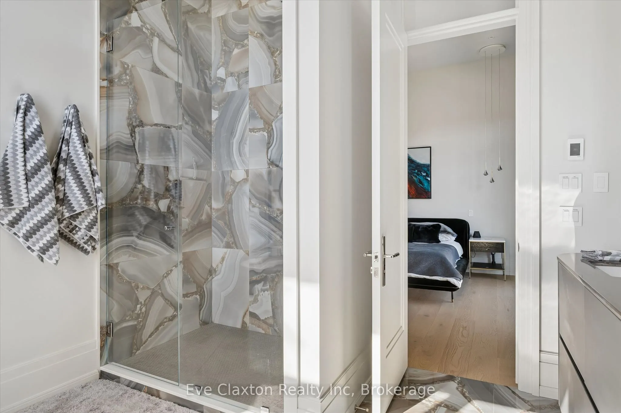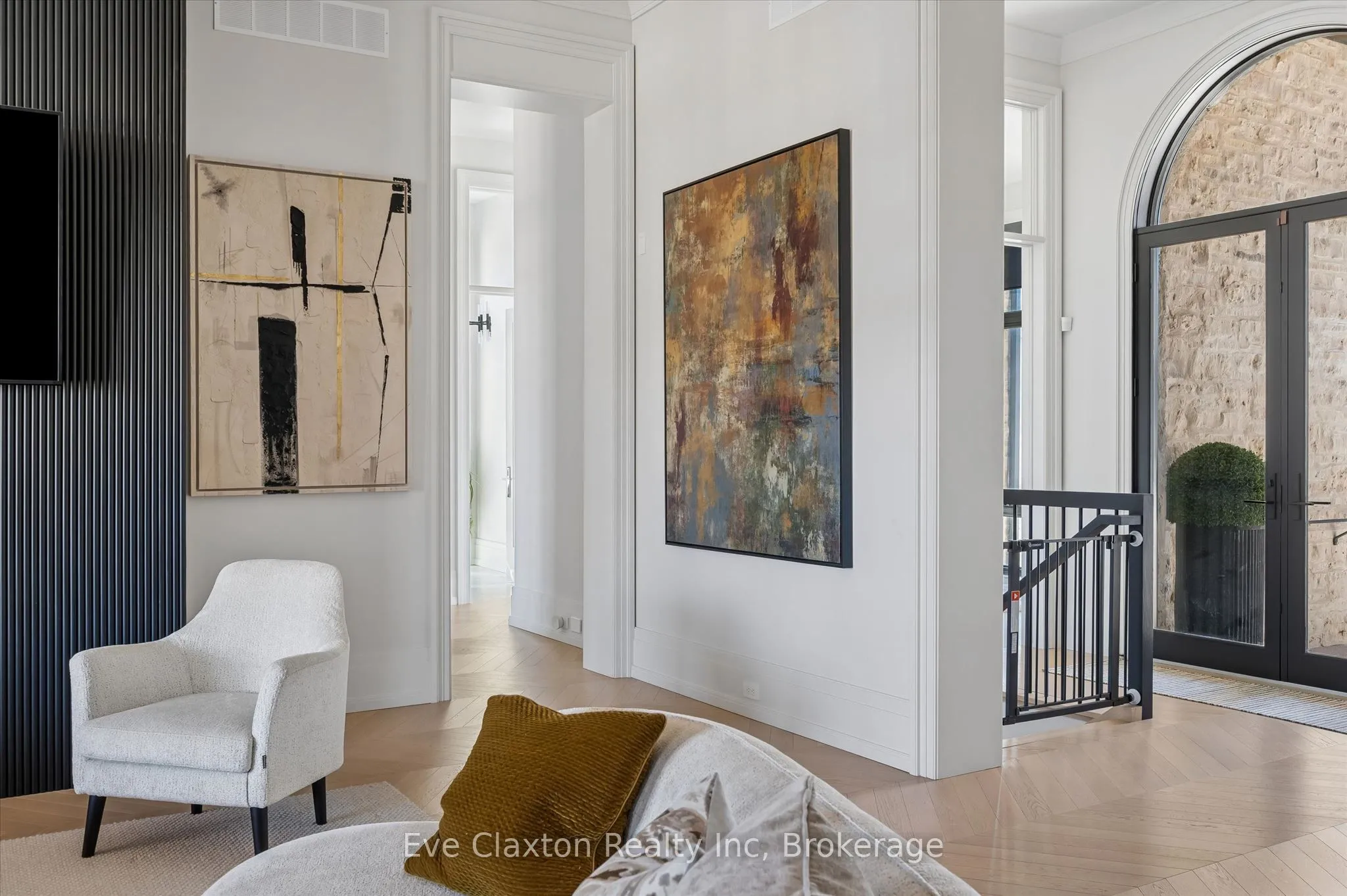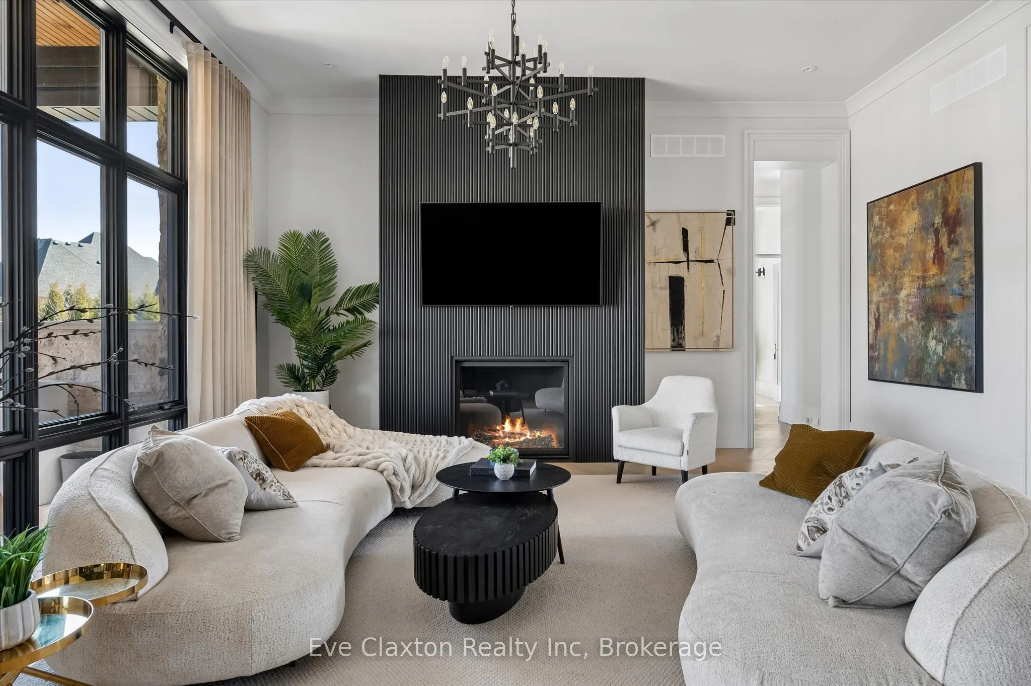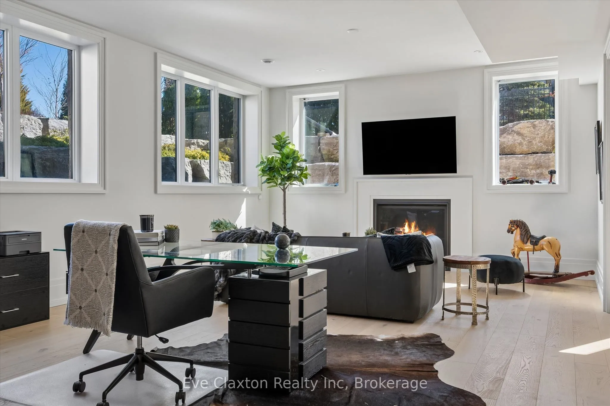 Set within the exclusive gated community of Heritage Lake Estates, this extraordinary custom-built natural stone bungalow offers refined luxury on a private half-acre lot just steps from the lake. Perfectly positioned only minutes from Highway 401 and close to schools and amenities, this home delivers both privacy and exceptional convenience.From the moment you enter, the home impresses with 12-foot ceilings, striking chevron hardwood flooring, dramatic custom lighting, and a stunning fireplace feature wall. Expansive floor-to-ceiling windows flood the home with natural light, creating an atmosphere that is both sophisticated and welcoming. With over 4,200 square feet of impeccably designed living space, the home offers 4 spacious bedrooms and 5 luxurious bathrooms, along with heated floors and premium finishes throughout.At the heart of the home is a show-stopping chef’s kitchen designed for grand entertaining, featuring built-in appliances, a walk-in pantry, and an impressive 20-foot granite island with seating for up to 15 guests.The private primary retreat offers a serene escape with a spa-inspired luxury ensuite and a custom walk-in closet with built-in cabinetry.The fully finished lower level continues the home’s exceptional design with nearly 10-foot ceilings, oversized windows, radiant heated hardwood floors, and a cozy gas fireplace, creating the perfect space for entertaining, relaxing, or hosting guests.Outdoors, enjoy the beautifully landscaped grounds, complete with irrigation, an oversized covered patio for year-round outdoor living, and an expansive three-car garage with additional driveway parking for 6-8 vehicles.Net-zero ready and fully smart-wired with fibre optics and natural gas, this forward-thinking home blends timeless craftsmanship with modern technology.A rare offering where architectural elegance, thoughtful design, and premium craftsmanship come together to create a truly exceptional home.