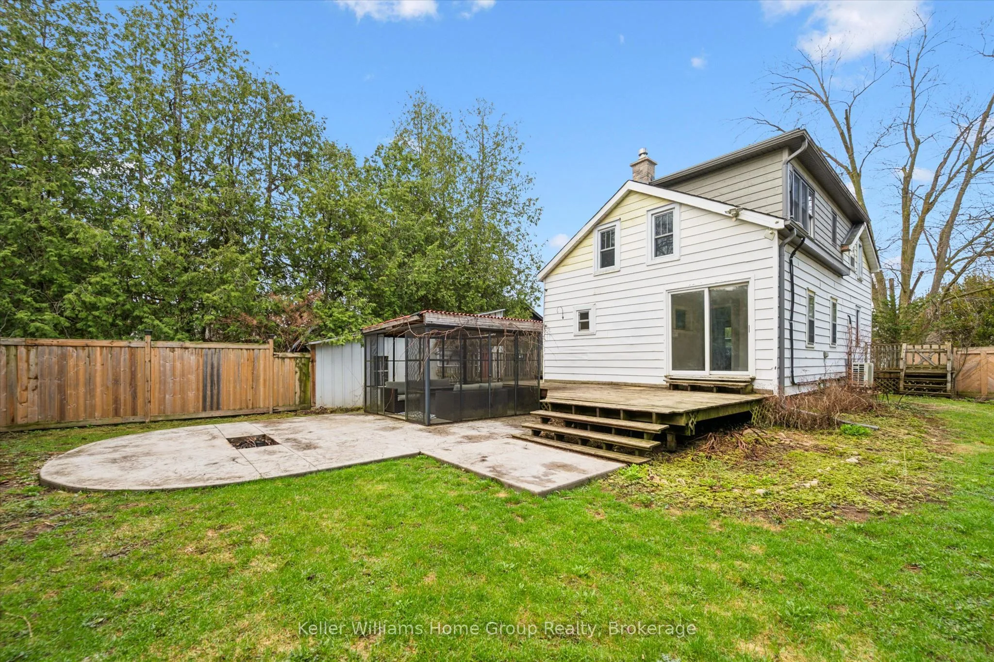 Charming Character Home in the Heart of Elora. Welcome to 75 Wellesley Street, a delightful slice of Elora charm nestled in a highly walkable, sought-after location. Set on a generous 82′ x 99′ fully fenced lot, this character home blends timeless appeal with cozy modern touches. Step inside this approx. 1200 sq ft frame home and instantly feel the warmth of the original wood floors. With 2 bedrooms plus a den on the second level, there’s flexibility for a home office, studio, or nursery. The home offers 2 full bathrooms, both comfortably sized-an uncommon perk in older homes. The inviting floor plan flows from the bright living areas to a charming kitchen and out to your private oasis. Outdoor living is exceptional here. The stamped concrete patio with a gazebo is perfect for entertaining, while the large deck invites lazy mornings or quiet evenings. The lush, fully fenced yard is both private and secure, ideal for kids, pets, or peaceful gardening. A detached garage provides bonus storage or potential for a workshop. Best of all, you’re just a short stroll to everything Elora has to offer, trendy cafes, boutique shops, scenic trails, and the Grand River.