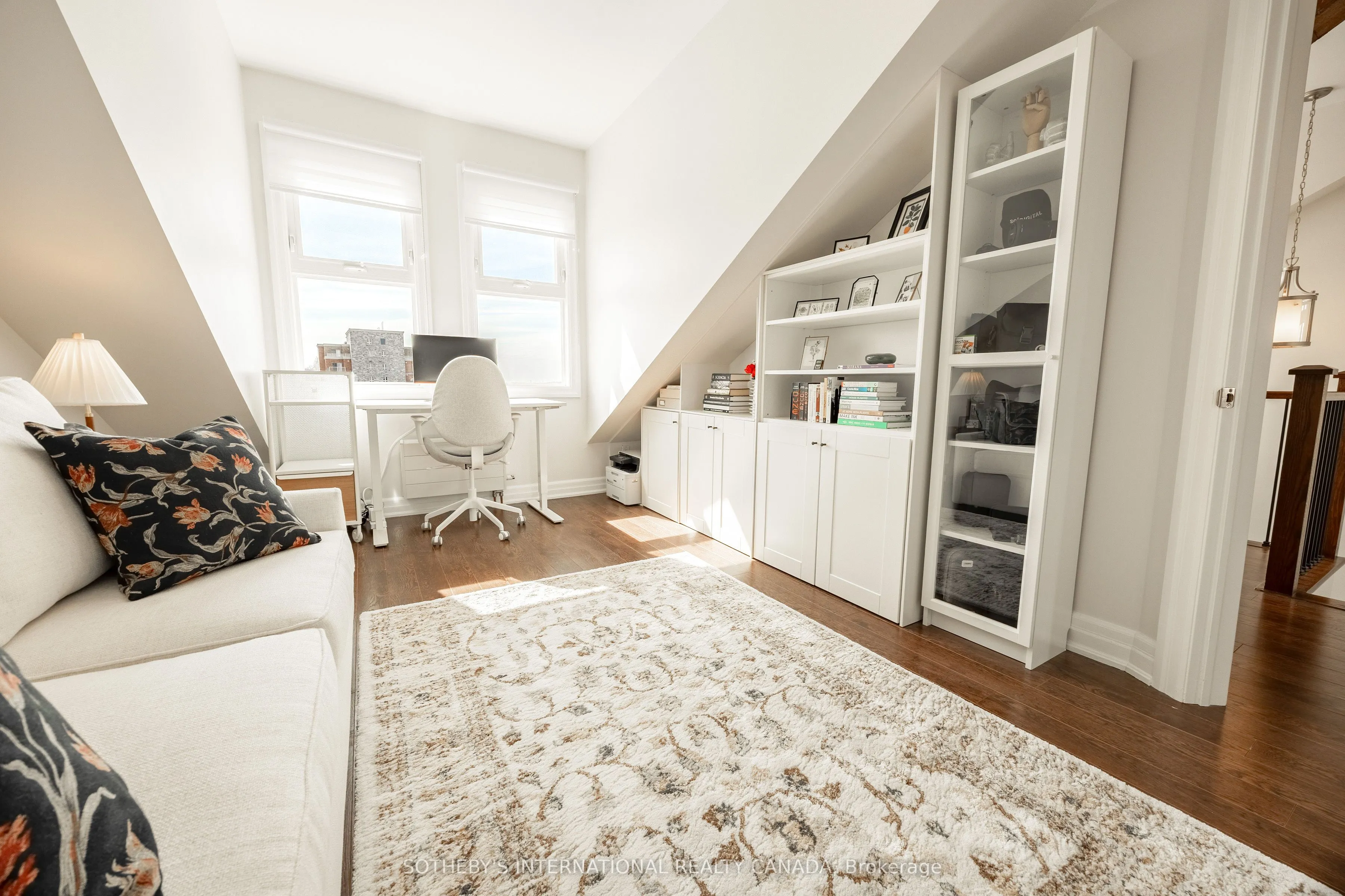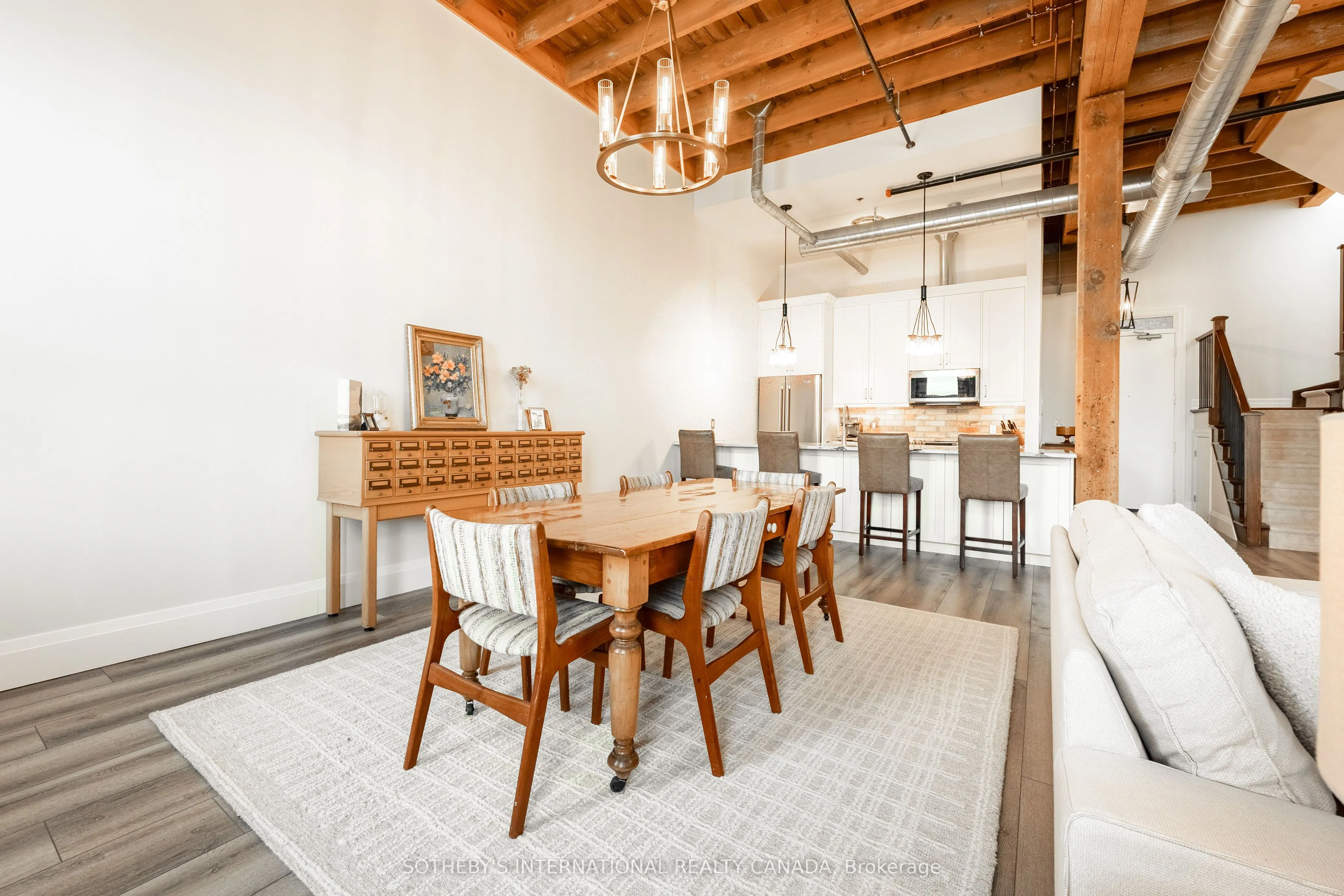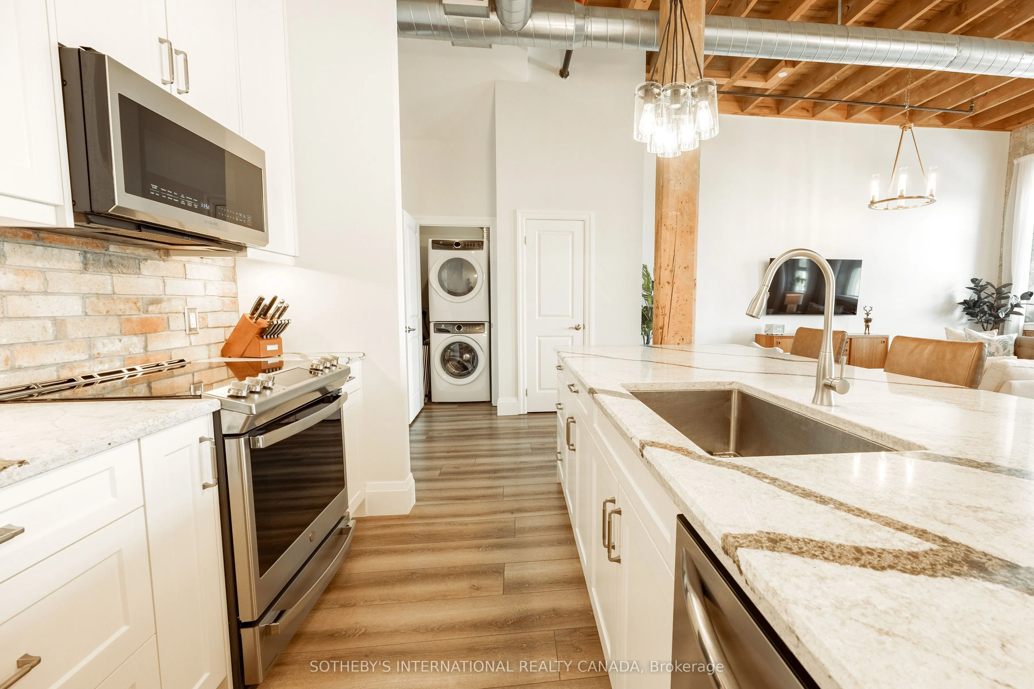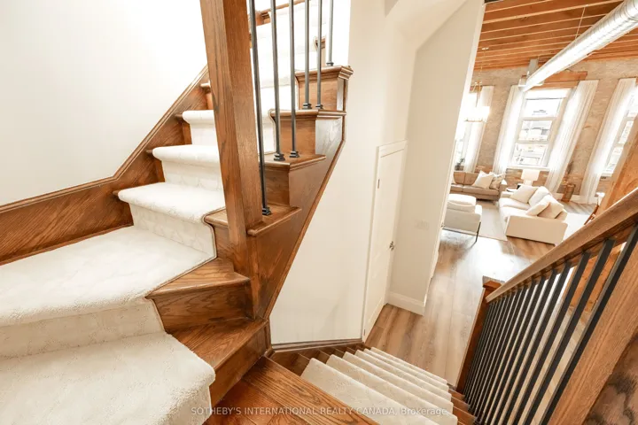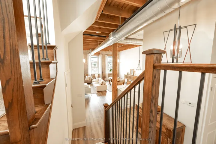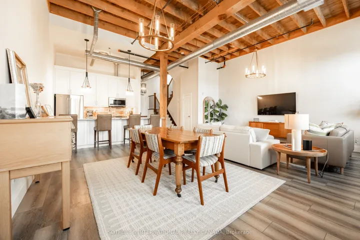 Welcome to 25 Concession Street, Suite 215 in historic Galt of Cambridge. This stunning 1,599 sq. ft. two storey penthouse suite features beautiful large windows, high ceilings, original wood beams, stone walls and exceptional views of the downtown core and riverfront. The open concept main level creates a grand space for the kitchen, dining and living room- perfect entertaining and hosting areas to enjoy with family and friends. The kitchen features Quartz counters, loads of cabinetry for storage and a walk-in pantry. You will also find a two piece powder room and in-suite laundry for your added convenience. The upper level boasts a spacious primary bedroom with extra space for a reading nook and a walk-in closet. Find a secondary bedroom, a full four piece bathroom and den that could work well for an office space or additional living area to complete this floor. This suite offers two side-by-side outdoor parking spaces for you to park your vehicles and walk downtown to the Gaslight District, the Grand River Pedestrian Bridge, and Hamilton Family Theatre, along with the farmers market and charming restaurants and boutiques. Picture perfect views from all rooms, loads of natural light, within a highly desirable location, this suite is completely move-in ready for those who love nearby city amenities.