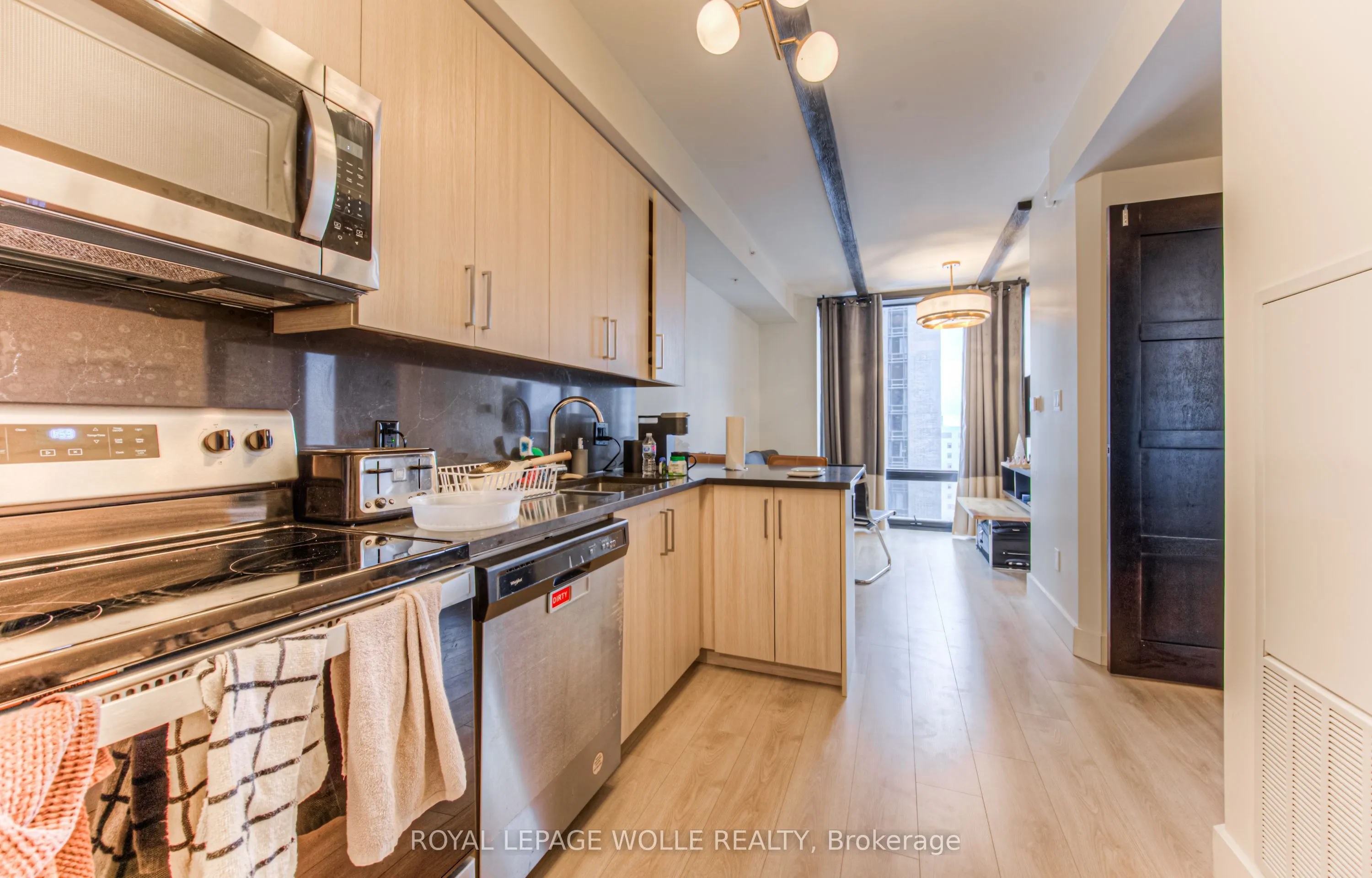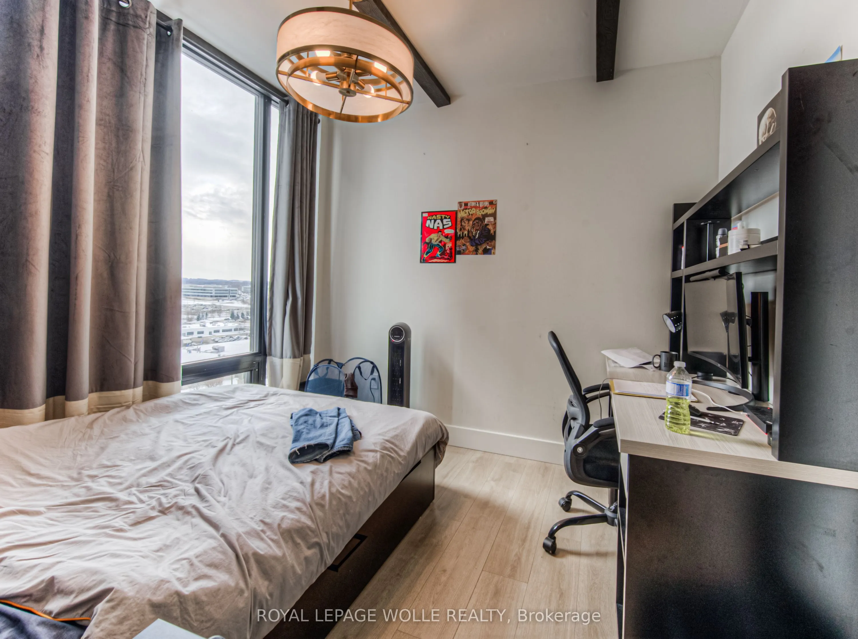 Welcome to Society 145, a brand-new luxury condominium ideally located in the heart of Waterloo, just steps from both the University of Waterloo and Wilfrid Laurier University. This rare, spacious corner unit offers a thoughtfully designed layout with 630 square feet of contemporary living space, filled with natural light through expansive floor-to-ceiling windows. The unit is adorned with high-end finishes, including hardwood floors, quartz countertops, stylish light fixtures, and rich carpentry throughout, ensuring a sophisticated and comfortable living environment. Whether you’re a student, professional, or investor, this unit caters to all, offering a versatile space with a modern kitchen featuring stainless steel appliances, ample storage, and an open-concept living area perfect for entertaining. The bedroom and den (with window) are spacious. The den offers flexibility for use as a guest room, home office, or study space. Residents of 145 Society enjoy top-tier amenities, including a state-of-the-art fitness center, yoga studio, indoor basketball court, games room with billiards, ping pong, and arcade games, as well as a movie theater and business lounge. The building also features secure entry, a 24-hour concierge, and a rooftop patio with breathtaking panoramic views of the city. The ideal blend of luxury, convenience, and modern living – a perfect choice for anyone looking to invest in one of Waterloo’s best buildings. With easy access to the dining, shopping, and entertainment options, this condo offers the perfect combination of comfort, convenience, and style. Don’t miss the opportunity to own in this highly desirable location with tremendous potential for growth and appreciation in value. Note tenant in place until end of December, 2026. Embrace the best of condo living in Waterloo at 145 Society!