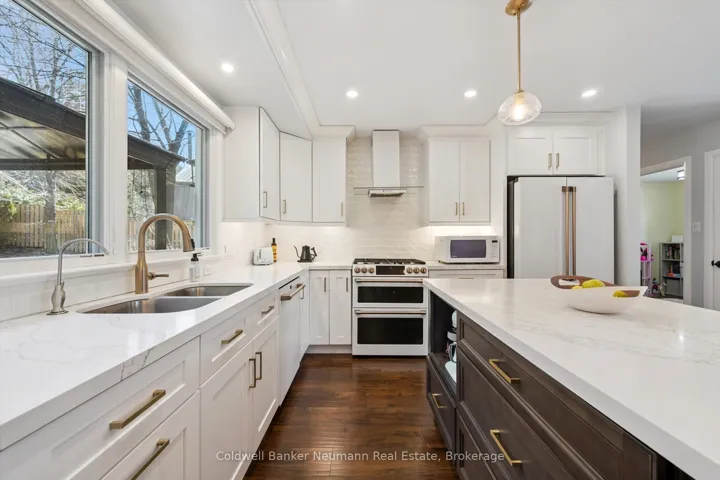 Welcome to 153 Harris St, a beautiful 3+2 bedroom, 2-bath raised bungalow nestled in the heart of historic Rockwood, completely remodeled with care and exceptionally designed for modern living. Step inside to a chef’s kitchen that will take your breath away, featuring white cabinetry, brushed gold hardware, a subway tile backsplash, quartz counters, and an oversized island with breakfast seating – the true heart of this home. The open-concept main level flows effortlessly with sleek hardwood, ceramic tile, modern lighting, and a neutral palette that feels both warm and sophisticated. The primary bedroom and dining room each offer sliding glass walkouts to a fully fenced rear yard, where a sprawling Trex. deck (lifetime warranty!) awaits with multiple seating areas, a gazebo, gas hook up for BBQ, and serene forested views that make every evening feel like a retreat. Downstairs, two additional bedrooms (one currently an office), a full bath, and laundry offer exceptional flexibility for a growing or blended family or anyone craving extra space. Every detail has been thoughtfully upgraded between 2019 and 2024 – new roof, windows and doors, furnace and AC, water softener, on-demand water heater (leased), light fixtures, abundant closets and storage, large storage shed in backyard, and electric blinds in communal spaces. Outside, an armour stone buttress and stairs beautifully frame the front entrance with undeniable curb appeal, while exceptionally landscaped front and back yards burst to life through the seasons with daffodils, tulips, irises, peonies, hydrangeas, and more. Just 15 minutes to Guelph, 10 to Acton, and 25 to the 401. Don’t miss out on this beautiful majestically raised bungalow in the heart of safe and stunning Rockwood, with over 1800 square feet of exquisitely modern finishes and open concept design, surrounded by a sprawling seasonal kaleidoscope. This artful and fully optimized oasis awaits your ownership!