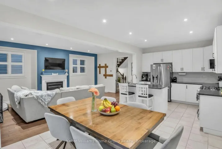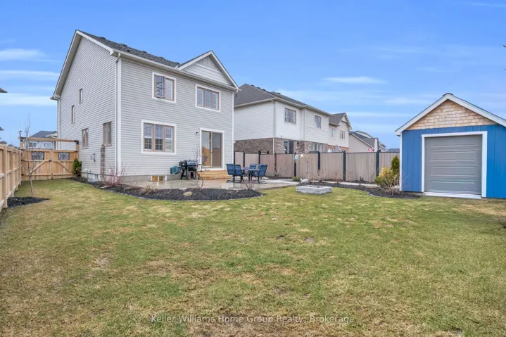 Welcome home to this bright and spacious newer family home in the sought-after Storybrook community! Situated on a premium quiet cul-de-sac and set on a pie-shaped lot, this property offers a peaceful setting and plenty of space to enjoy. Step inside to an open-concept main floor that is inviting and functional, perfect for entertaining or everyday living. The livingroom features large windows, hard wood floors and a cozy gas fireplace as its focal point, creating a warm and welcoming atmosphere. Upstairs, the primary bedroom retreat offers generous space, a spa-like ensuite with a separate soaker tub, and a walk-in closet. Two additional well-sized bedrooms, a 4-piece bathroom, and convenient second-floor laundry complete the upper level. The fully finished basement adds valuable living space with a recreation room, den with closet, and a 3-piece bathroom, ideal for guests, a home office, or additional family space. Outside, enjoy a fully fenced backyard featuring inground sprinklers, a concrete patio, and a concrete walkway leading to a shed with hydro and lighting, perfect for storage or a workshop setup. The heated double garage provides space for two vehicles and includes a separate door leading to the backyard. With no sidewalk, you’ll benefit from extra parking and enhanced curb appeal. Ideally located close to Groves Memorial Community Hospital, parks, trails, the Cataract Trail, and the Grand River, this home also offers easy access to Guelph and Kitchener-Waterloo, and is just minutes from the charming village of Elora. Don’t miss your opportunity to own this quality-built Sobara home in one of Fergus’s most up-and-coming communities!