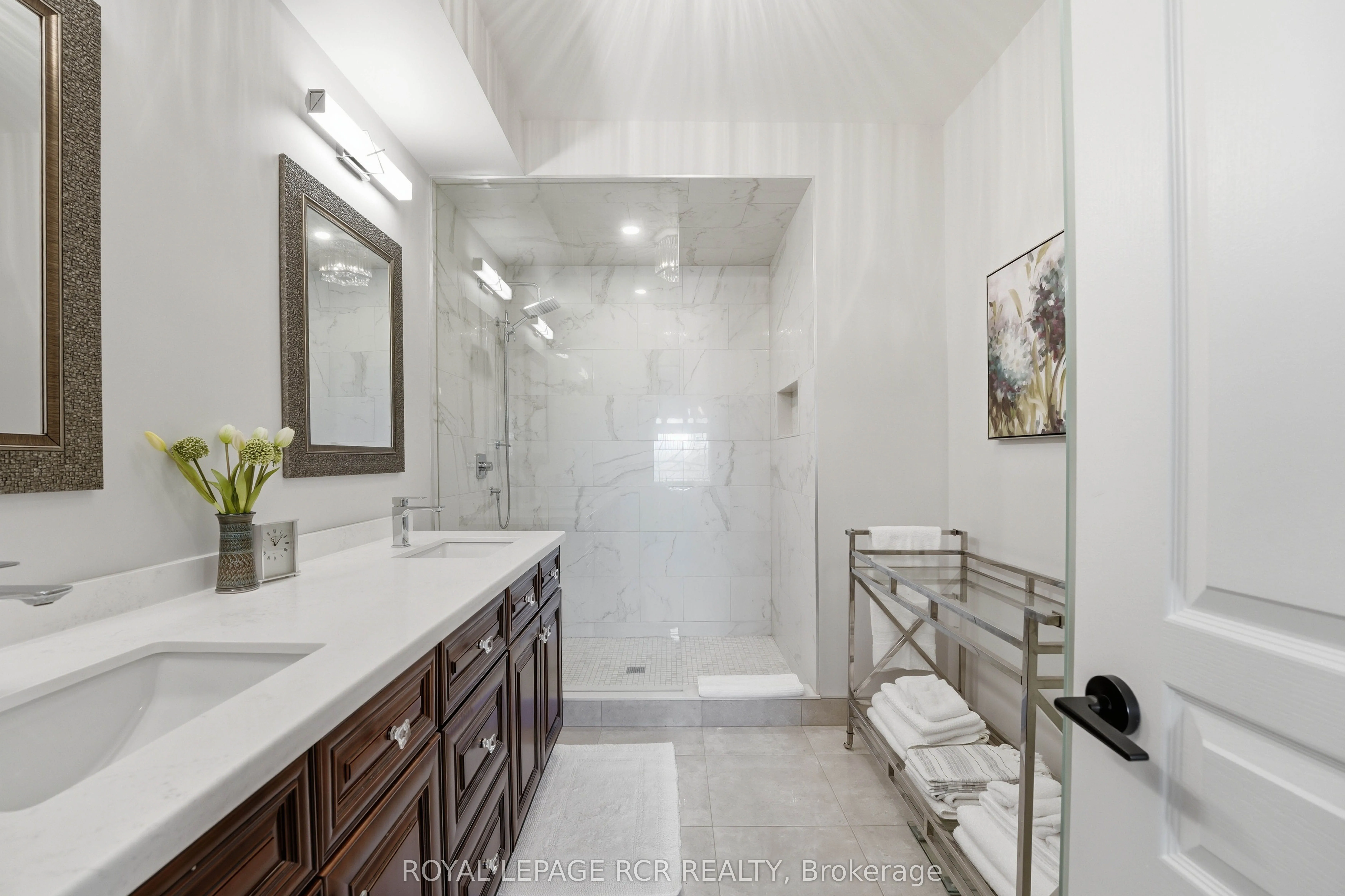 An exceptional opportunity to enjoy turnkey living in a quiet, gated community in Aurora, where every detail has been carefully considered – Welcome to 6 Danbrook Court. This well-appointed 3+1 bedroom, 5 bathroom home features an open-concept main level anchored by a vaulted family room with gas fireplace. The kitchen is both stylish and functional, complete with Caesarstone countertops, solid brass hardware, a centre island, and a full suite of Kitchen Aid appliances. Two dining areas provide flexibility for both cozy dinner parties and larger family gatherings, while the breakfast area walks out to the upper deck for seamless indoor-outdoor flow. The main floor primary suite includes a walk-in closet and a 4-piece ensuite with heated floors. Upstairs, two additional bedrooms, a shared bath, a second family room, and covered deck offer versatile living space. The fully finished walk-out basement expands the living space with a theatre room, a billiards area with wet bar, and a private guest or office suite with a Murphy bed, walk-in closet, and ensuite. Backing onto greenspace, the backyard features a large deck with BBQ gas line and outdoor speakers, lower interlock patio, and landscaped perennial gardens. Complete with a double car garage, main floor laundry, whole-home sound system, and security features, this is low-maintenance luxury living without compromise.