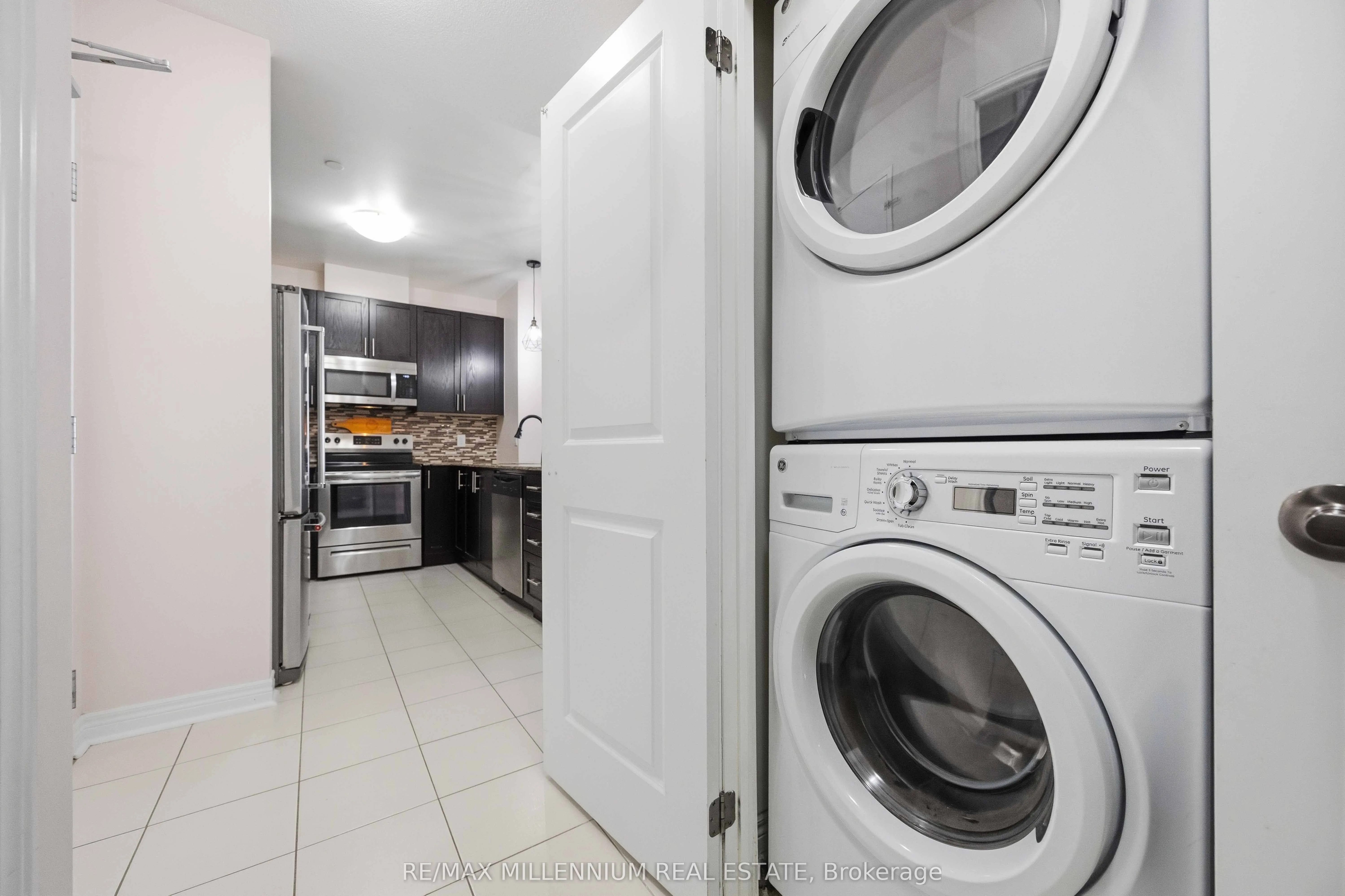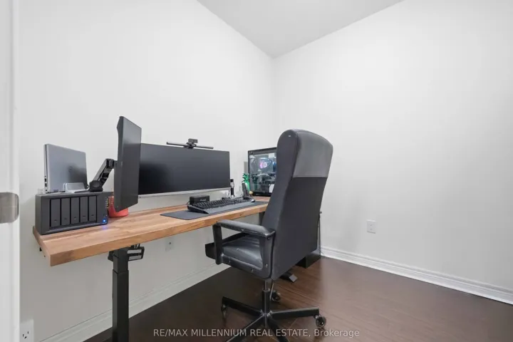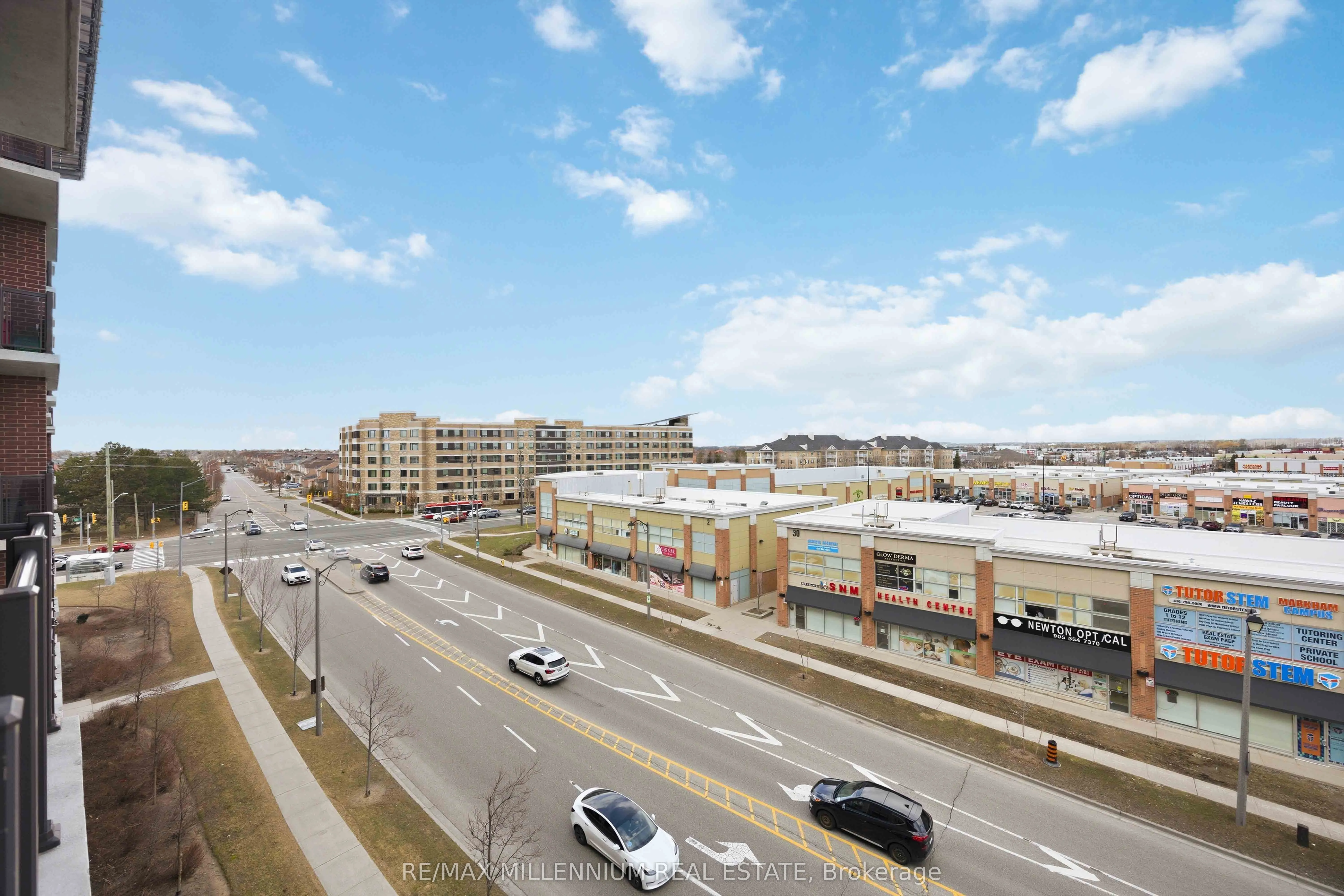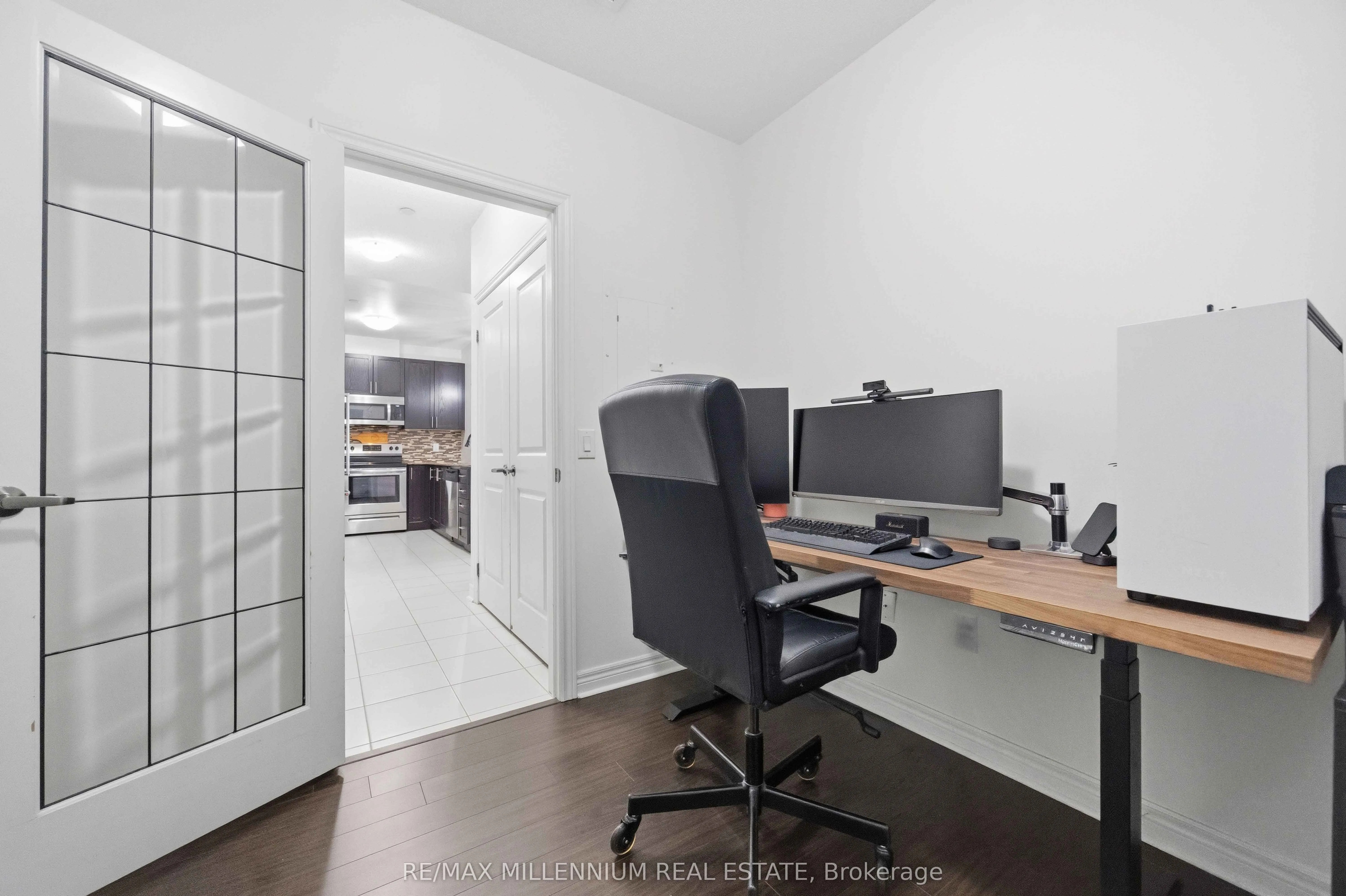 This home provides the perfect blend of comfort and convenience in this bright and spacious 2 bedroom plus enclosed den, 2 bathroom suite offering over 1000 sq ft of functional living space with 2 parking spots. Located on the 5th floor, this well maintained unit features a smart layout with no wasted space and an abundance of natural light throughout.The fully enclosed den offers incredible flexibility and can easily function as a third bedroom, home office, or guest space. The open concept living and dining area flows seamlessly into a modern kitchen complete with granite countertops, backsplash, and stainless steel appliances. Laminate flooring runs throughout the unit with no carpet, creating a clean and cohesive feel. Step out onto your open north facing balcony and enjoy unobstructed views, adding to the sense of space and privacy. This unit also includes the rare convenience of two parking spots, one underground and one surface, along with a locker for additional storage. Situated in a well managed green building known for its energy efficiency, residents benefit from lower than average maintenance fees without compromising on space or comfort. Ideally located near Markham and Denison, with easy access to Highway 407, public transit, schools, library, shopping, and everyday essentials. An excellent opportunity for first time buyers, down sizers, or anyone looking for a spacious and affordable option in a prime Markham location.