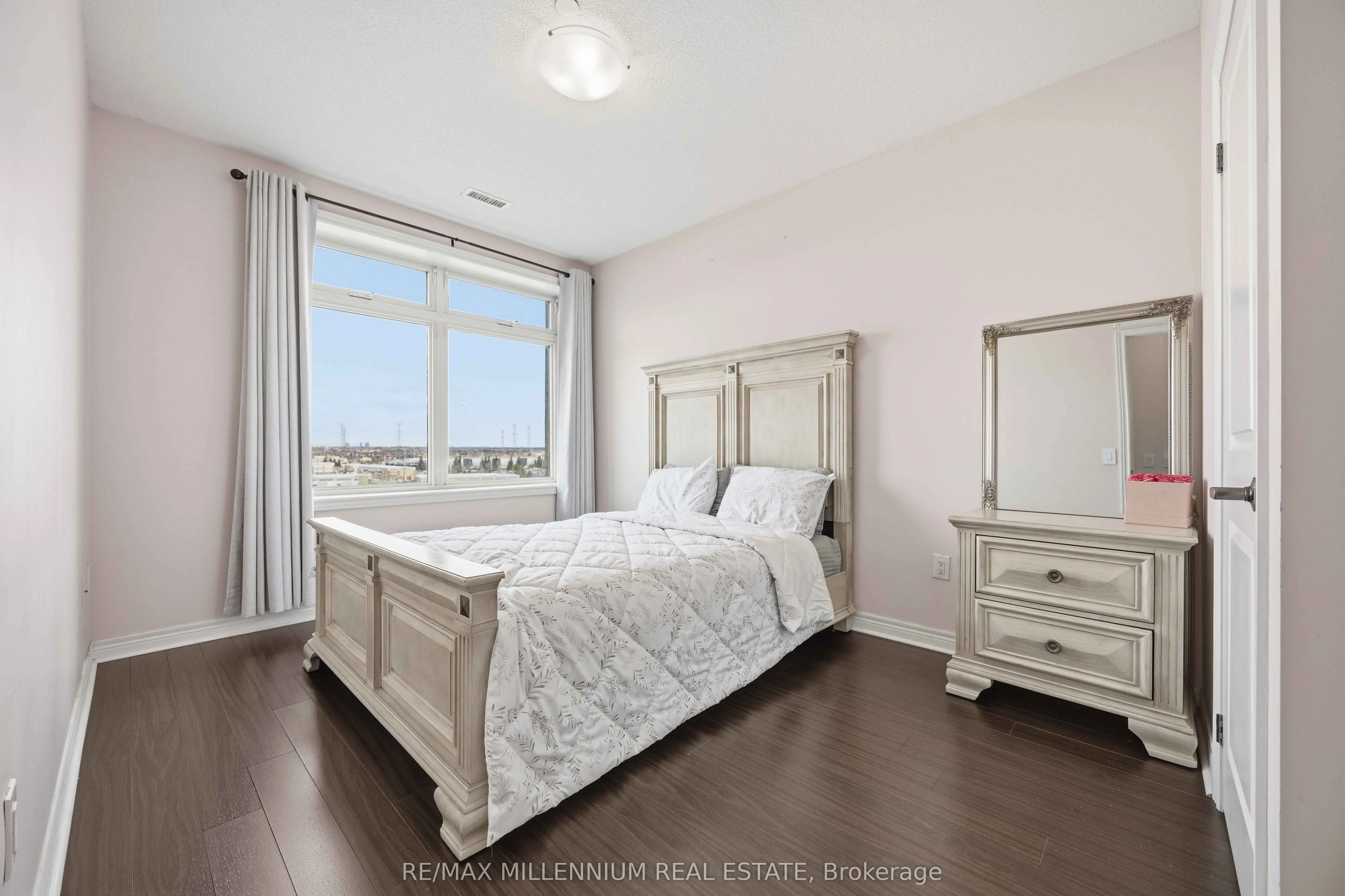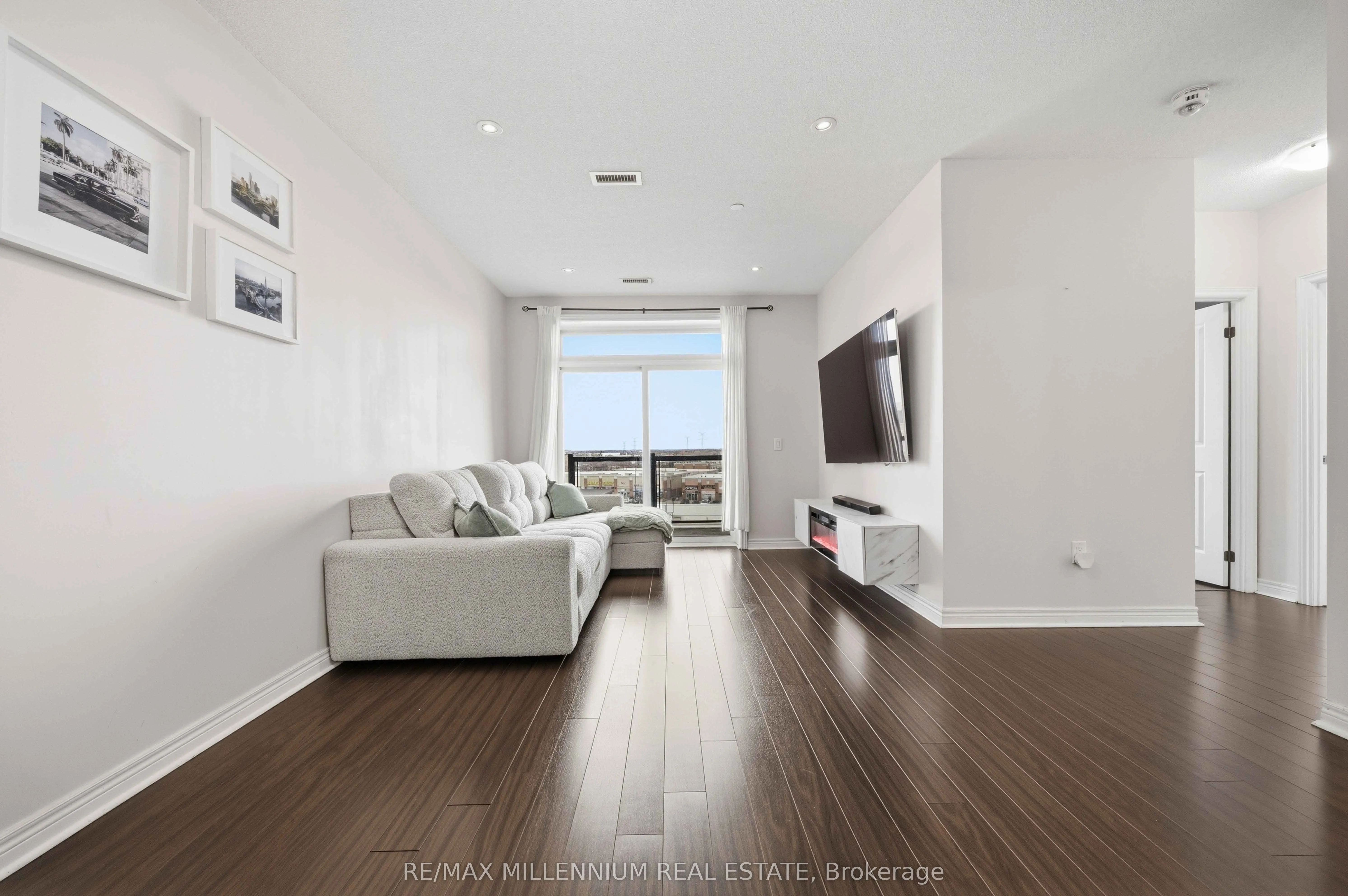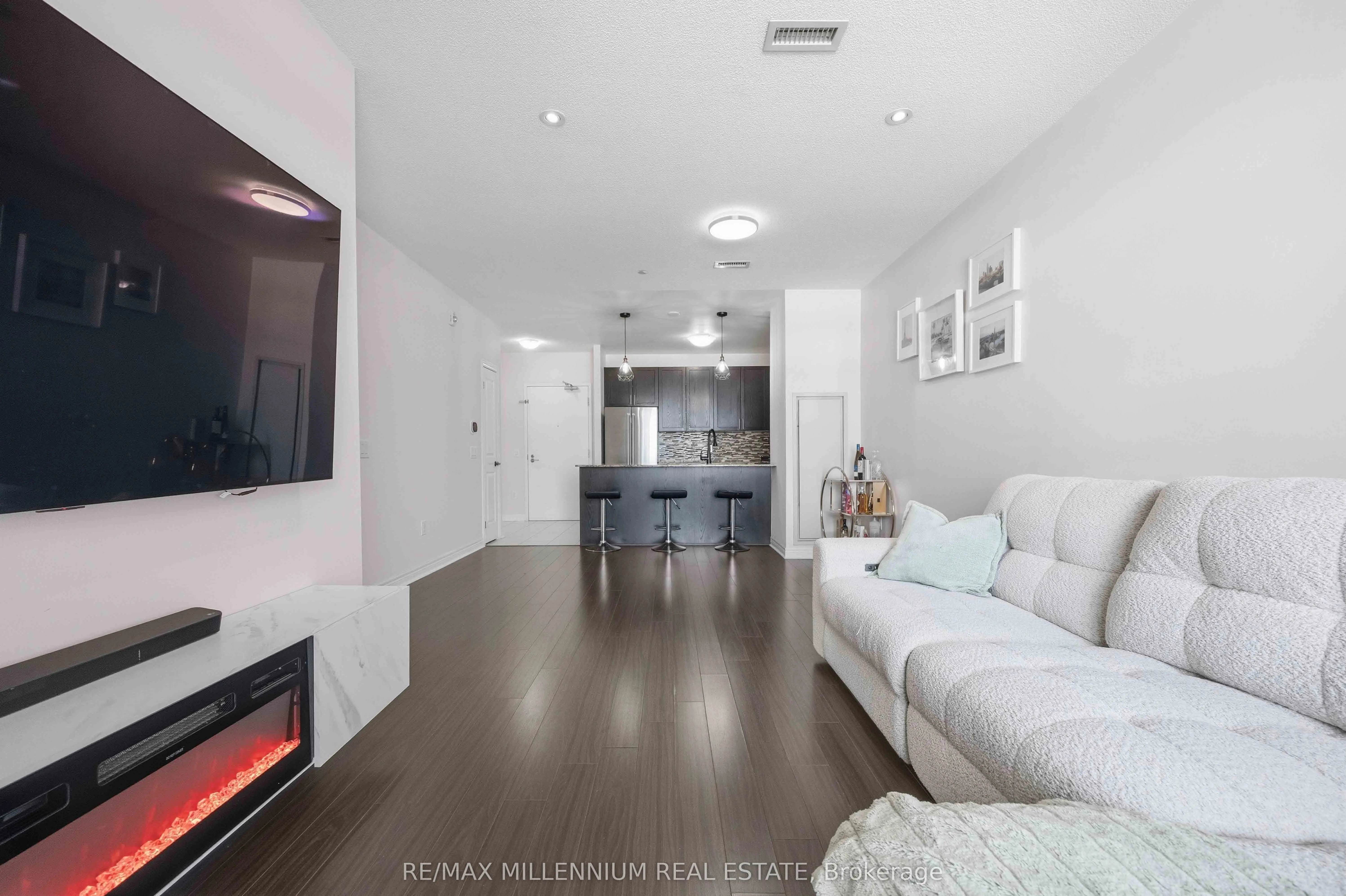 This home provides the perfect blend of comfort and convenience in this bright and spacious 2 bedroom plus enclosed den, 2 bathroom suite offering over 1000 sq ft of functional living space with 2 parking spots. Located on the 5th floor, this well maintained unit features a smart layout with no wasted space and an abundance of natural light throughout.The fully enclosed den offers incredible flexibility and can easily function as a third bedroom, home office, or guest space. The open concept living and dining area flows seamlessly into a modern kitchen complete with granite countertops, backsplash, and stainless steel appliances. Laminate flooring runs throughout the unit with no carpet, creating a clean and cohesive feel. Step out onto your open north facing balcony and enjoy unobstructed views, adding to the sense of space and privacy. This unit also includes the rare convenience of two parking spots, one underground and one surface, along with a locker for additional storage. Situated in a well managed green building known for its energy efficiency, residents benefit from lower than average maintenance fees without compromising on space or comfort. Ideally located near Markham and Denison, with easy access to Highway 407, public transit, schools, library, shopping, and everyday essentials. An excellent opportunity for first time buyers, down sizers, or anyone looking for a spacious and affordable option in a prime Markham location.