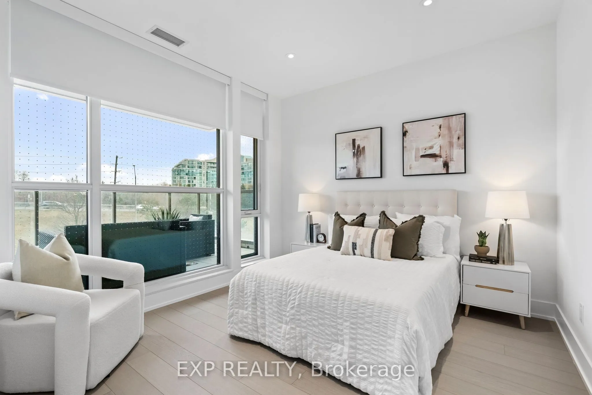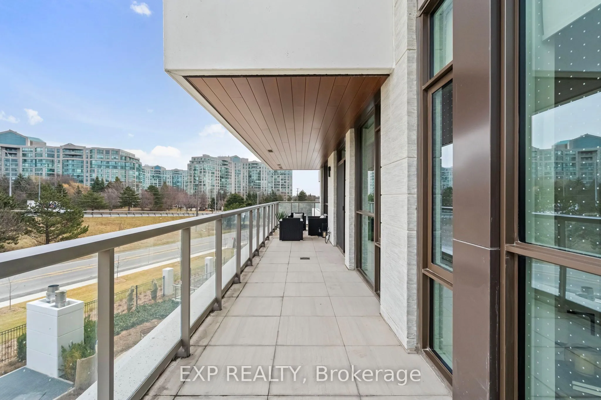 Welcome to Royal Bayview, Tridel’s signature luxury residence in the heart of Thornhill. This stunning 2-bedroom, 2-bathroom suite offers 1,073 sq ft of refined living with soaring 10 ft ceilings and thoughtfully upgraded finishes throughout. Adjacent to the prestigious Ladies’ Golf Club of Toronto, this home combines luxury, nature, and convenience in one of the GTA’s most sought-after neighbourhoods. The suite features a split-bedroom layout and full-height, floor-to-ceiling windows that flood the space with natural light. The gourmet kitchen is beautifully upgraded with premium cabinetry, an extended pantry cabinet and integrated Miele stainless steel appliances, including a Wi-Fi-enabled built-in speed oven, built-in fridge, stove, range hood and dishwasher. Both bathrooms are upgraded, with the second bathroom offering a modern black vanity and a sliding glass door for the bathtub. All closets are equipped with floor-to-ceiling custom built-in organizers, maximizing storage and functionality. Upgraded pot lights add warmth and elegance, while electric auto blinds provide comfort and privacy with the touch of a button. An added master switch allows you to conveniently power off all the lights in the unit from a single control point-an energy-efficient and smart home upgrade. Large outdoor terrace complete with a gas line ready for a BBQ. Royal Bayview offers world-class amenities, including a 24-hour concierge, indoor pool, whirlpool, sauna, fitness centre, golf simulator, party room with outdoor terrace, and beautifully designed common spaces. Located just minutes from Bayview, Highway 7 & 407, Richmond Hill Centre and Langstaff GO Station, with nearby parks, trails, shopping, and dining. Includes 1 parking space and 1 locker. Experience luxury living with nature at your doorstep at Royal Bayview. Property Tax to be assessed.