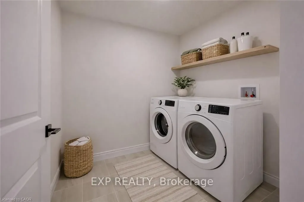 Step into easy living with this beautifully designed 1,799 sq ft interior unit, where modern farmhouse charm meets clean, contemporary finishes in true fashion. From the moment you arrive, the light exterior palette, welcoming front porch, and classic curb appeal set the tone for whats inside.The main level features 9′ ceilings and a bright, functional layout starting with a generous foyer, powder room, and a flexible front room ideal for a home office, reading nook, or play space. The open concept kitchen, dining, and living area is filled with natural light and made for both everyday living and weekend entertaining. The kitchen is anchored by a quartz island with a breakfast bar overhang, perfect for quick bites and extra seating. Upstairs, the spacious primary suite includes a walk-in closet and sleek 3pc ensuite with beautiful time work and glass doors. Two additional bedrooms, a full family bath, and convenient second level laundry round out this floor with thoughtful design. The attached garage offers indoor access and extra storage, while the full basement is roughed in for a future 2-pc bath just waiting for your personal touch. Whether you’re a first-time buyer, young family, or down sizer looking for low maintenance living without compromise, this home checks all the boxes. Ask about the full list of features or visit our fully furnished Model Home at 122 Bean Street and explore all your options at Maitland Meadows. Come Home To Calm in Harriston.