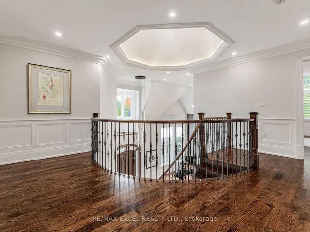 A timeless custom-built residence in prestigious South Richvale, one of Richmond Hill’s most sought-after neighbourhoods. Situated on a premium 75 x 148 ft lot, this elegant home offers over 6,800 sq.ft. of refined living space, featuring 10 ft ceilings on the main floor and 9 ft ceilings on the upper and basement levels-perfectly blending classic design with modern comfort.A grand 20 ft foyer welcomes you with Italian marble flooring, a crystal chandelier, and an octagonal dome skylight with LED cove lighting. The living room impresses with soaring ceilings, hardwood floors, and a dramatic two-storey stone feature wall.The formal dining room features hardwood flooring, pot lights, and a coffered ceiling-ideal for hosting. The family room offers a warm and inviting space with a waffle ceiling, fireplace, and custom built-ins. A private office with custom cabinetry and walkout to the patio provides a perfect work-from-home setting.The gourmet kitchen is the heart of the home, complete with a large centre island, sleek cabinetry, and premium built-in appliances. The bright breakfast area opens to a custom deck, creating seamless indoor-outdoor living.Upstairs, the luxurious primary suite features a spa-inspired 7-piece ensuite and a custom walk-in closet. A second bedroom includes its own ensuite, while two additional bedrooms share a semi-ensuite.The finished walk-up basement is designed for both entertainment and functionality, offering a home theatre, wet bar, fitness room, and a nanny or guest suite.Professionally landscaped grounds complete this exceptional property-where timeless elegance meets modern luxury.