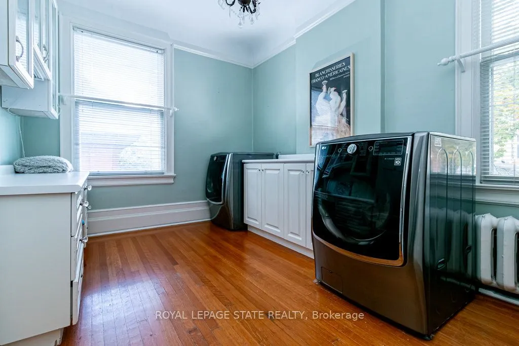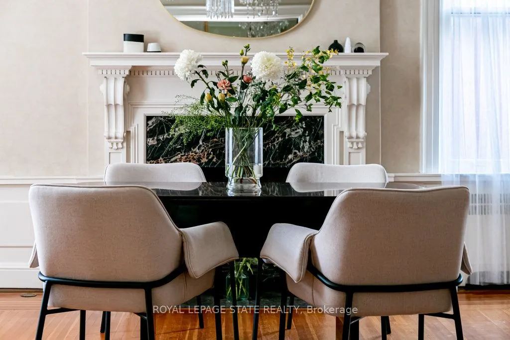 Much-admired century home on a coveted and prestigious cul-de-sac nestled beneath the escarpment in Durand, Hamilton’s unique heritage enclave. This c.1910 beauty sits on an impressive 80x140ft lot, w. 6-bdrms, 4-bths & 5500+sqft. Soaring ceilings (10ft/main flr, 9.5ft/2nd), centre hall, hardwood floors, French & pocket doors, heated marble floors, clawfoot tub, one-of-a-kind fireplaces + upgrades galore (electrical, heat/a/c, concrete drive & patios, in-ground sprinklers & landscape lighting +++). Crystal chandeliers & tall dual-aspect windows flood principal rooms with light, while mature trees, an elevated position and deep front garden assure privacy. Irreplaceable craftsmanship throughout, notably in the large, Georgian-inspired dining room and serene main floor study with carved stone f/pl, ornate cornice & breathtaking panelling. Beautiful sunroom w. bespoke cabinetry & heated floor. Sunken family room w. skylight & walk-out to patio off sunny kitchen w. huge island & deck access for al fresco dining. Entertaining here is a dream, with further possibilities in the multiple garden areas. Spacious bedrooms, one w. anteroom, ideal for multigenerational living. Show-stopping staircase with window-lined landing sits to the side of the airy barrel-ceilinged foyer, enhancing flow & privacy, while a second stairway gives fast access to upper levels, incl. laundry room, teen/nanny/guest suite & gym. The quality of materials and details, from trim & mouldings to fine wood doors & hardware, imbue the home with a quiet elegance that must be seen to be appreciated. With private parking for 5 and a short walk to the GO train, this distinguished address offers a rare lifestyle balance: quiet, leafy tranquility within easy reach of the best schools, shops, cultural landmarks and parks. From waterfalls to cafes, this friendly, walkable neighbourhood has it all. Exceptional opportunity not to be missed to enjoy a true forever home on one of the city’s most desirable streets.
