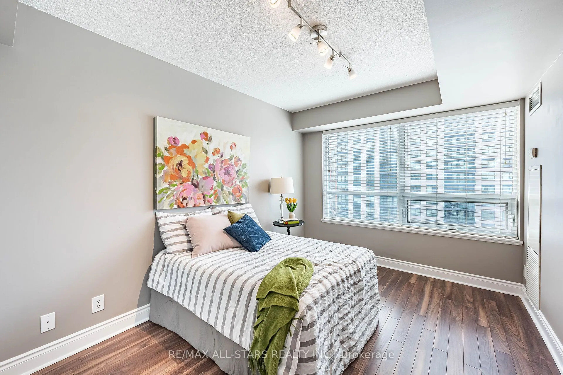 Immaculate and very bright best describes this spacious and stylishly updated condo. A rare corner unit offering an abundance of natural light. This unit features laminate flooring throughout, an very large balcony and has been freshly painted throughout. It also boasts 9 foot ceilings, newer stainless steel appliances, Lutron Caseta Smart Lighting in all rooms and Network cables are available in all rooms. The custom built in media unit is complete with integrated lighting.32 Clegg Road is an incredible location with transportation at the doorstep, shopping and schools are nearby. The building also offers state of the art amenities.