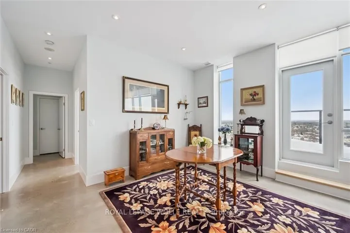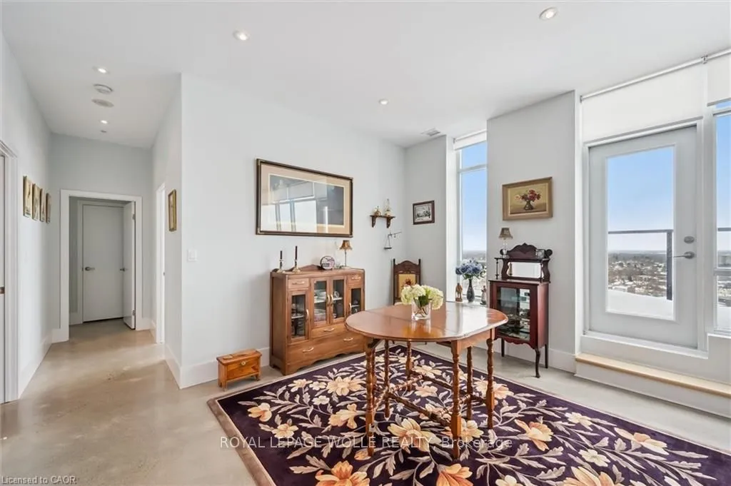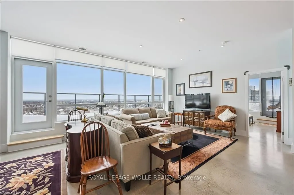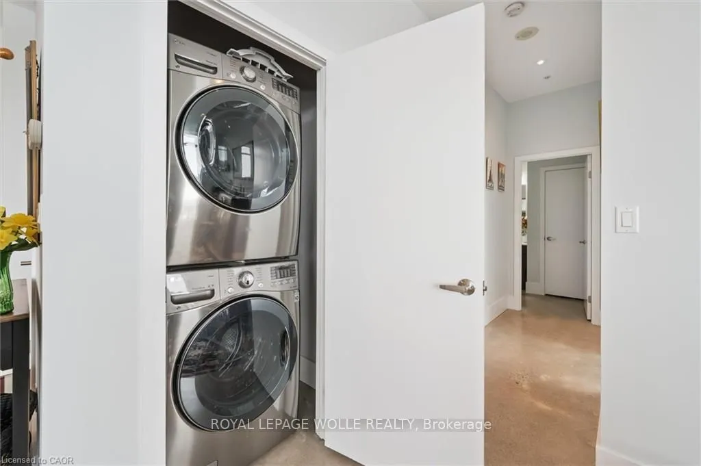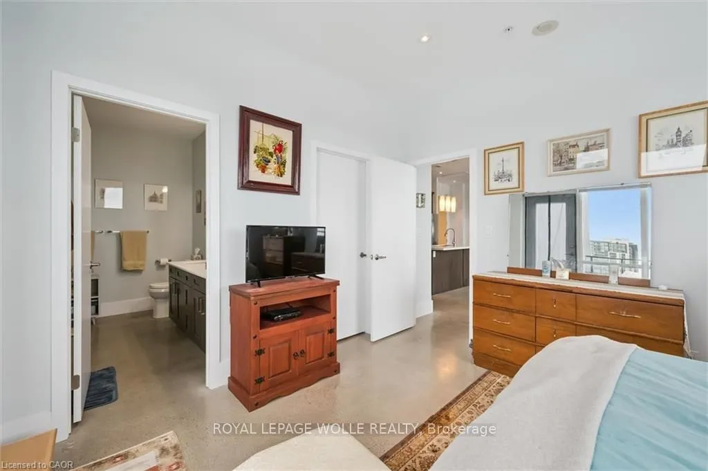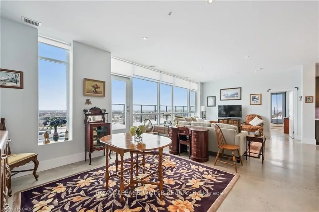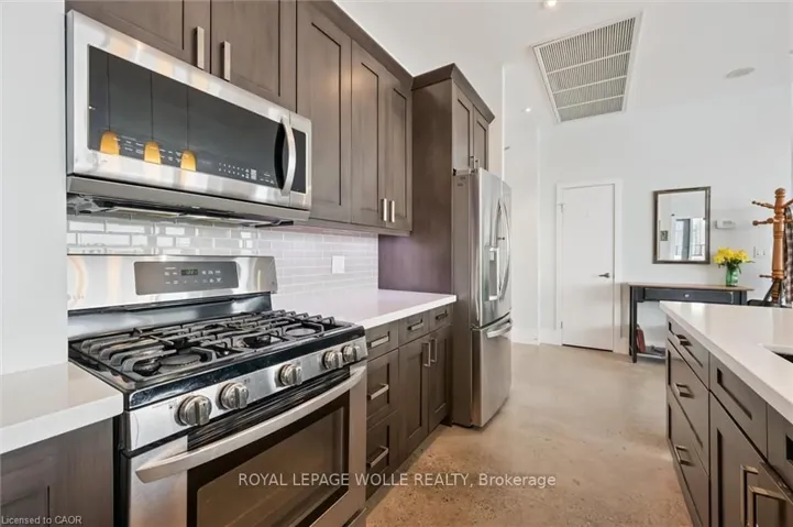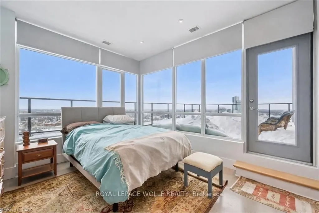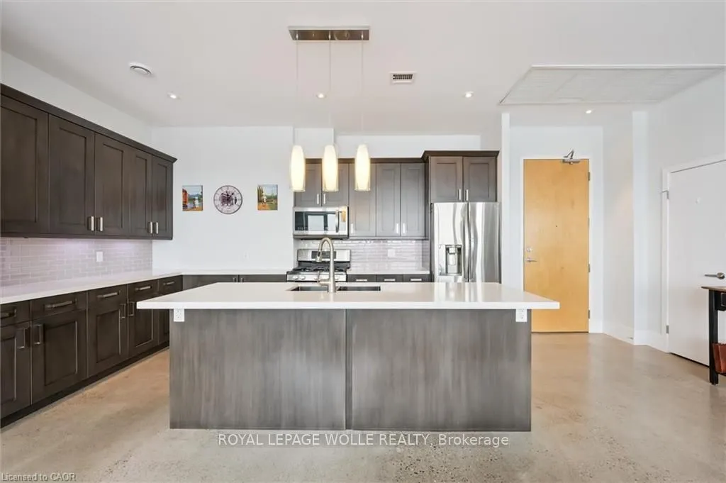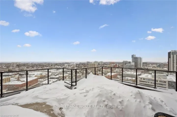 Welcome to this stunning 3-bedroom, 2-bathroom penthouse condo offering approximately 1,400 sq ft of modern urban luxury. Perched highabove the city, this rare suite features a massive wrap-around balcony with sweeping views and even a gas hook up for your BBQ or fire table -perfect for entertaining, relaxing, and soaking in the downtown skyline. Inside, the unit showcases polished concrete floors throughout for asleek, contemporary feel, complemented by custom cabinetry and premium finishes. The chef-inspired kitchen is equipped with quartzcountertops, a gas stove, and a fridge with built-in water and ice, blending style and functionality seamlessly. Enjoy the convenience of upscalebuilding amenities including a fully equipped gym, stylish party room, private theatre room, and a beautifully designed rooftop terrace completewith planters, BBQs, and outdoor dining areas. An exceptional opportunity to own a spacious penthouse in one of downtown Kitchener’s mostsought-after buildings – steps to transit, tech hubs, dining, and entertainment.