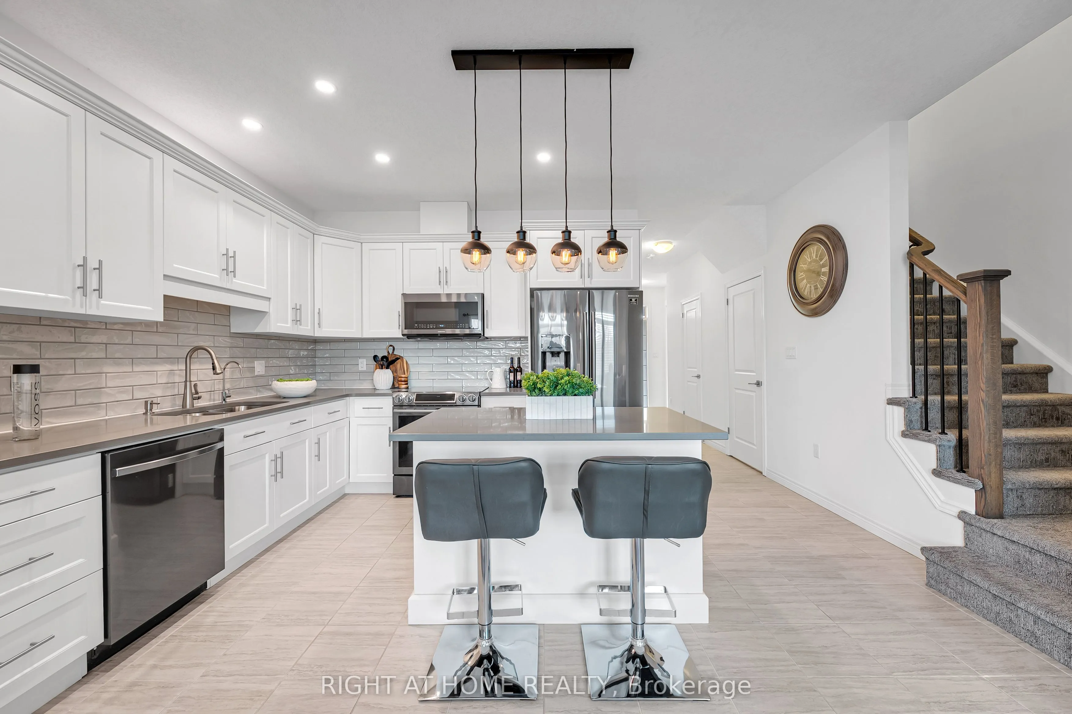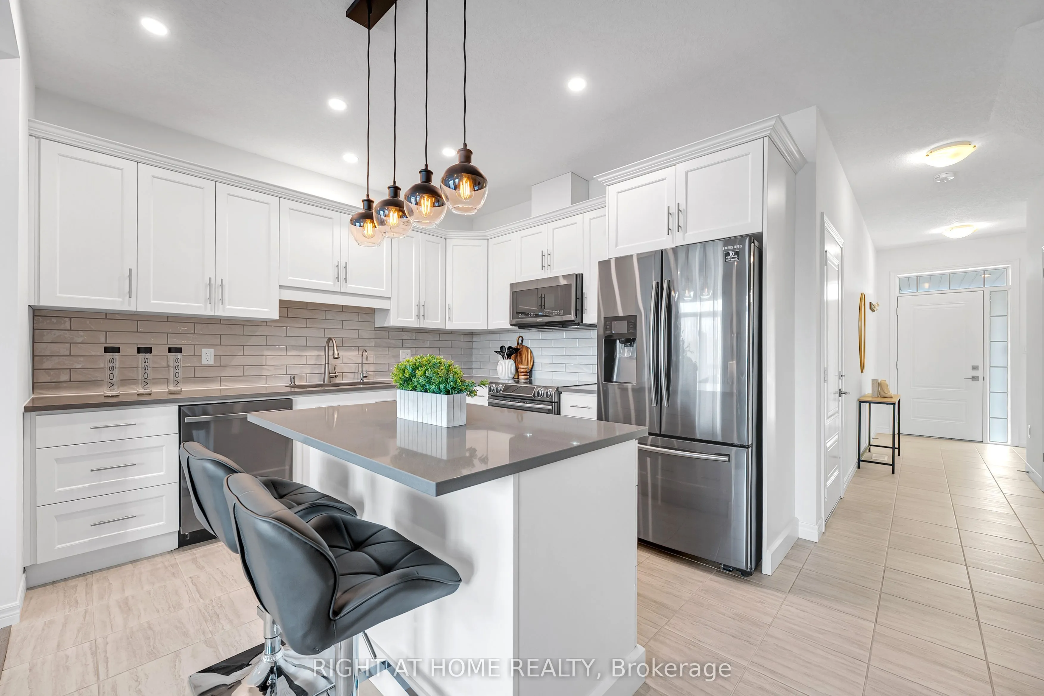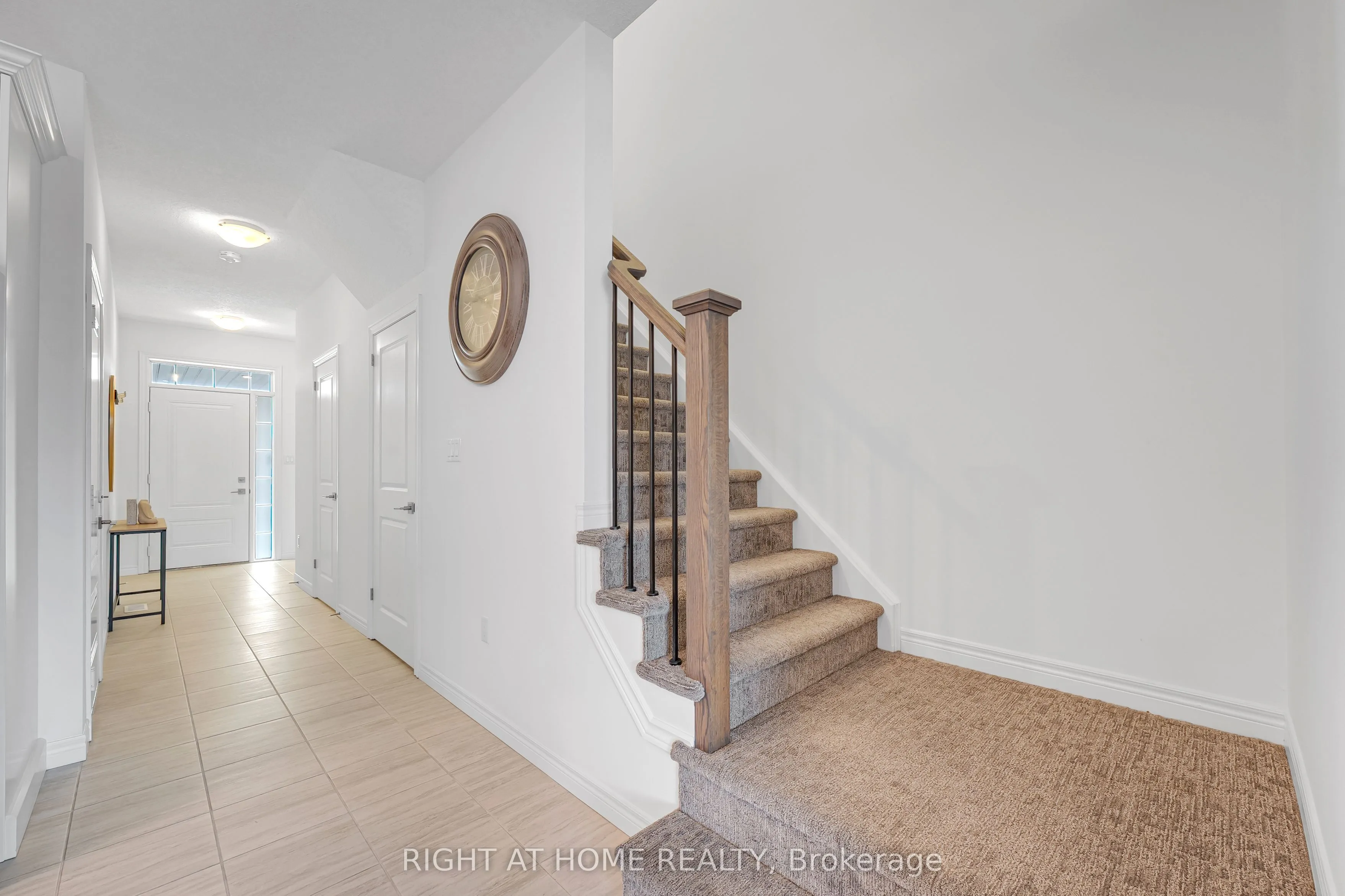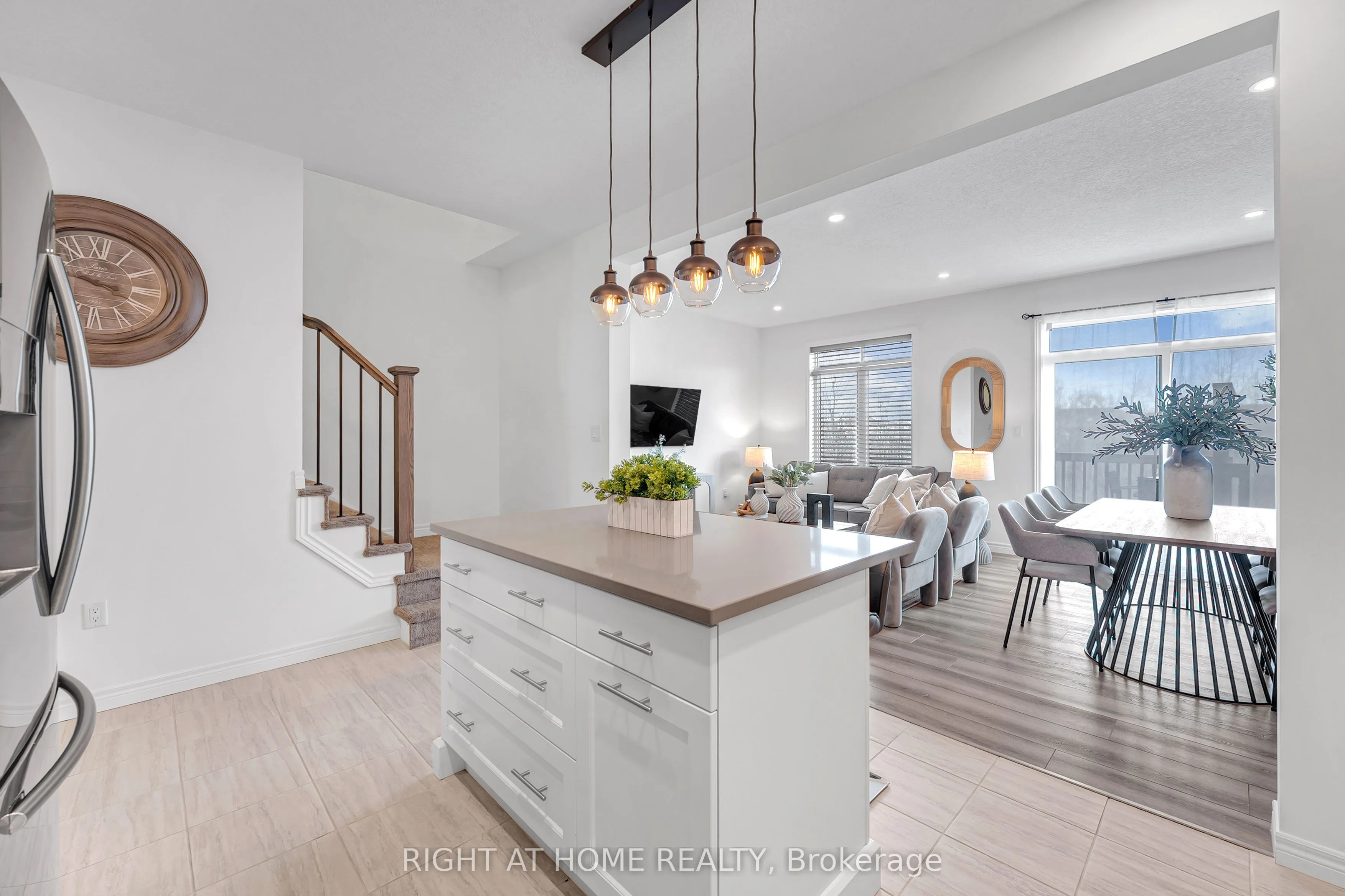 Beautiful two-storey townhouse located in Guelph’s desirable east end, offering a modern design and spacious layout ideal for family living. The main floor features 9-foot ceilings, stylish finishes, and an open-concept layout filled with natural light. The upgraded kitchen includes quartz countertops, a large island, premium appliances, and ample cabinet space for storage. The second floor offers three generously sized bedrooms, while the fully finished walk-out basement adds a large fourth bedroom, a full bathroom, and a bright living space with oversized patio doors and large windows. This home includes three full bathrooms plus a main floor powder room, with 8-foot ceilings on both the second level and basement enhancing the open feel throughout. Backing onto a conservation area and walking trail, enjoy peaceful ravine views from your backyard. Additional features include an extra-deep attached garage with room for a full-size vehicle and additional storage, plus two laundry areas for added convenience. Move-in ready and beautifully maintained, this is an exceptional opportunity to own a stylish home in a sought-after location.