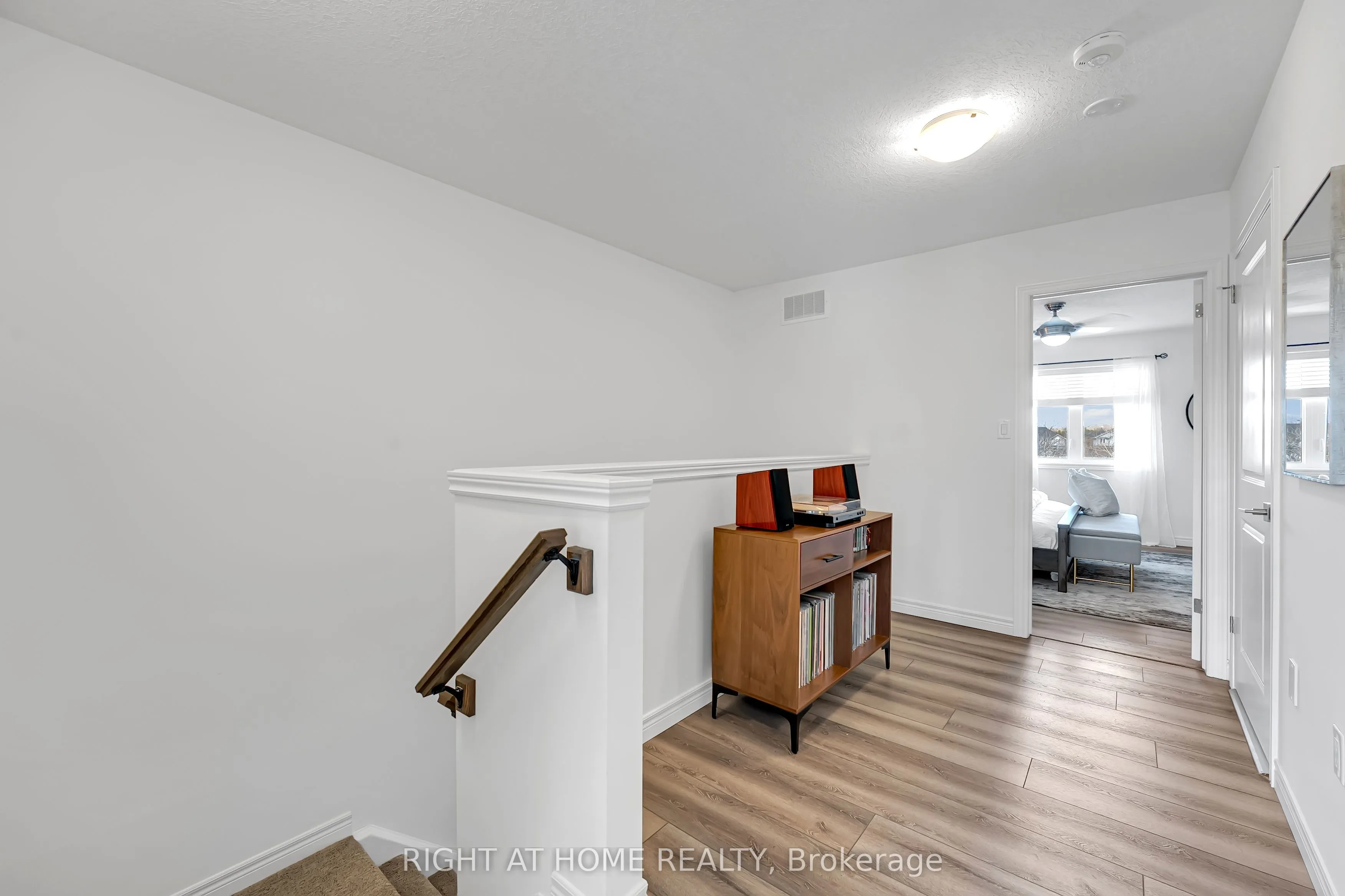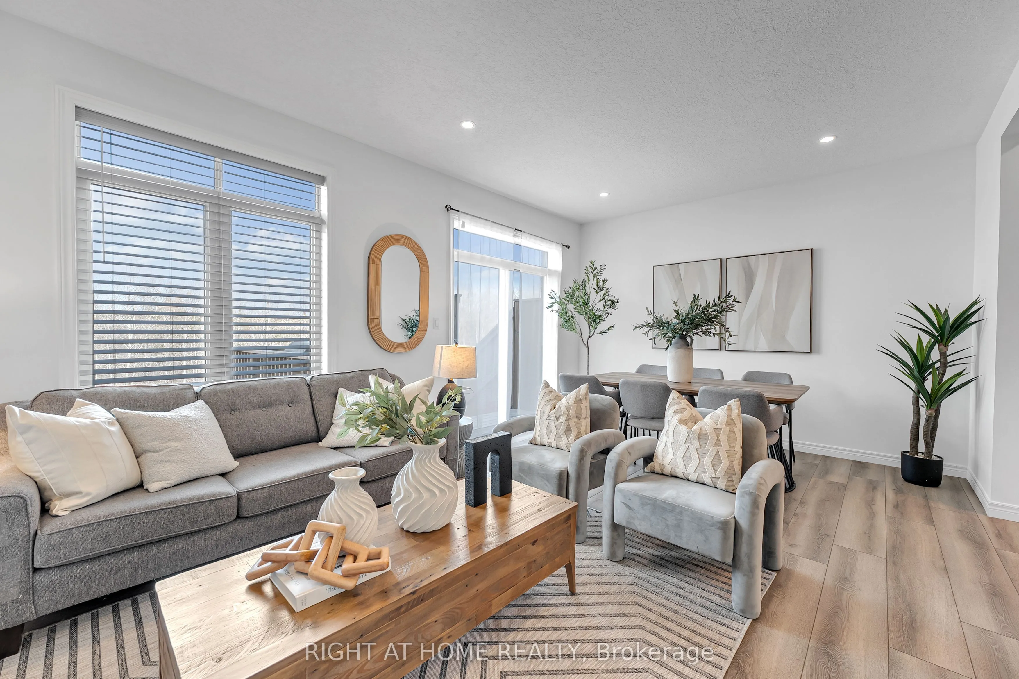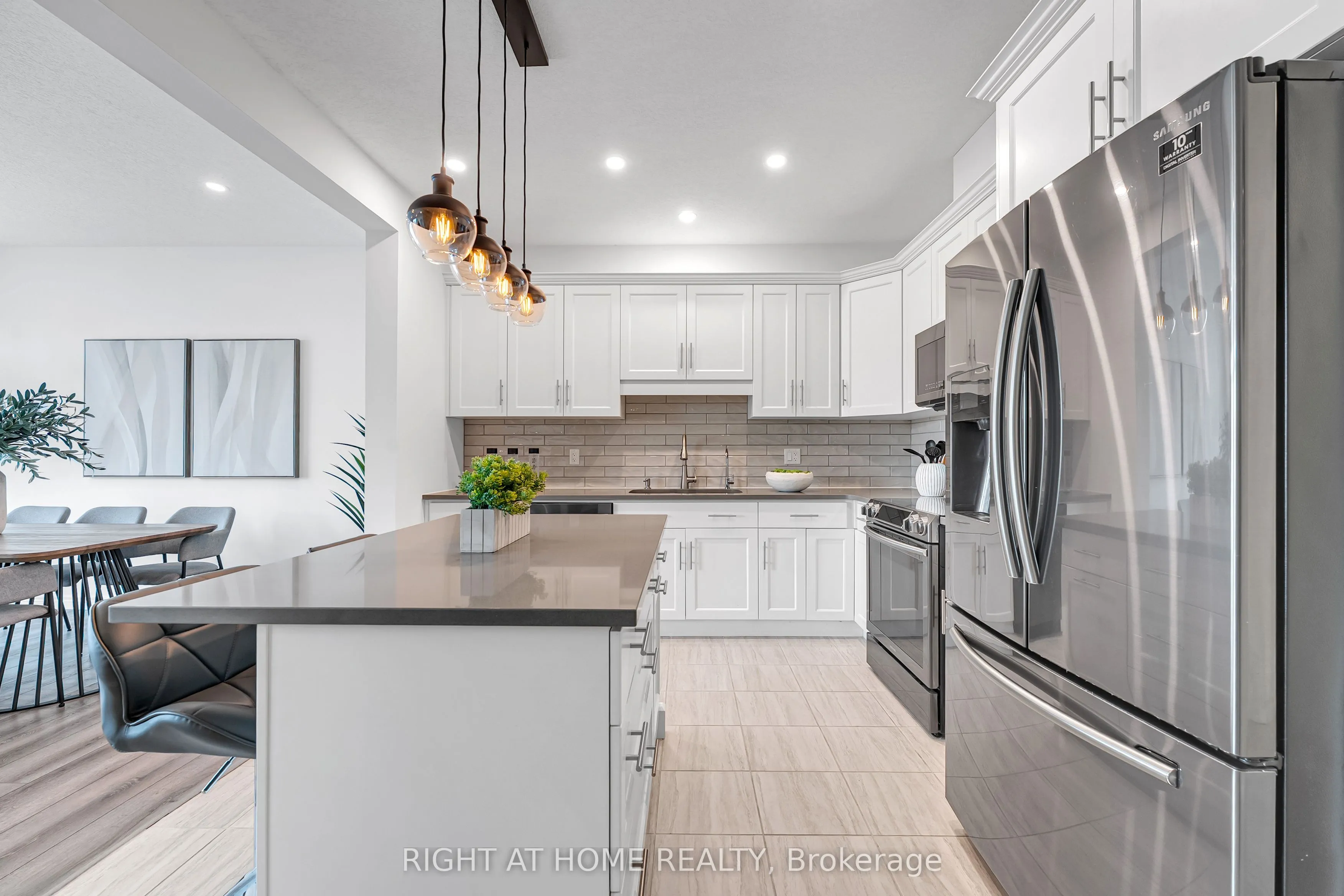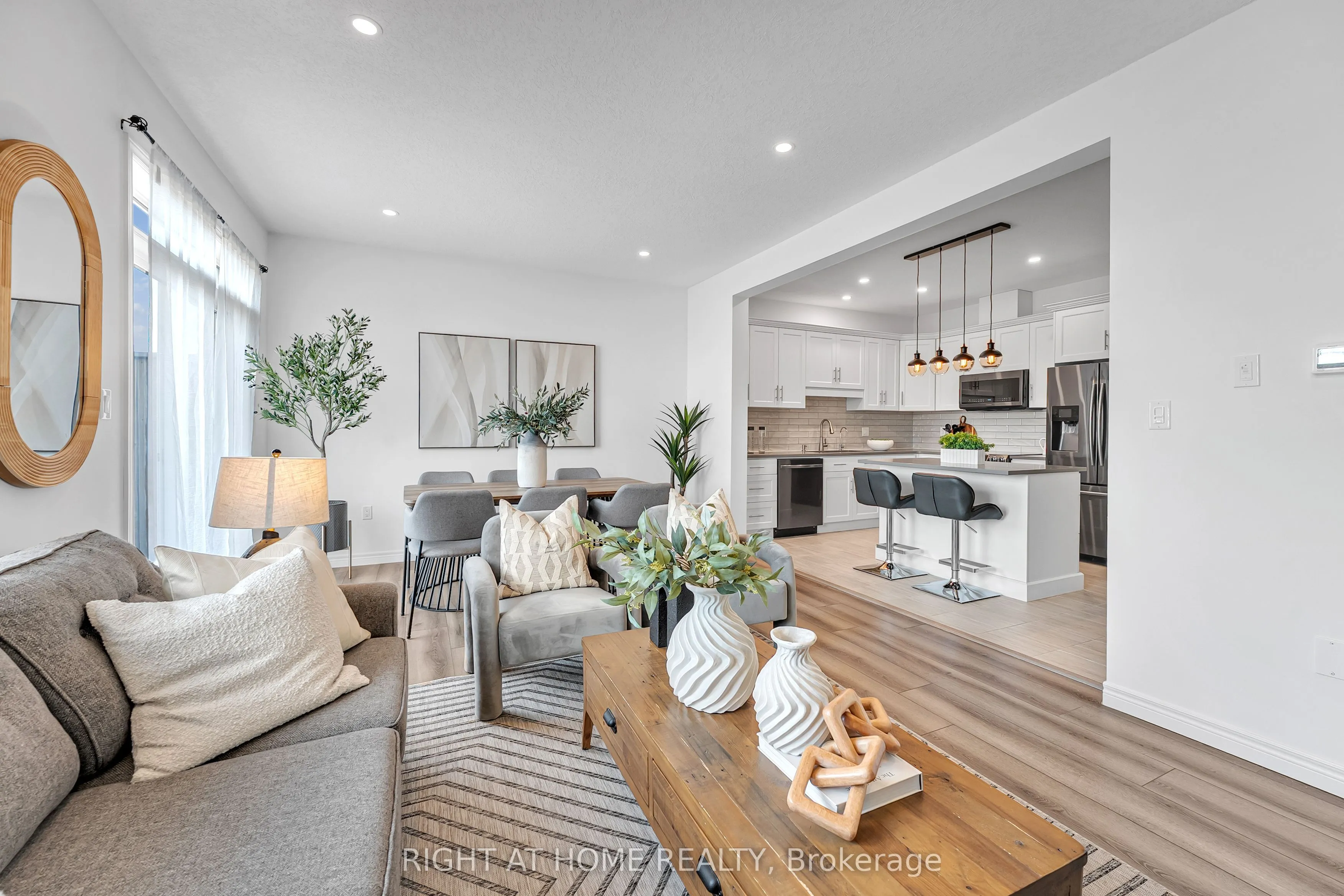 Beautiful two-storey townhouse located in Guelph’s desirable east end, offering a modern design and spacious layout ideal for family living. The main floor features 9-foot ceilings, stylish finishes, and an open-concept layout filled with natural light. The upgraded kitchen includes quartz countertops, a large island, premium appliances, and ample cabinet space for storage. The second floor offers three generously sized bedrooms, while the fully finished walk-out basement adds a large fourth bedroom, a full bathroom, and a bright living space with oversized patio doors and large windows. This home includes three full bathrooms plus a main floor powder room, with 8-foot ceilings on both the second level and basement enhancing the open feel throughout. Backing onto a conservation area and walking trail, enjoy peaceful ravine views from your backyard. Additional features include an extra-deep attached garage with room for a full-size vehicle and additional storage, plus two laundry areas for added convenience. Move-in ready and beautifully maintained, this is an exceptional opportunity to own a stylish home in a sought-after location.