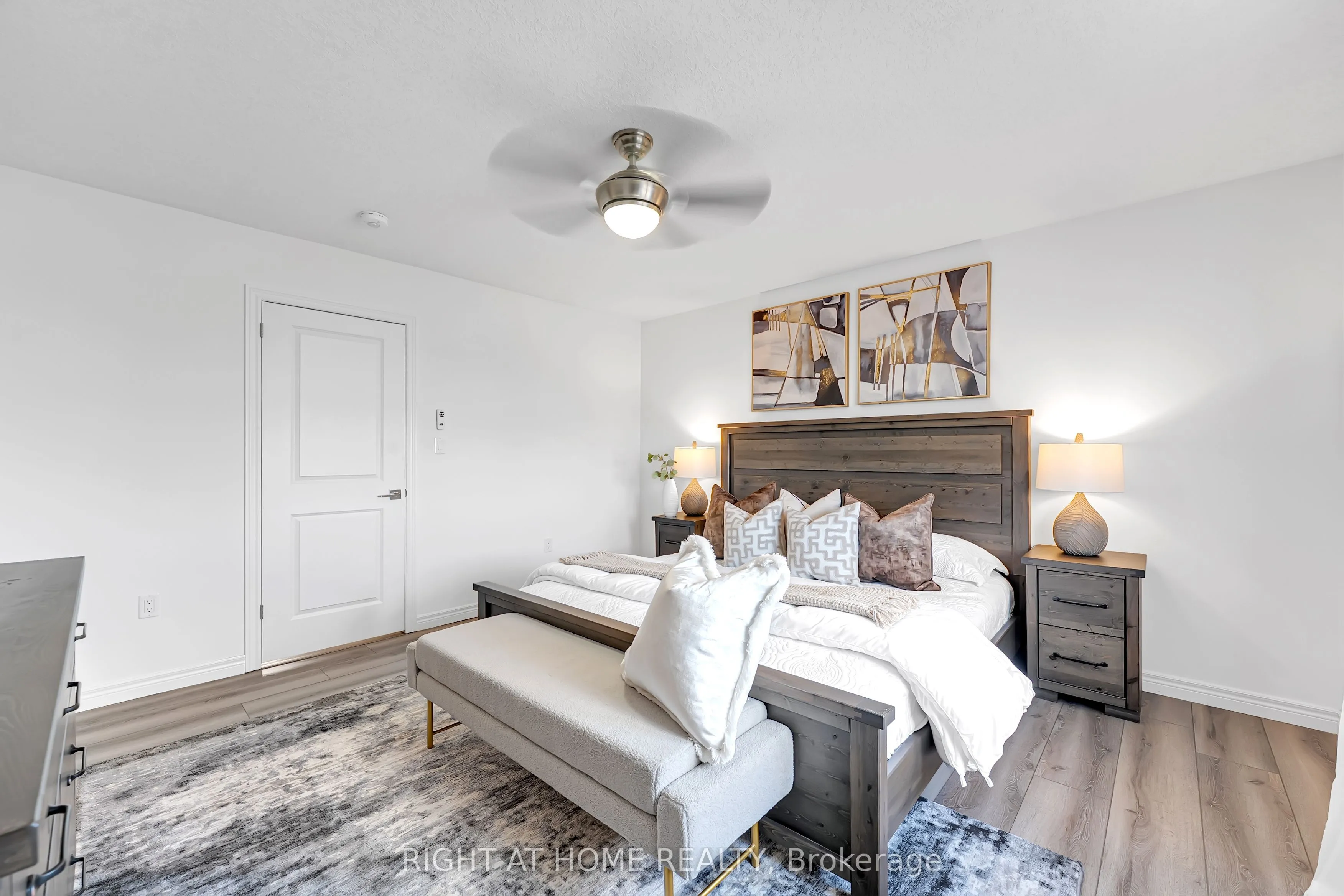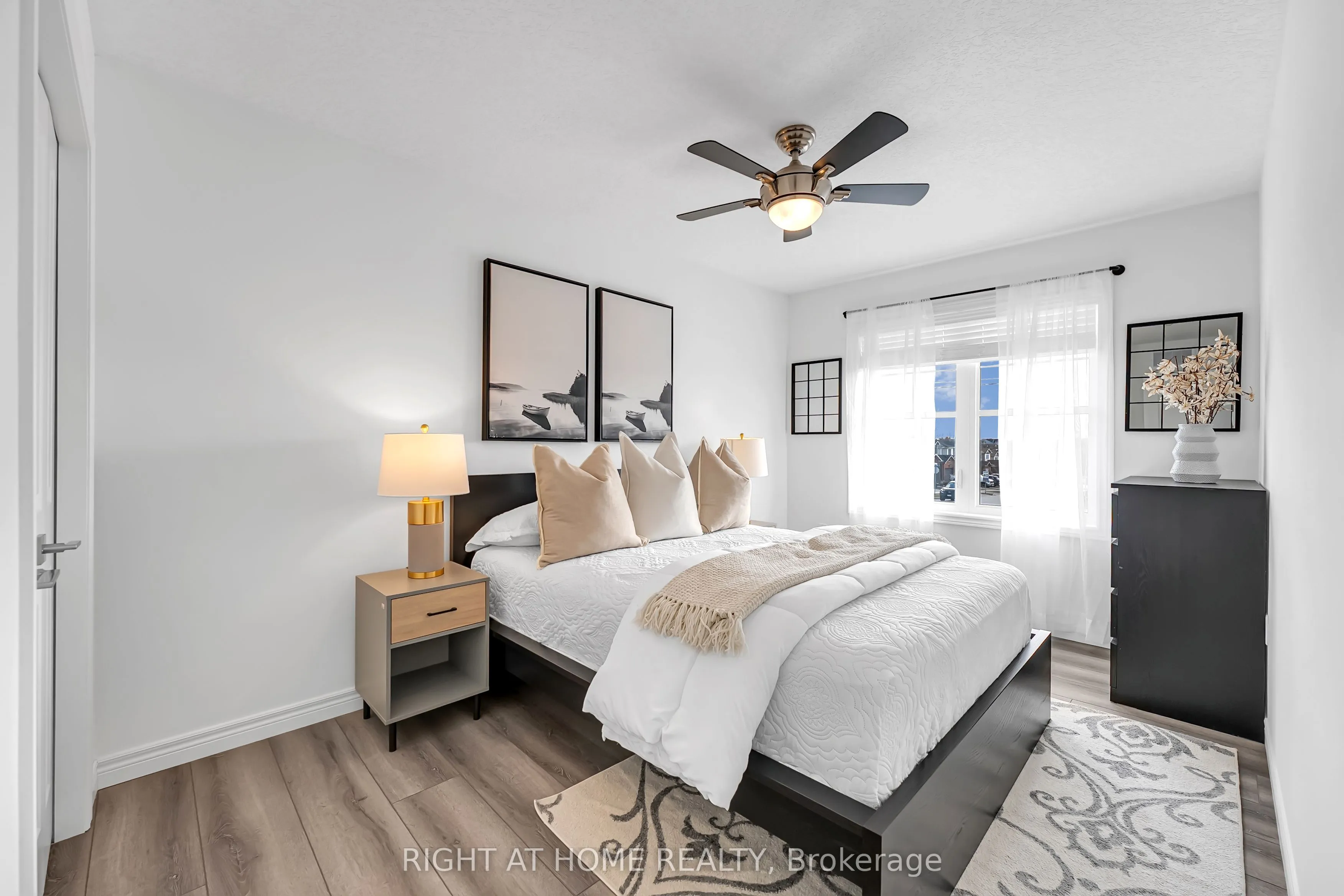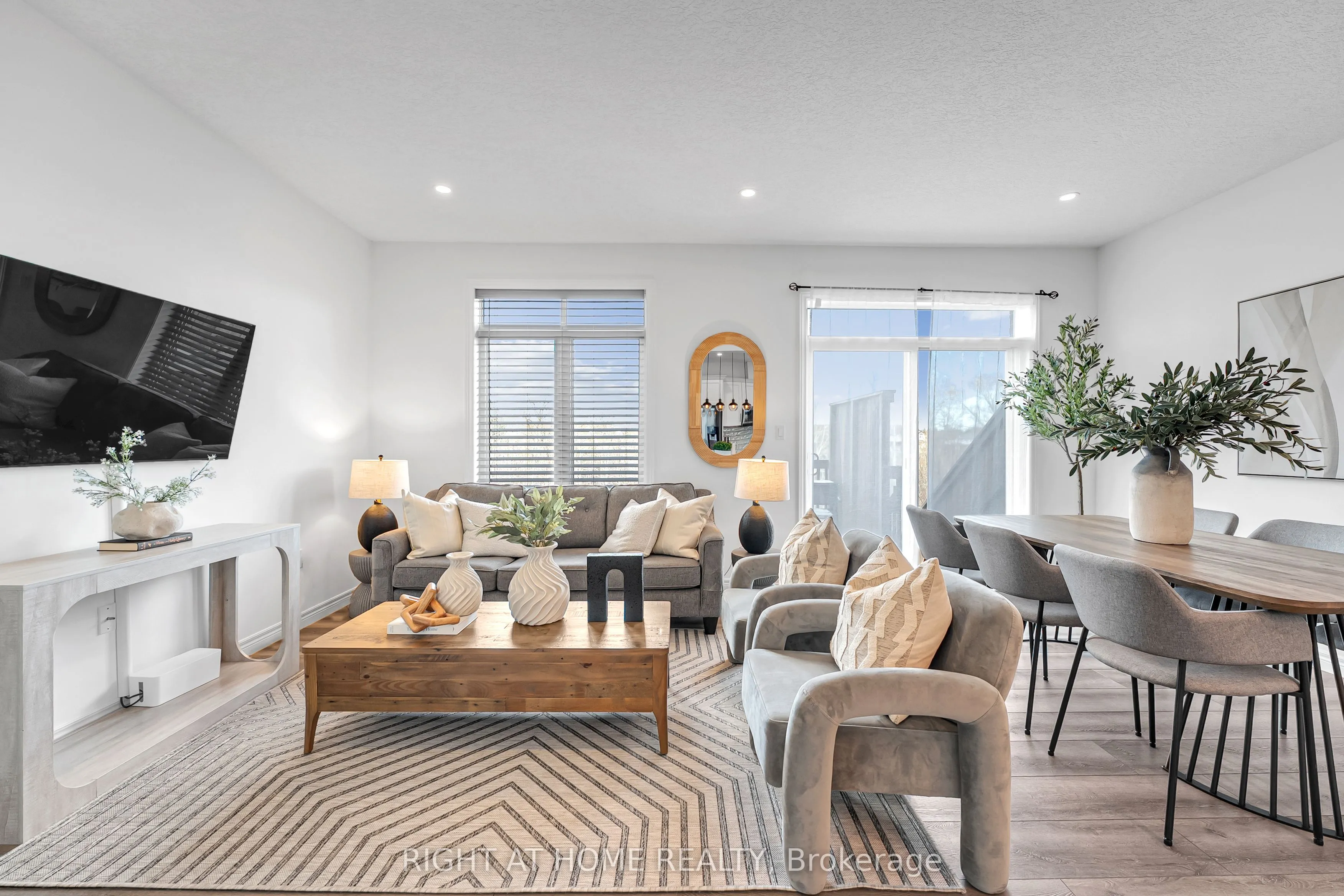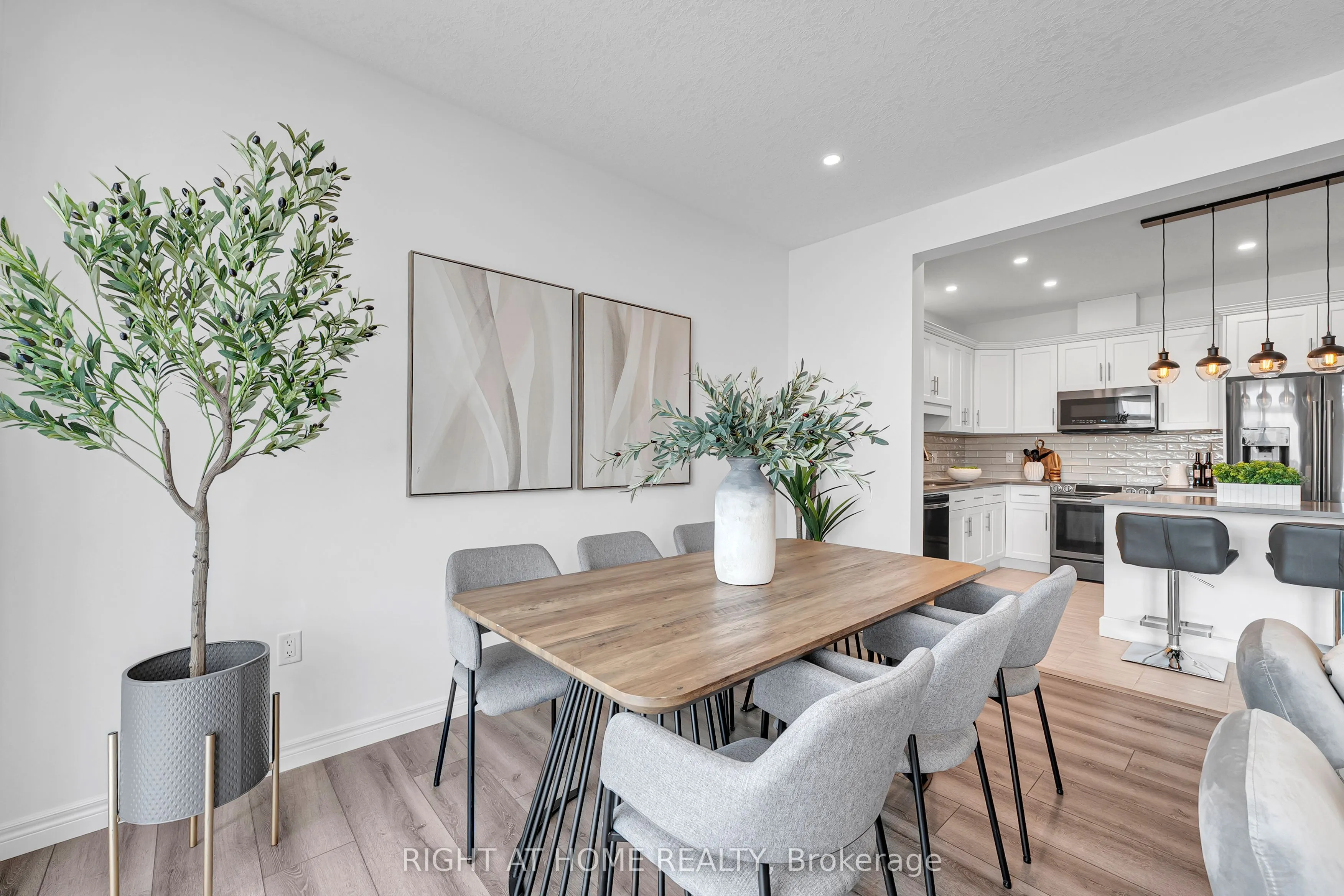 Beautiful two-storey townhouse located in Guelph’s desirable east end, offering a modern design and spacious layout ideal for family living. The main floor features 9-foot ceilings, stylish finishes, and an open-concept layout filled with natural light. The upgraded kitchen includes quartz countertops, a large island, premium appliances, and ample cabinet space for storage. The second floor offers three generously sized bedrooms, while the fully finished walk-out basement adds a large fourth bedroom, a full bathroom, and a bright living space with oversized patio doors and large windows. This home includes three full bathrooms plus a main floor powder room, with 8-foot ceilings on both the second level and basement enhancing the open feel throughout. Backing onto a conservation area and walking trail, enjoy peaceful ravine views from your backyard. Additional features include an extra-deep attached garage with room for a full-size vehicle and additional storage, plus two laundry areas for added convenience. Move-in ready and beautifully maintained, this is an exceptional opportunity to own a stylish home in a sought-after location.