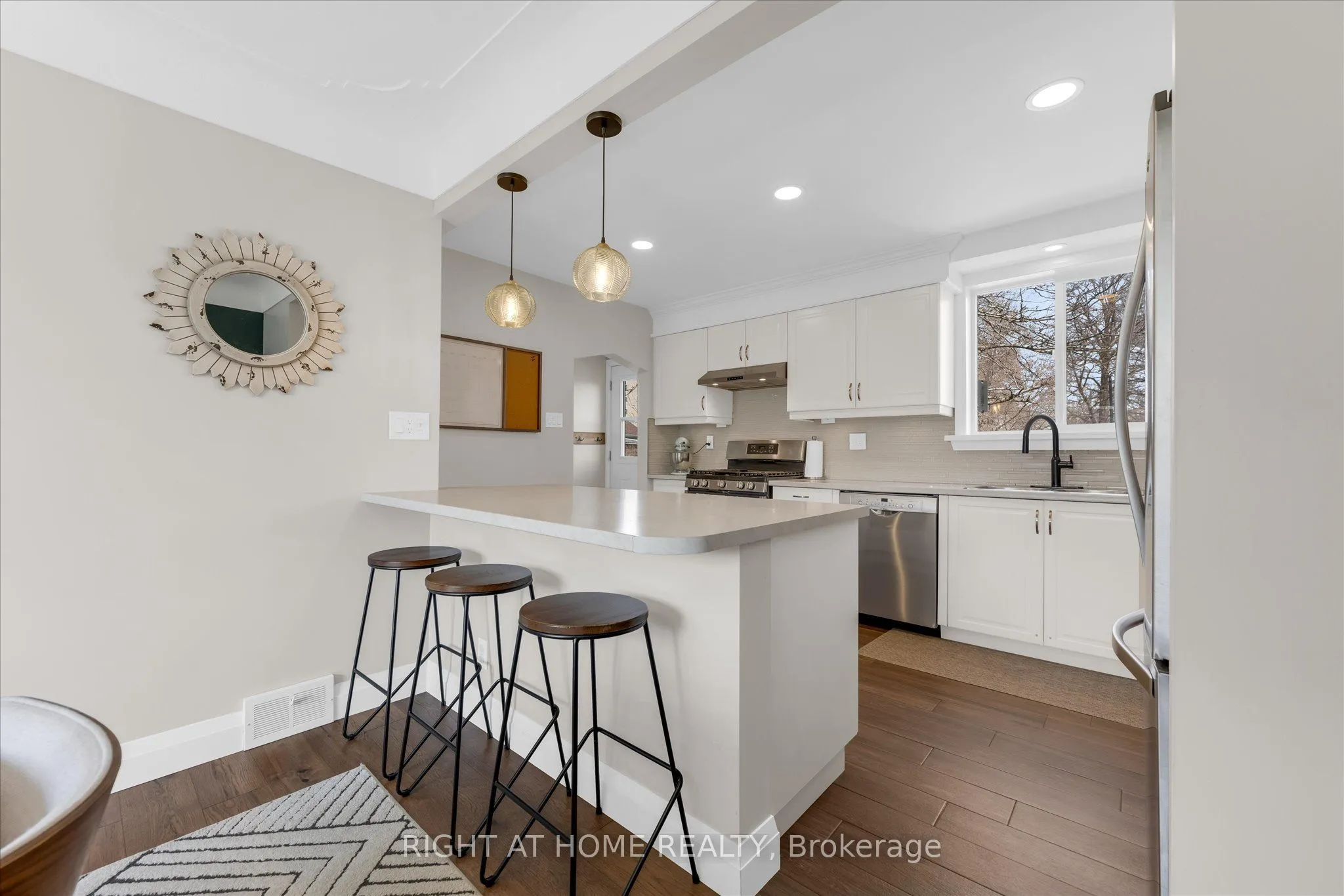 Bright and tastefully finished two storey home on a quiet cul-de-sac in desirable Stoney Creek neighbourhood. Steps to Green Acres Park and community pool. Walking distance to downtown Stoney Creek and Eastgate Mall. Property offers a private, oversized backyard with shed/workshop and plenty of potential to build your outdoor oasis. Mature trees and shrubbery throughout. Exterior features traditional red brick finish with black and white accents and large driveway. A blend of mid century character and modern updates compliment a well thought out floor plan with large living spaces and bedrooms. Finished basement with spacious laundry room and rec room featuring projector and surround setup. Recent updates include roof (2025), decking (2019), windows and doors (2013-17) and kitchen (2018).