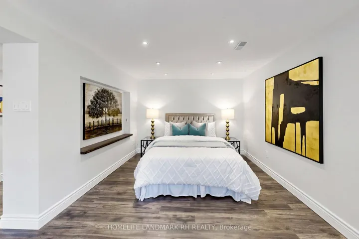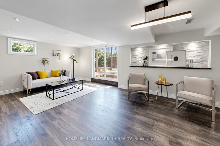 Gorgeous Detached Home w/ Double Car Garage in child safe Cul-De-Sac. Premium 60 Ft x 125 Ft Pie shaped Lot w/80 Ft rear. Over 3500 S.F. living space including Fin. Walk-Out Basement . $$$ Upgrades: Hardwood Flooring & Pot Lights throughout. Large Living / Dining with Crown Moulding. Beautiful Floating Staircase w/Glass Railing. Gourmet Kitchen w/ Granite Countertop & Breakfast Bar, Backsplash, Valance Lighting & Pantry. Large Primary Bdrm w/4 Pcs Ensuite and His & Hers Closets. Separate Entrance W/O Basement Apartment w/2 bedrooms, Rec, Sitting, Dining & Study, the 2nd Kitchen and the 2nd Laundry. Large Private South Facing backyard w/huge Deck w/Built-In Pergolas. Double Car Garage w/Built-In organizers & Epoxy Flooring. Long Driveway can park 6 cars. Close to Public Transit, Park, Schools & trails. Mins to Shopping Plaza, Golf, supermarkets and shopping. Close to Hwy 407 & 404. ** High Ranking Thornhill Secondary School.