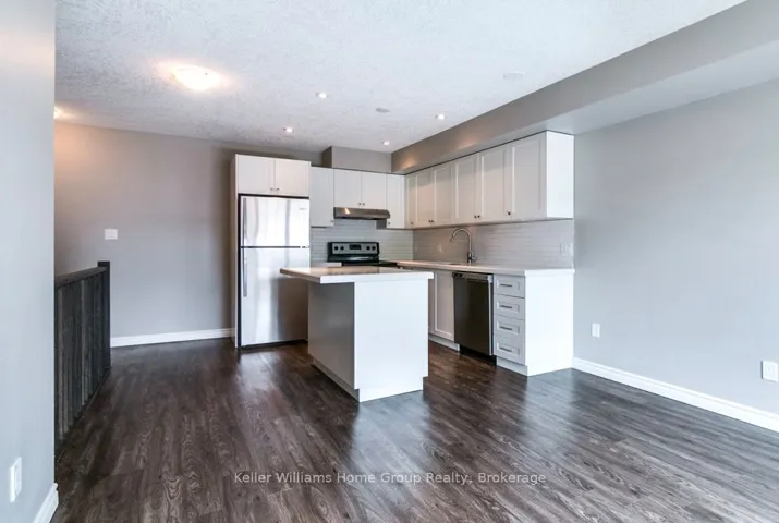 Welcome to this beautiful 2 bedroom, 1.5 bathroom stacked townhouse with water resistant Vinyl plank Laminate flooring, located on a desirable , quiet and family friendly neighbourhood, close to Hwy 8 and Homer Watson Pkwy, walking distance to school, park and shopping. This is a 3 storey building fully upgarded, main floor is an open concept Kitchen, Living / Dinning room, a gorgeous White kitchen with ample cabinet space and quartz counter top and a centre island leading to a balcony. On this floor you will find a 2 pc washroom, utility room with an owned Tankless Water heater system to maximize the heat efficiency. Top floor boasts a sizeable pricipal room with his and her closts, opens to another balcony and a 2nd bedroom with double closet and a 4 piece Washroon, in suite laundry and a linen closet.This unit is almost carpet free on both levels, except on the stairs for your safety.