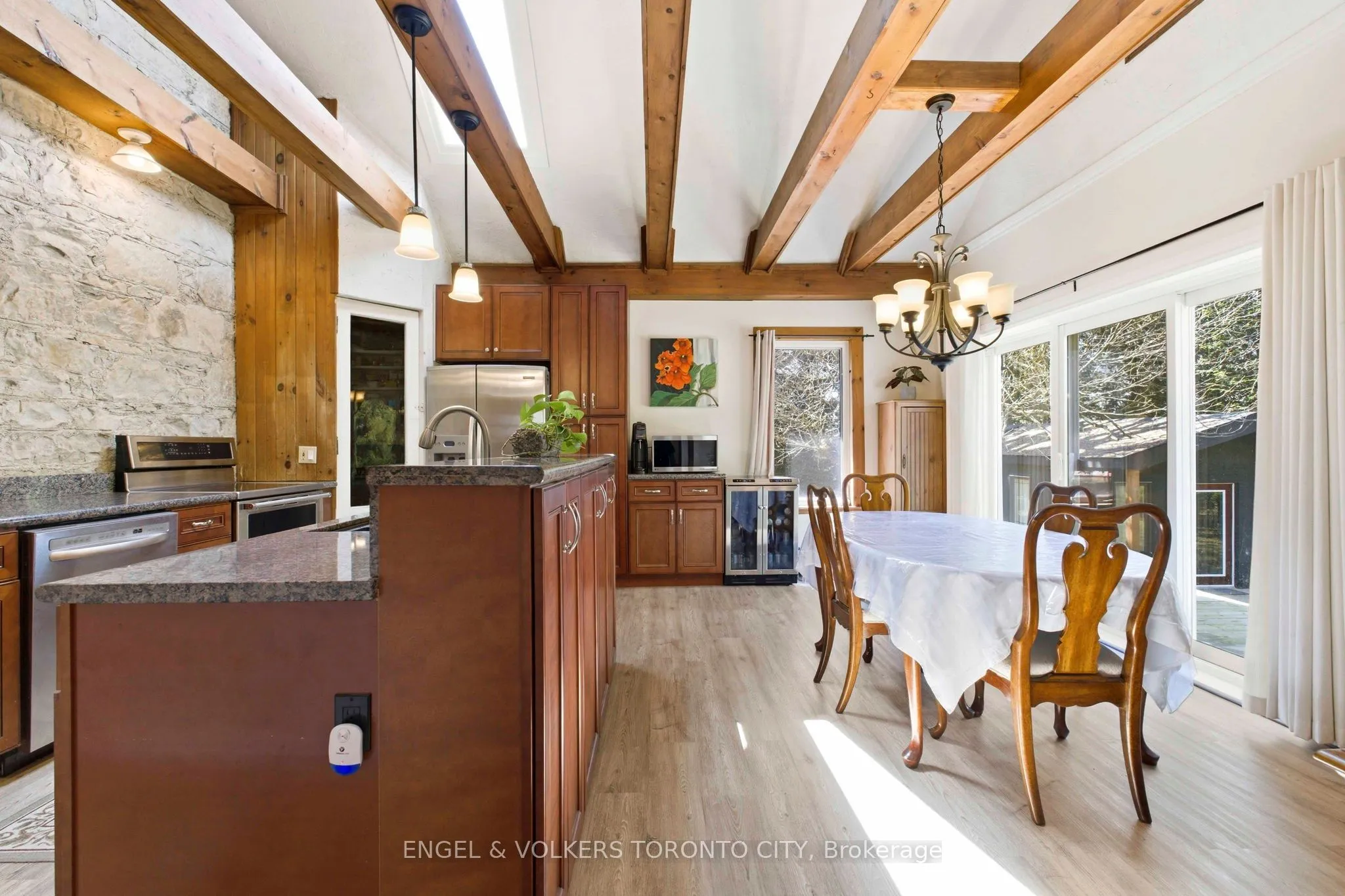 A rare opportunity to own two self-contained residences within one property, set on approximately 4.3 acres in desirable Rural Erin with agricultural/residential zoning. This two-storey home offers flexibility for multigenerational living, income potential, or lifestyle use.The main residence features 3 bedrooms, including a primary suite with 5-piece ensuite and walk-in closet, a large eat-in kitchen with stainless steel appliances and expansive windows overlooking the grounds, and an open-concept living and dining area anchored by a wood stove. Functional access between living spaces is supported by a main-floor laundry connection to the secondary residence.The bungalow-style in-law suite includes 2 spacious bedrooms, a 5-piece bath, its own eat-in kitchen, and a bright living room with fireplace and walk-out to a private deck, providing autonomy and privacy. Outdoors, the property expands the lifestyle offering with a detached insulated studio and lofted shed, both with electricity, a spring-fed pond, and a 24-foot round solar-heated pool. With ample parking and over four acres to utilize, the setting supports hobby farming, recreation, or future visioning. Property size approximately 3,000-3,500 sq ft with an unfinished basement and generous lot frontage. A distinctive rural holding suited for buyers seeking space, versatility, and long-term potential.