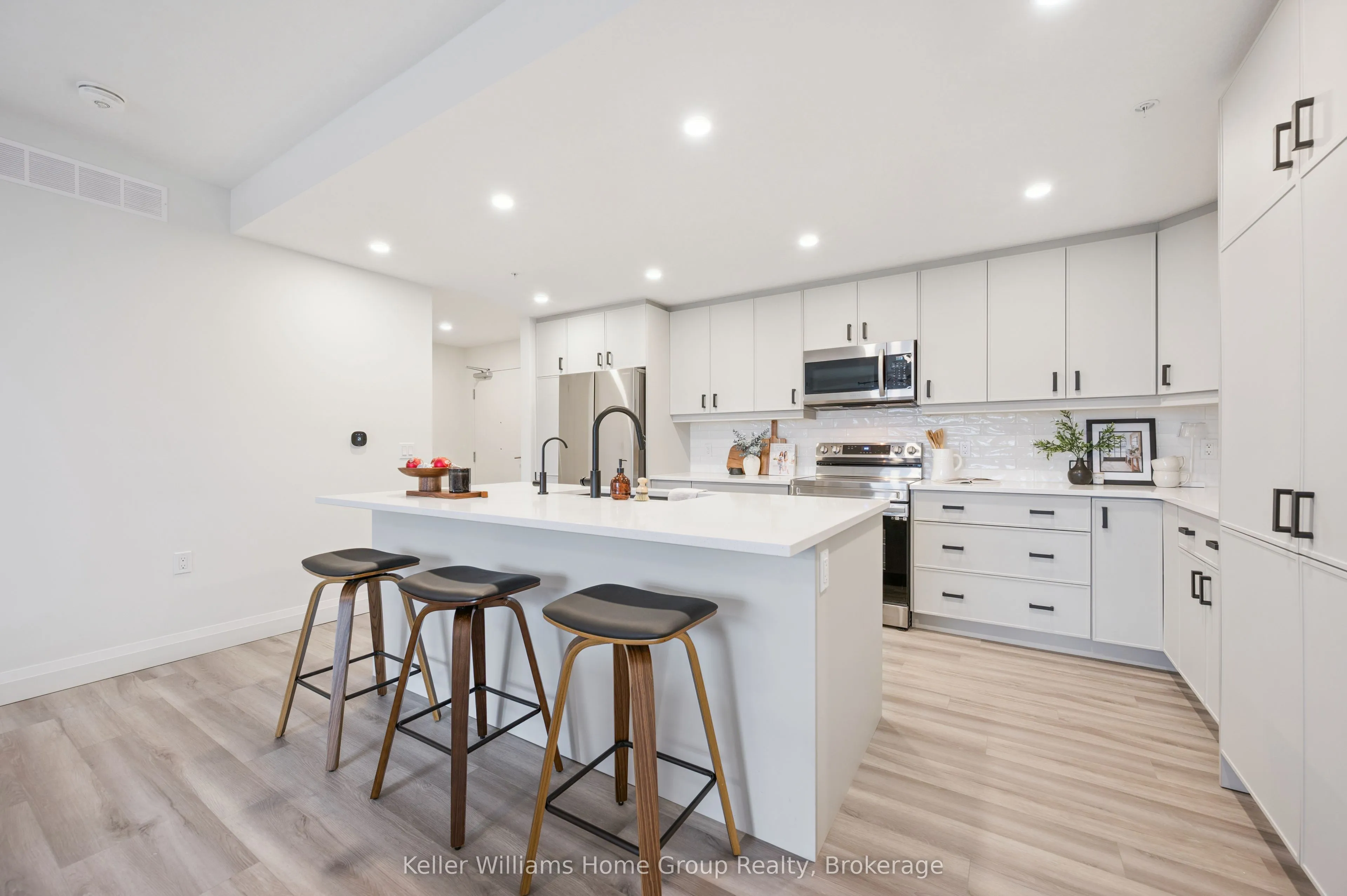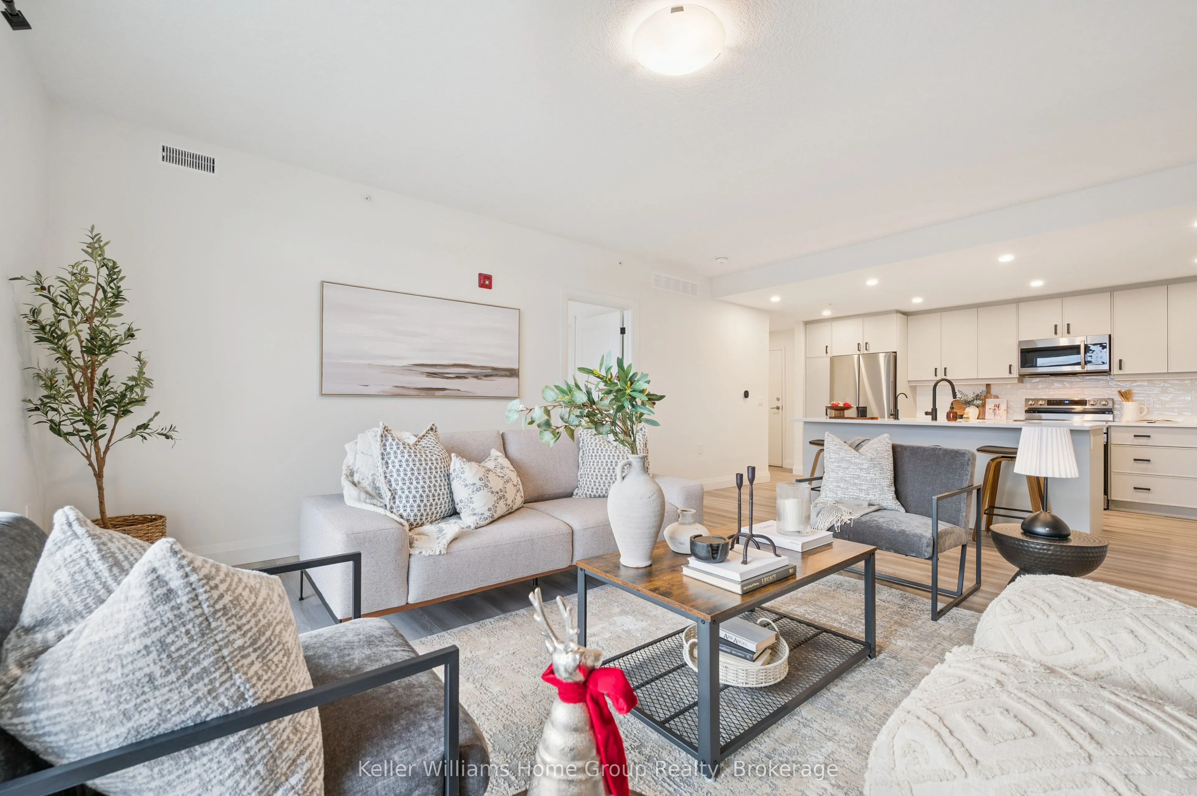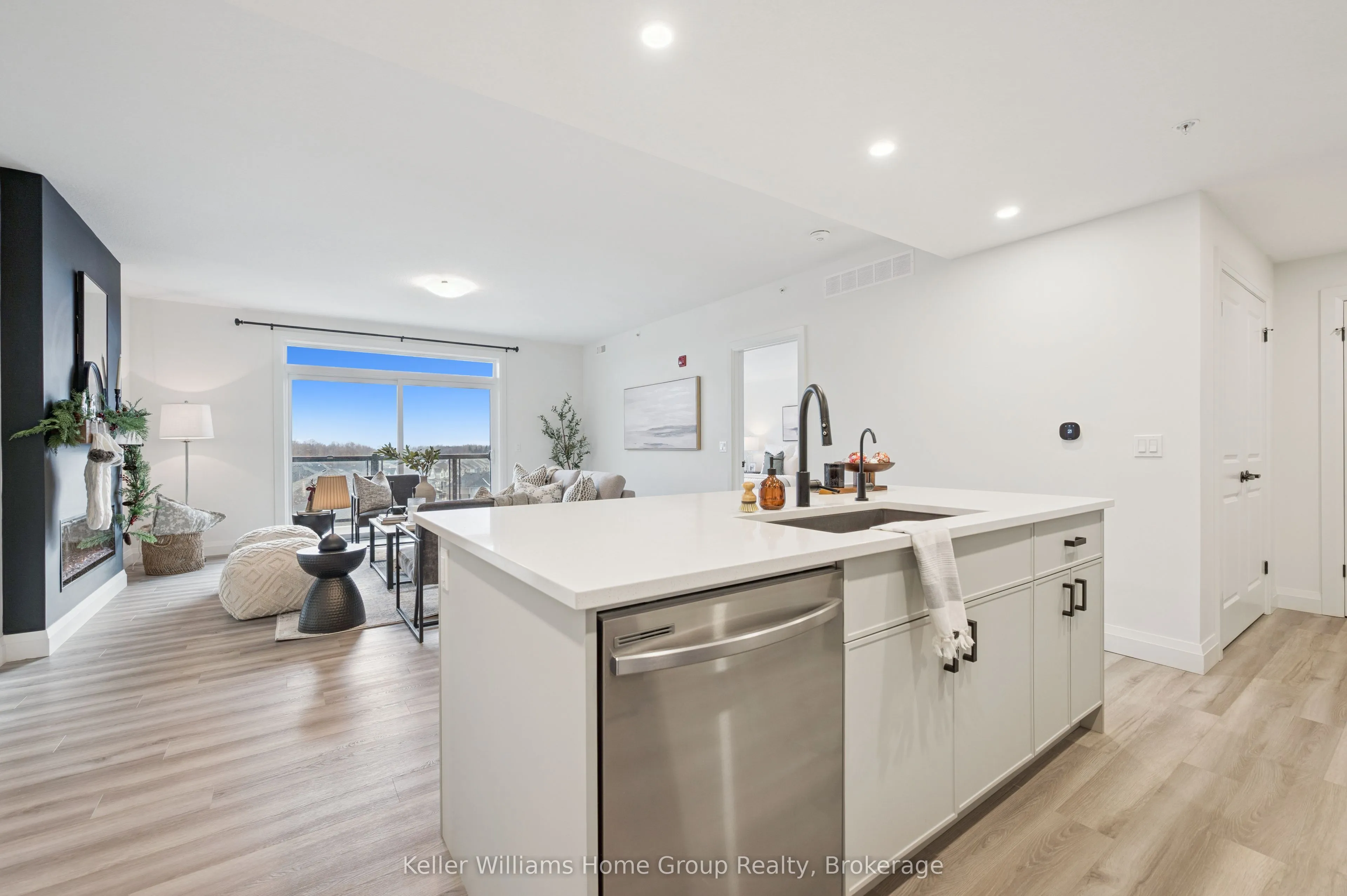 Arguably one of the nicest condo units within 99B Farley Rd., for it’s top floor location with elevator access, privacy, south-west exposure, spacious floor plan and storage offerings. This 1275 square foot condo offers 2 generous bedrooms, 2 full baths and an underground parking spot with exclusive locker space. Quality built in ‘2024 by Keating, this condo has been designed with high quality finishes, ample parking, storage and an eco-friendly Geothermal climate control system for ease of utility costs. It’s functional open-concept floor plan offers a very generous kitchen with centre island and breakfast bar, elegant granite countertops and waterfall off island, complete with stainless steel appliances. A seamless flow to the large bright living room, with built-in fireplace and beam mantle, leads out sliding doors to the large balcony overlooking the rear of building (opposite the parking). This sought after layout offers two generous bedrooms, primary bedroom with it’s own full ensuite bath and walk-in closet. Second bedroom enjoys it’s own use of another full bathroom. In-suite laundry room offers additional storage within unit. Various tasteful updates added throughout this unit, make it a wonderful home for luxury and comfort. The underground parking is right next to elevator and alongside has exclusive large storage unit. Located close to the new Groves Hospital and medical clinics, new public school, parks and walking trails and just a short drive to downtown Fergus and Elora for all they have to offer.