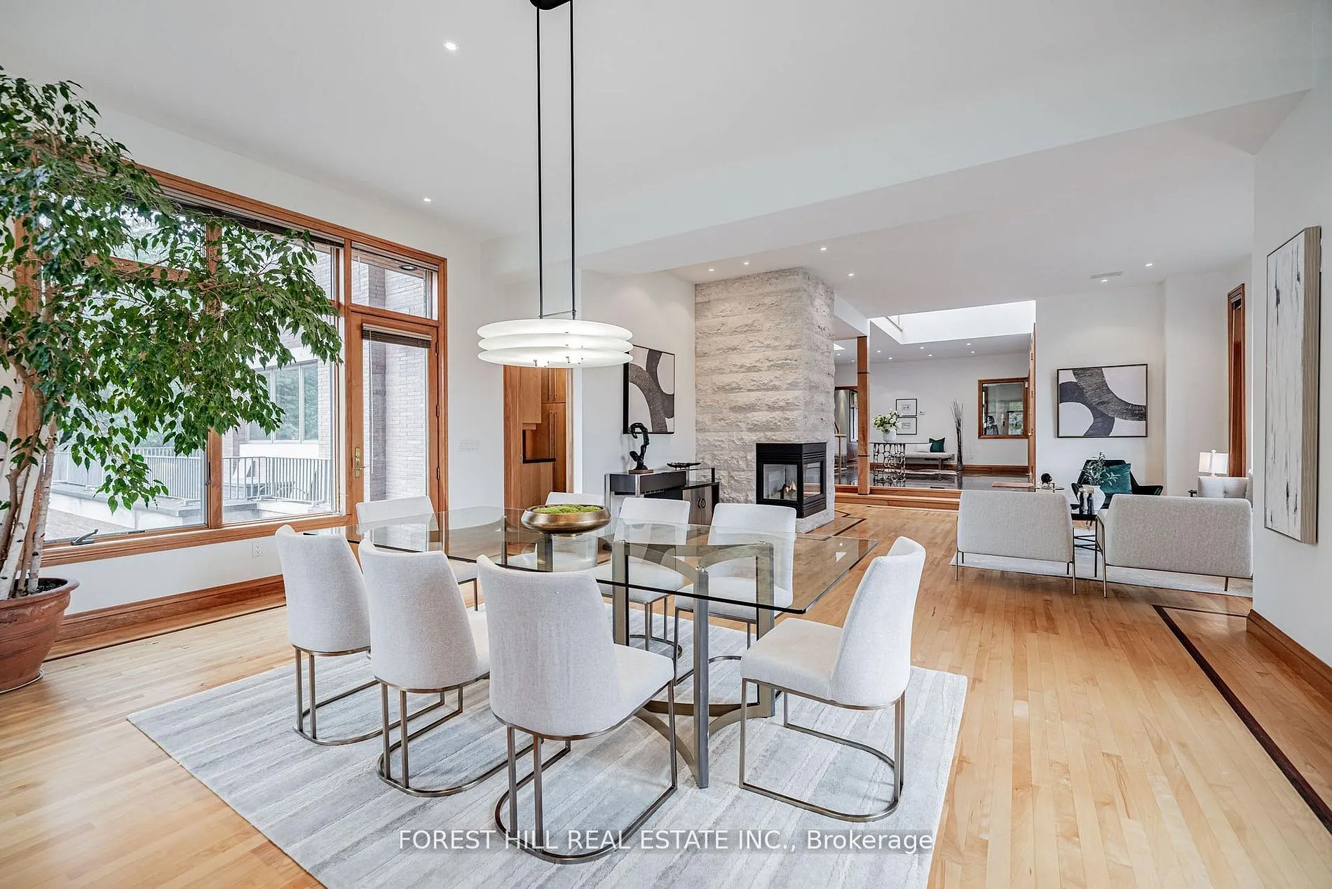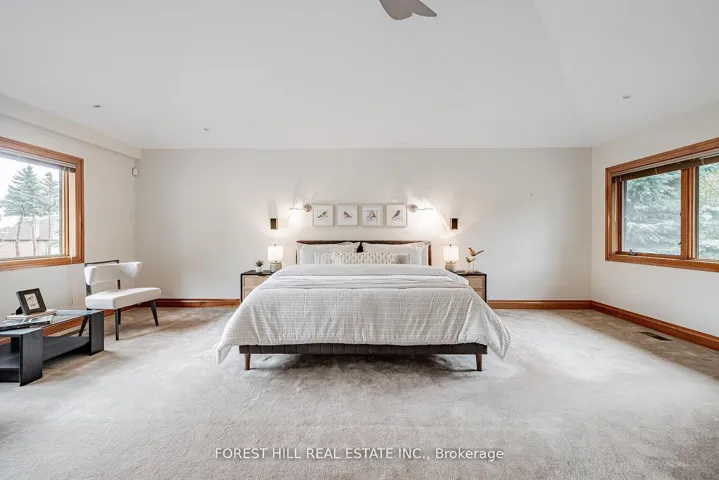 **Architectural**——- BOLD & SOLID & MODERN & UNIQUE ——- meticulously designed by Toronto’s premier residential architect, “Lorne Rose”, Inspired by Frank Lloyd Wright’s iconic Prairie Style, this architectural gem blends seamlessly into its strong horizontal lines, open floor plans, and connection to nature, and this Prairie-Style Home was built for its owner–has been loved by its owner for many years. This executive home residence boasts an elegant circular driveway with 3cars garage, resort-style patio wrapped both E.S sides of yard. Inside, a breathtaking 20ft cathedral ceiling with skylights entrance foyer, the living room showcases a stunning floor-to ceiling stone gas fireplace, generous principal room with hi ceiling, perfect for entertaining. The dining room offers a stunning-lush garden views with natural light, easy access to a terrace for retreat. The spacious-private family room features a wood-burning fireplace with abundant natural sun lights. The chef-inspired kitchen is equipped with premium appliance and a large eat-in area ideal for family gatherings, and private access to a wrap-around terrace complete with a pizza oven. Upstairs, providing airy-atmosphere from multi-skylights & ample windows all around. The luxurious primary suite offers a cathedral ceiling, fireplace including its own private ensuite and walk-in closet. The additional bedrooms have all double closets, lots of windows for natural sunlights, providing comfort and functionality. The fully finished lower level with separate entrance is designed for entertaining and relaxation, featuring a large recreation room, 2 bed rooms, a spacious laundry room, and a full bathroom.