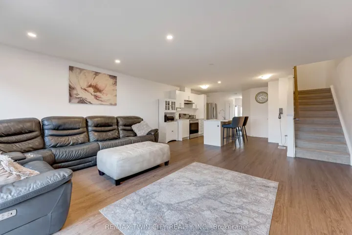 Welcome to 91 Pony Way, a stunning, move-in ready freehold townhouse that feels just like new, perfectly situated in the highly desirable and family-friendly Huron Park neighbourhood of Kitchener. Step inside to discover a bright and airy open-concept main floor, enhanced by durable, contemporary vinyl flooring that flows seamlessly throughout. Designed with both living and entertaining in mind, the spacious layout effortlessly connects the living and dining areas, creating a warm and inviting atmosphere filled with natural light. Beautifully appointed kitchen featuring a large center island, sleek cabinetry and stainless steel appliances. From the Living area, step out to the finished deck overlooking the backyard, an ideal space for summer barbecues, morning coffee or relaxing evenings. Upstairs, there are 3 generously sized bedrooms, including a luxurious primary retreat complete with a walk-in closet and a private 4pc ensuite. 2 additional well-proportioned bedrooms and another full 4pc bathroom offer ample space for growing families. Adding to the home’s modern convenience, network cable wiring is available throughout the home, making it ideal for remote work, gaming or seamless connectivity in every room. The partially finished basement adds incredible value and potential, already framed and with electrical wiring in place, ready for your personal touch to create additional living space, a recreation room or even a home gym. This home also offers exceptional convenience with parking for up to 3 vehicles (1-car garage and 2 on driveway. Perfectly located near top-rated schools such as Oak creek, Jean Steckle Public School, Huron Heights Secondary School, this home is ideal for families. Enjoy the convenience of Huron Natural Area and easy access to shopping, dining and everyday amenities. This is a rare opportunity to own a stylish, turnkey home in one of Kitchener’s most sought-after neighborhoods. Don’t miss your chance to call this exceptional property home.